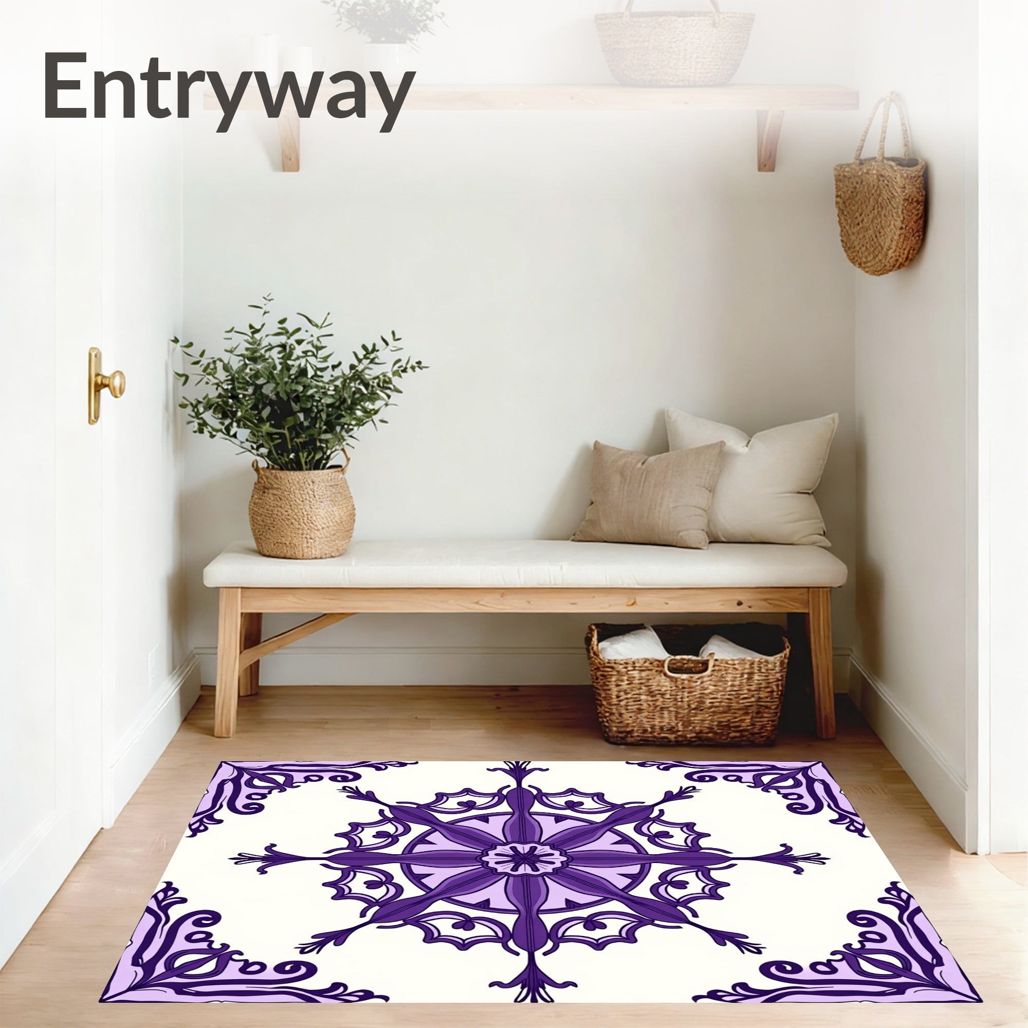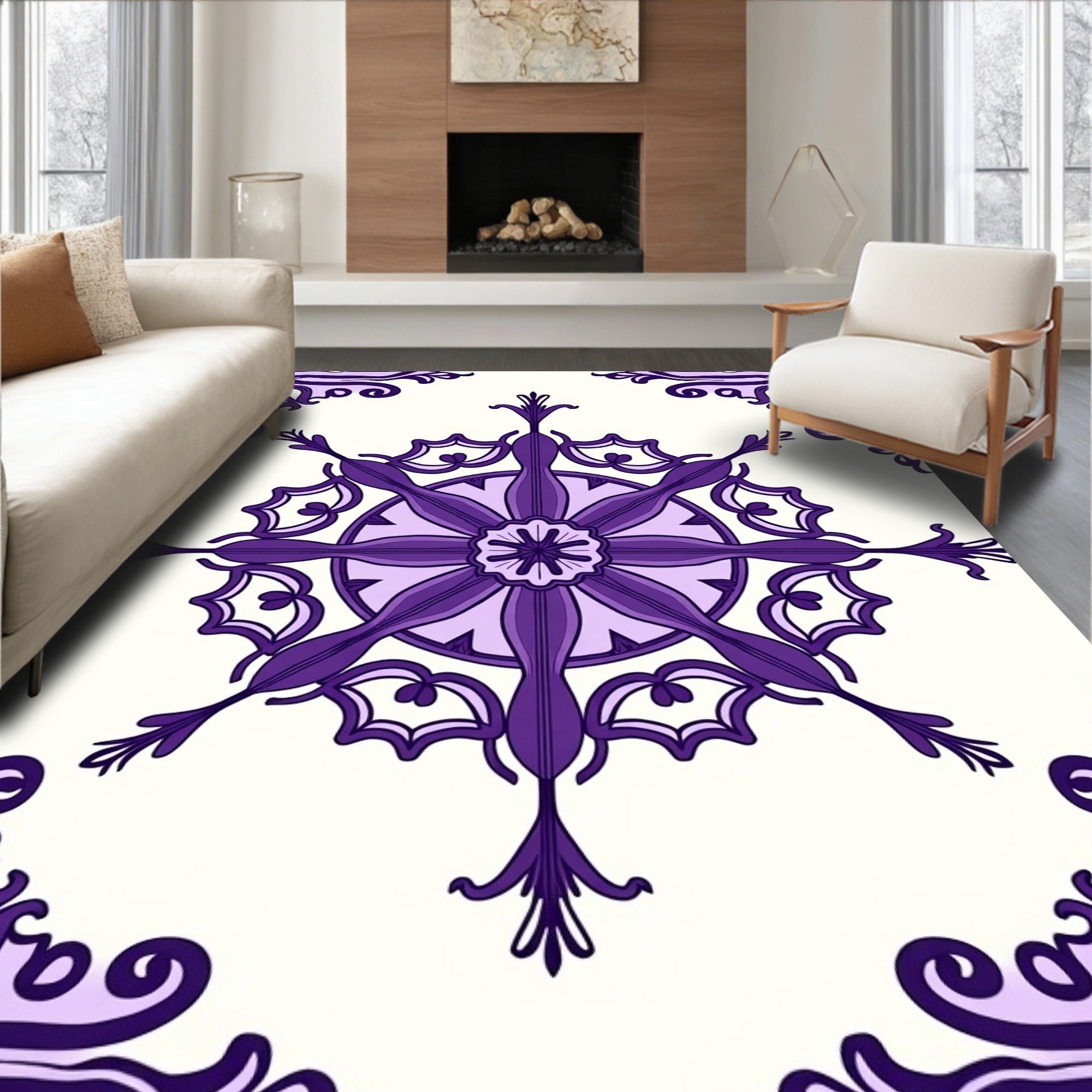 Flatwoven High Traffic Area Rug, Whimsical Floral Medallion with Vintage Lattice Motifs, Non Slip, Stain Resistant, Washable Area Rugs for Living Room, Bedroom (Purple) Overview: