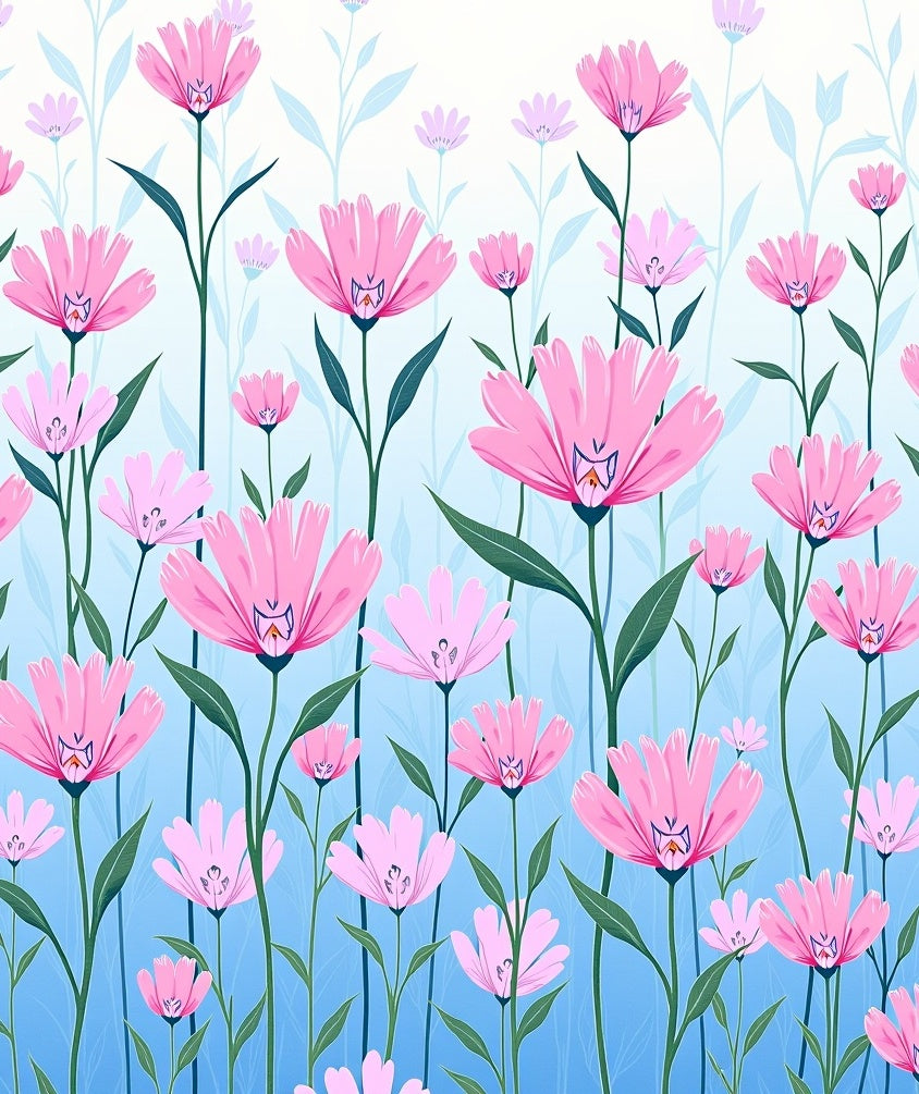 Whimsical Garden Botanical Meadow Illustration Arrangement (Pink)