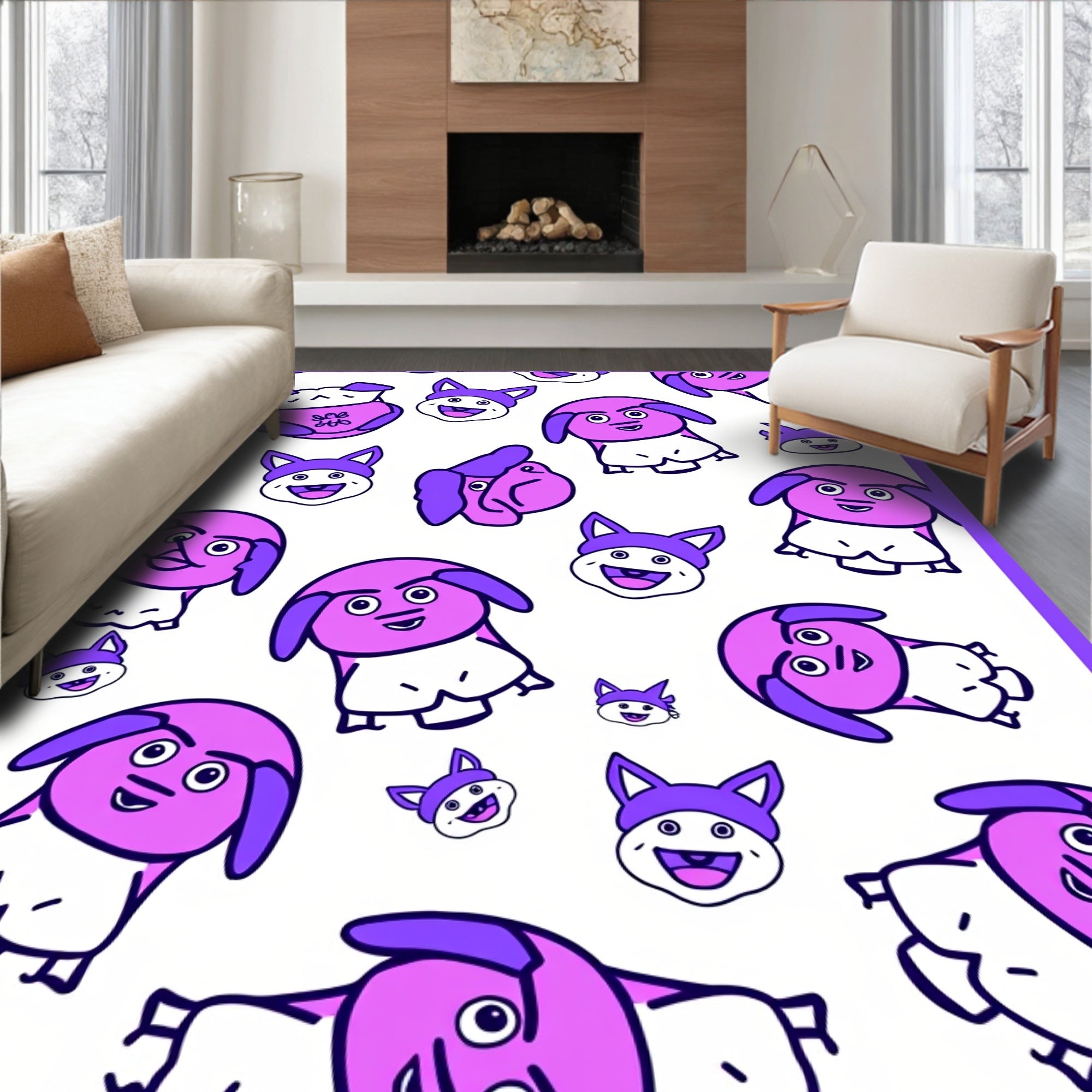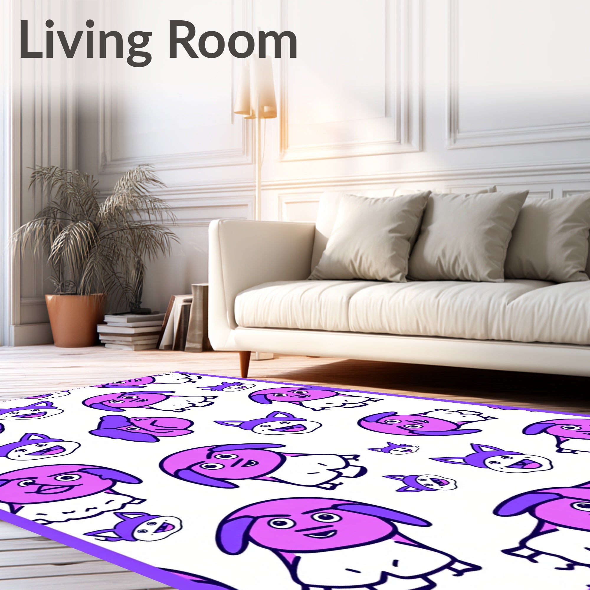 Flatwoven High Traffic Area Rug, Whimsical Pooch Portrait Showcase, Non Slip, Stain Resistant, Washable Area Rugs for Living Room, Bedroom (Pink) Overview: