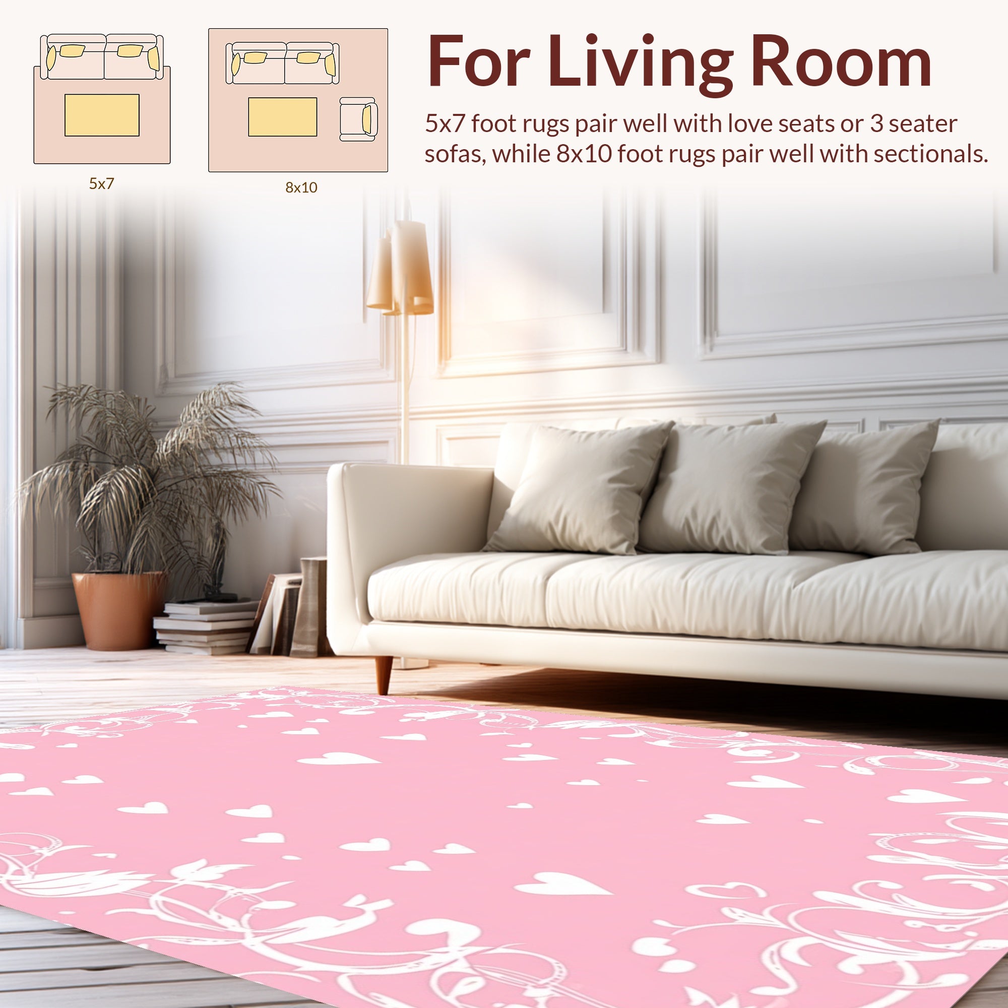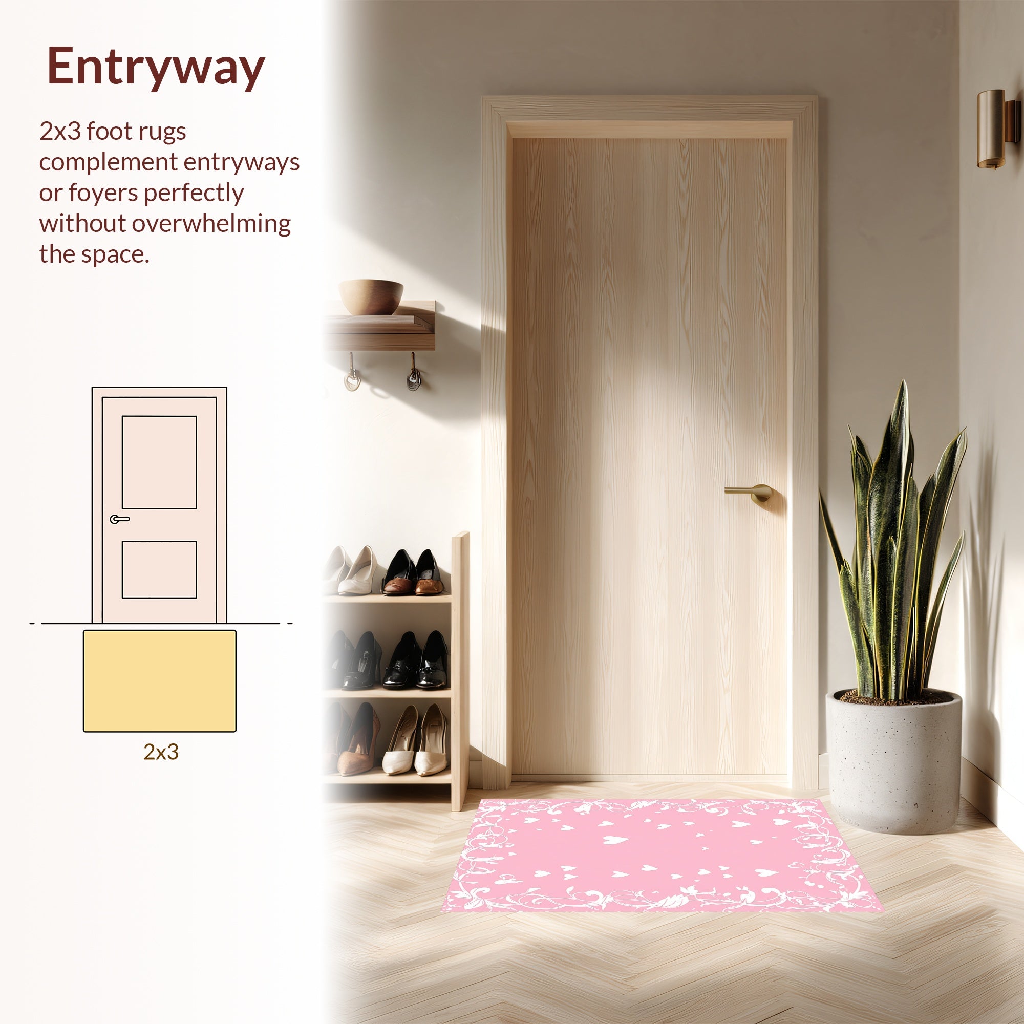 Flatwoven High Traffic Area Rug, Whimsical Script Typography With Playful Compliments And Curly Lines, Non Slip, Stain Resistant, Washable Area Rugs for Living Room, Bedroom (Pink) Overview: