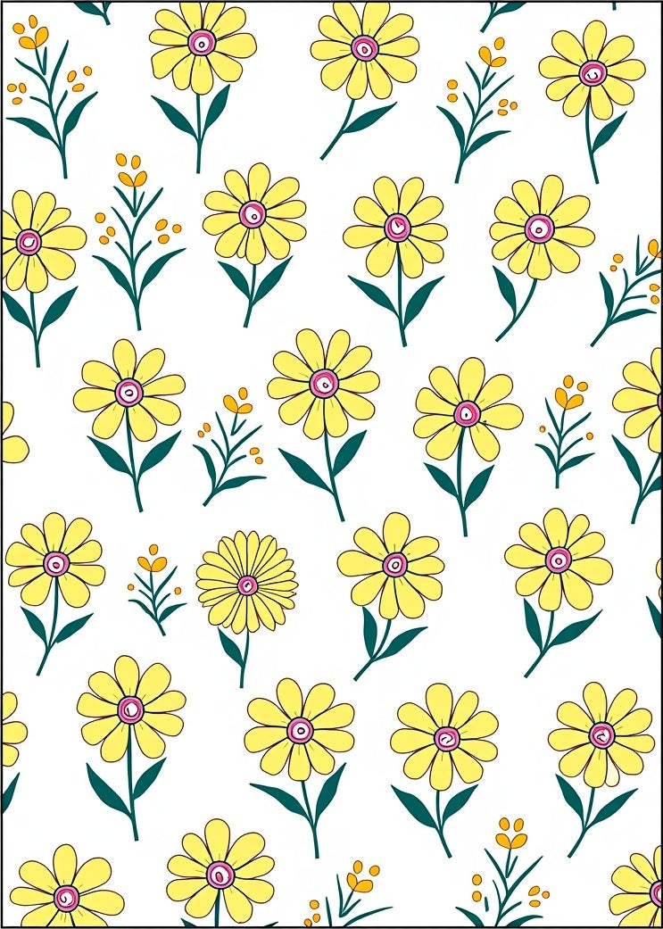 Wildflower Medallion with Petal Motifs and Vintage Scrollwork (Yellow)