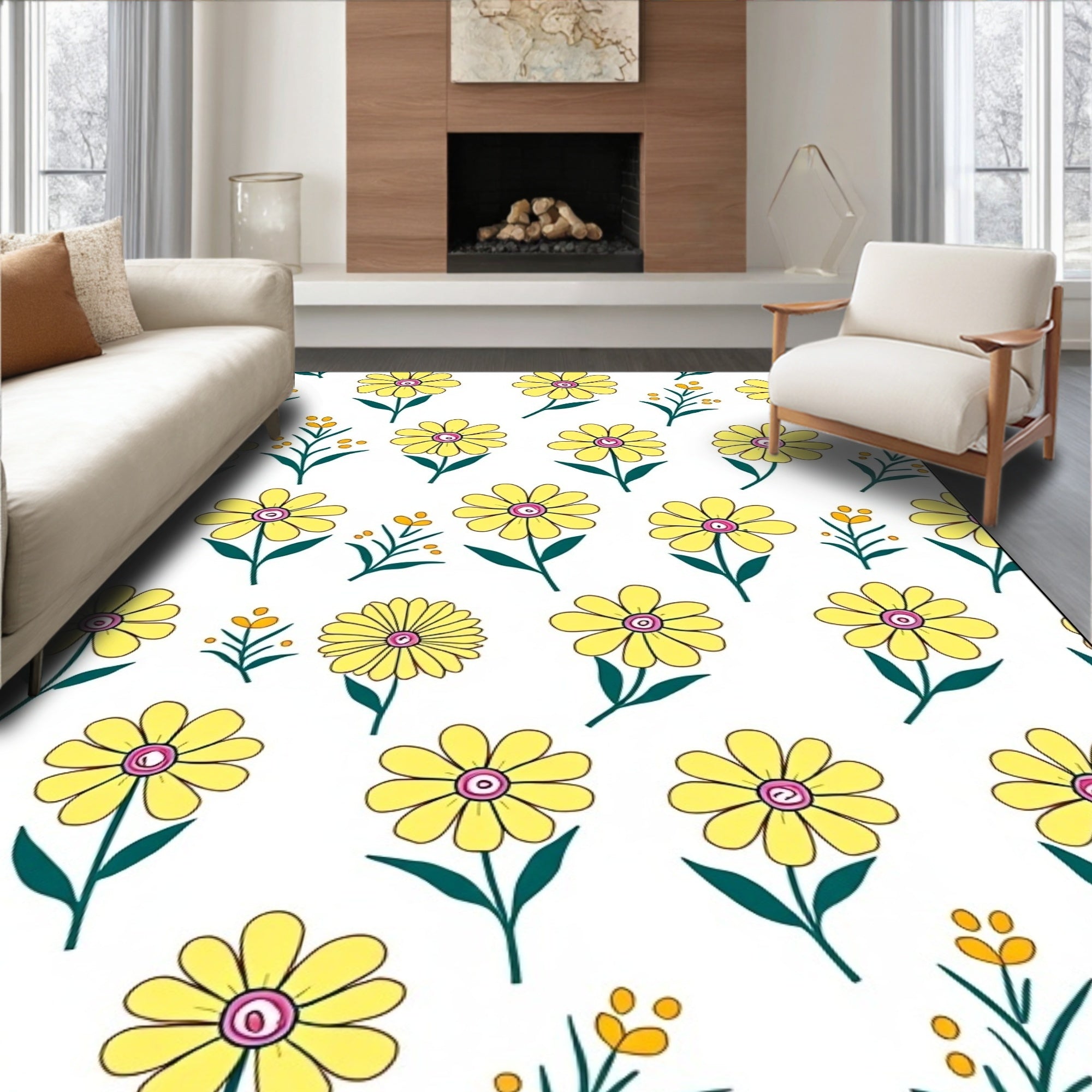 Flatwoven High Traffic Area Rug, Wildflower Medallion with Petal Motifs and Vintage Scrollwork, Non Slip, Stain Resistant, Washable Area Rugs for Living Room, Bedroom (Yellow) Overview: