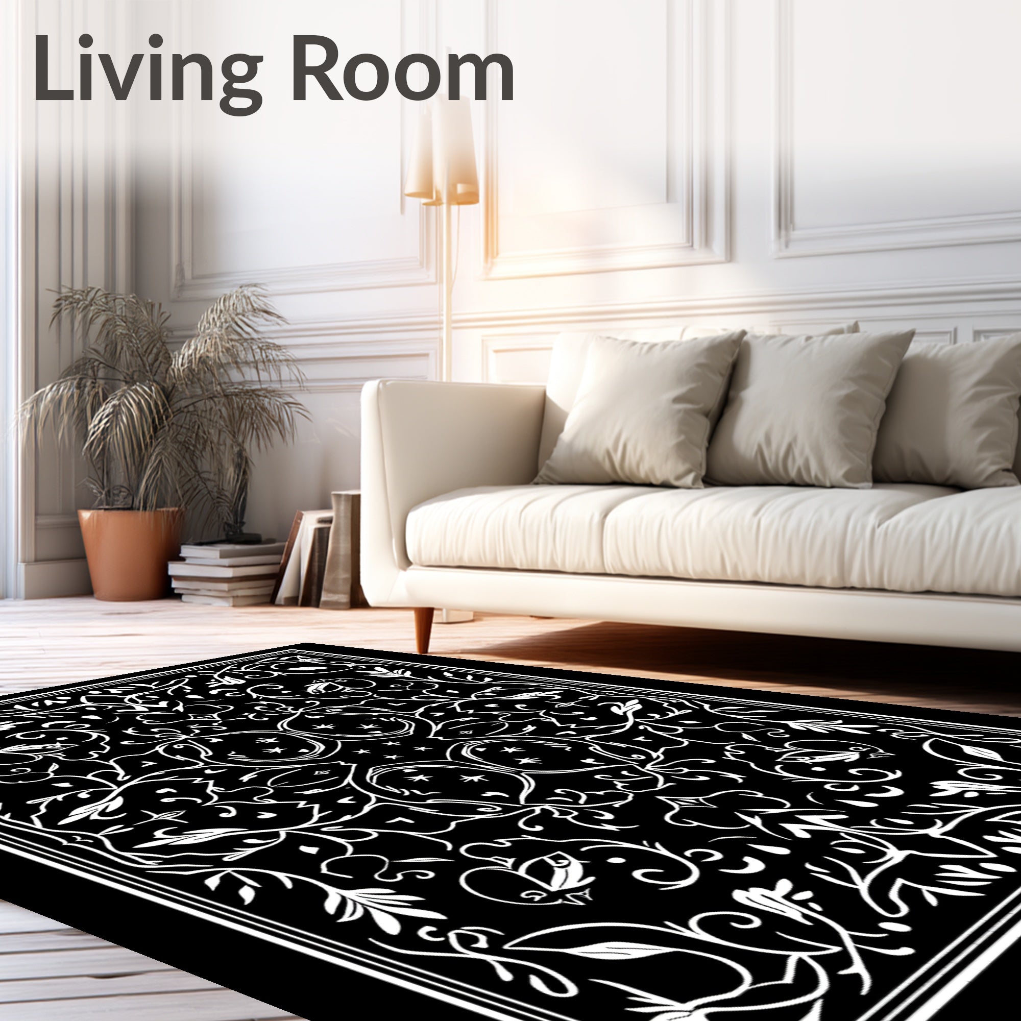 Flatwoven High Traffic Area Rug, Witchy Botanical Featuring Intricate Bug and Bloom, Non Slip, Stain Resistant, Washable Area Rugs for Living Room, Bedroom (Black) Overview: