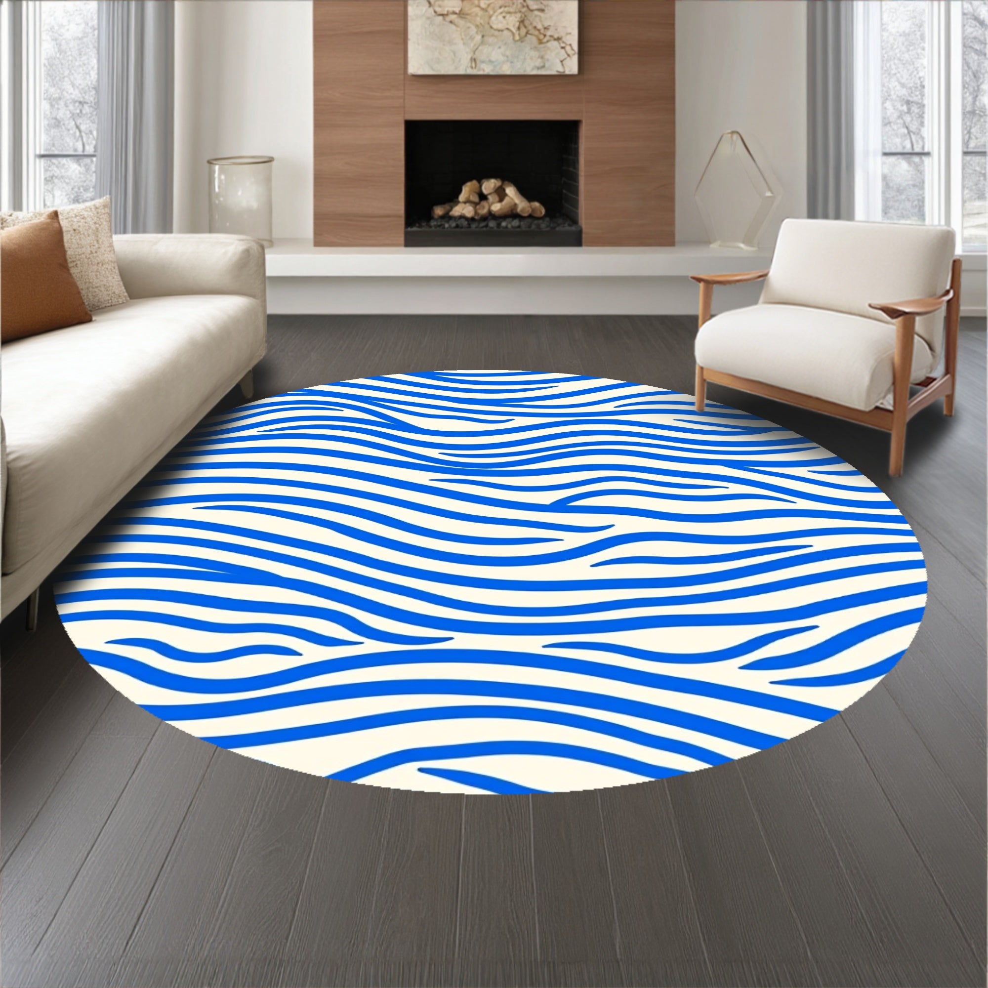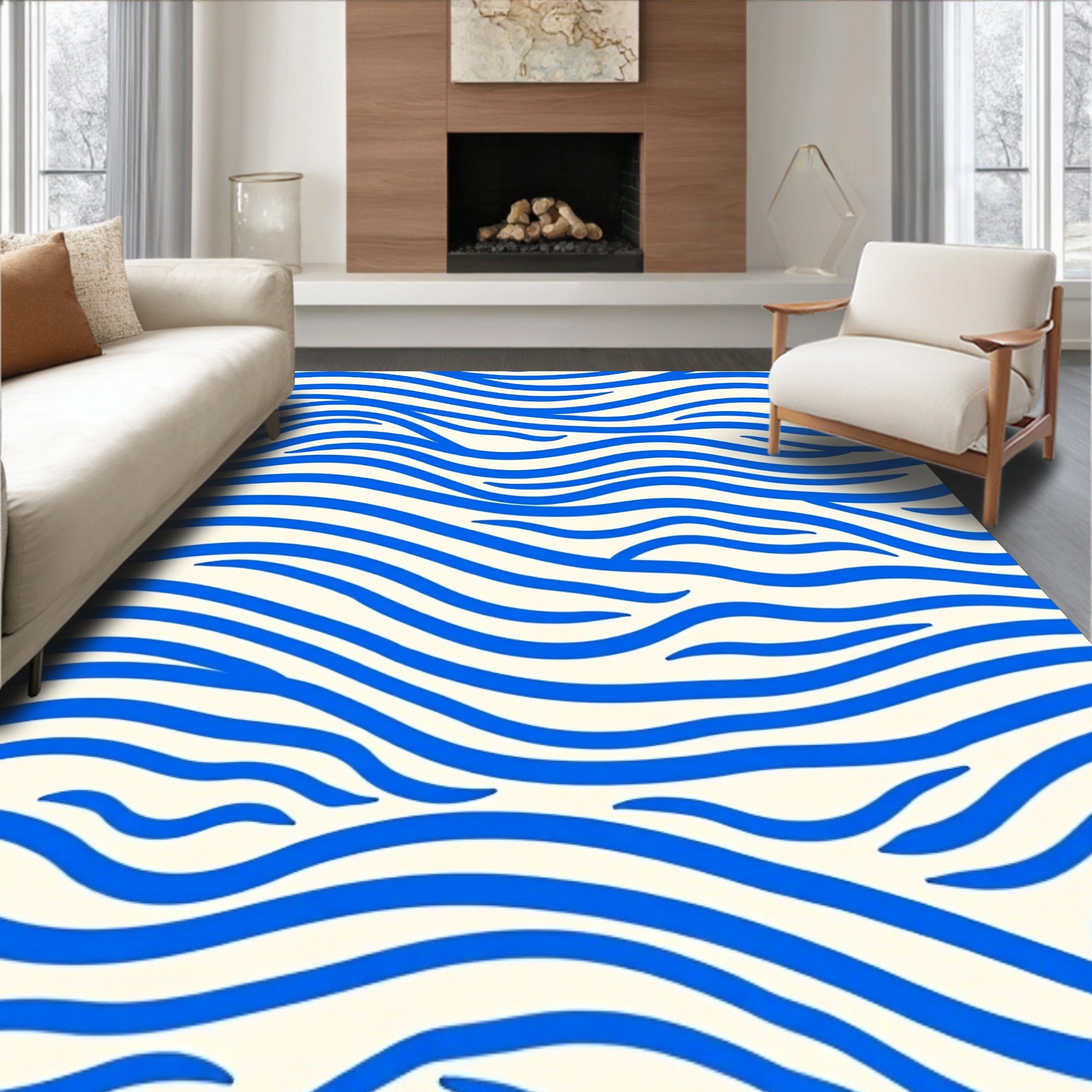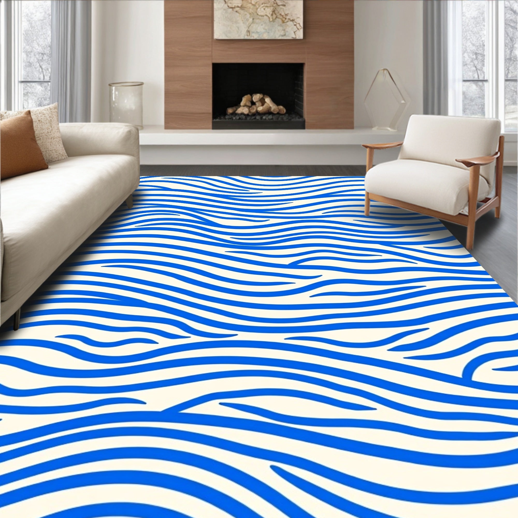 Flatwoven High Traffic Area Rug, Zen Wave Ripple with Flowing Curved Lines Abstract Design, Non Slip, Stain Resistant, Washable Area Rugs for Living Room, Bedroom (Blue) Overview: