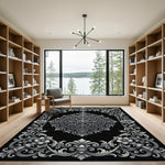 Elevate your living room with this striking area rug, which perfectly balances classic artistry with modern convenience. Featuring a bold, ornate floral scrollwork motif in deep charcoal and ethereal silver, this piece serves as a sophisticated focal point for any space. More than just a visual statement, this rug is exceptionally durable, designed to withstand high-traffic areas while offering a soft, low pile that fits seamlessly under furniture. We know life happens, which is why our design is fully machine washable for effortless maintenance. Rest easy knowing your home is safe, as every fiber is certified OEKO-TEX Standard 100, ensuring a toxin-free environment for your family and guests.