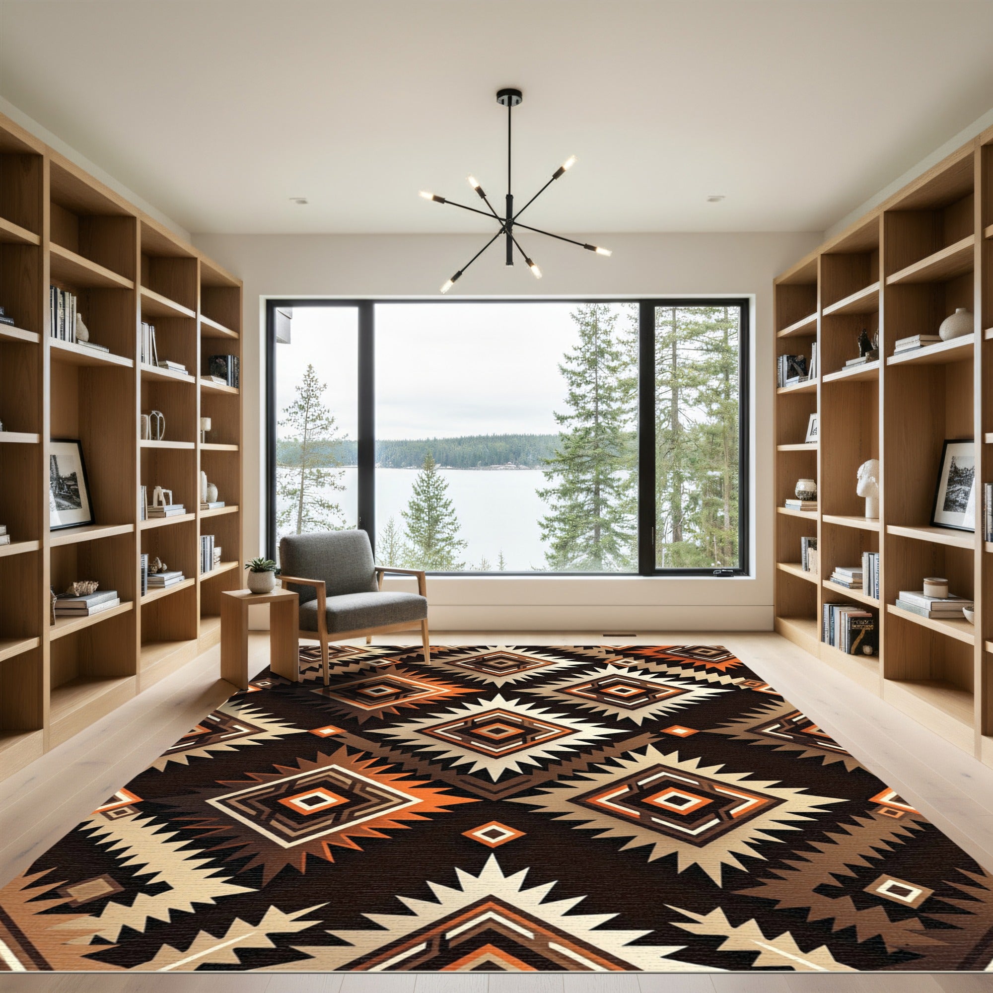Drawing inspiration from the ancient geometry of Southwestern textile heritage, this design bridges the gap between ancestral tradition and modern minimalism. It captures the spirit of the high desert—the sharp, repeating diamonds acting as sun-drenched mesas against a dark, canyon-shadow void. This is not merely decor; it is an evolution of midcentury geometric optimism, refined for the contemporary home. When you unroll this piece, the room undergoes a subtle transformation; the floor becomes a rhythmic, anchoring force that grounds your space in warmth and movement. Tailored for the seeker of authentic environments, this aesthetic speaks to those who value the intersection of cultural history and modern ease. Step onto this scene, and the room softens, inviting quiet reflection and a sense of enduring stability. Don't just fill your space—anchor it. Walk upon this weave and live in reverence to the patterns that connect us all.