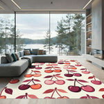 Brighten any space with this charming cherry-themed area rug. Featuring a playful, repeating pattern of sweet cherries in a vibrant palette of reds, pinks, and oranges against a soft cream background, this rug adds a touch of whimsical delight to your home decor. It's not just about looks; this rug is built to last. Its durable construction makes it ideal for high-traffic areas like living rooms or playrooms, and the machine washable design ensures effortless cleaning. Certified OEKO-TEX Standard 100, it guarantees a safe and healthy environment for your family. Available in various sizes, it scales from cozy corners to open living areas, offering both style and practicality.