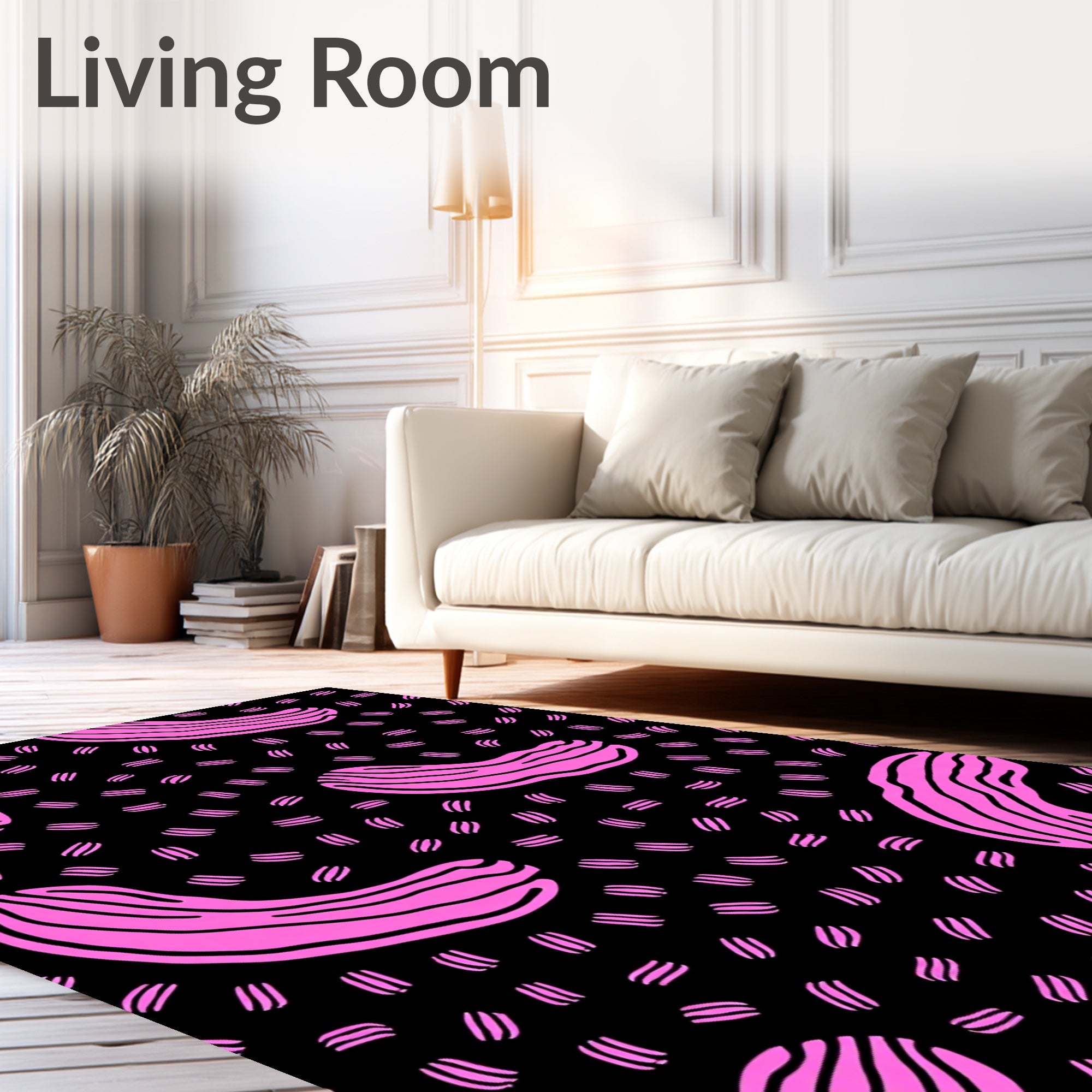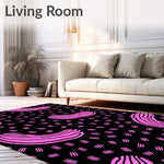 Flatwoven High Traffic Area Rug, Abstract Animal Inspired Design with Pink Hues, Non Slip, Stain Resistant, Washable Area Rugs for Living Room, Bedroom (Black) Overview:
