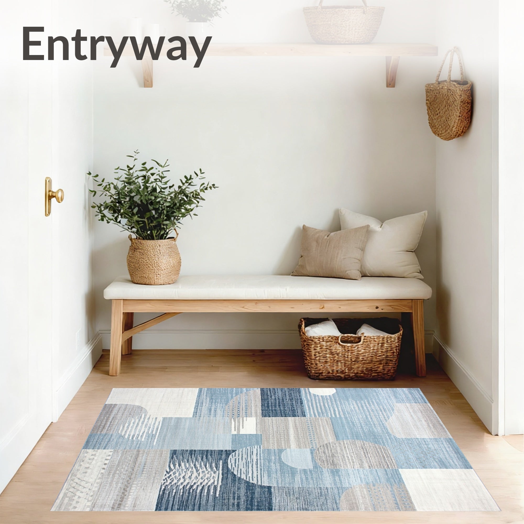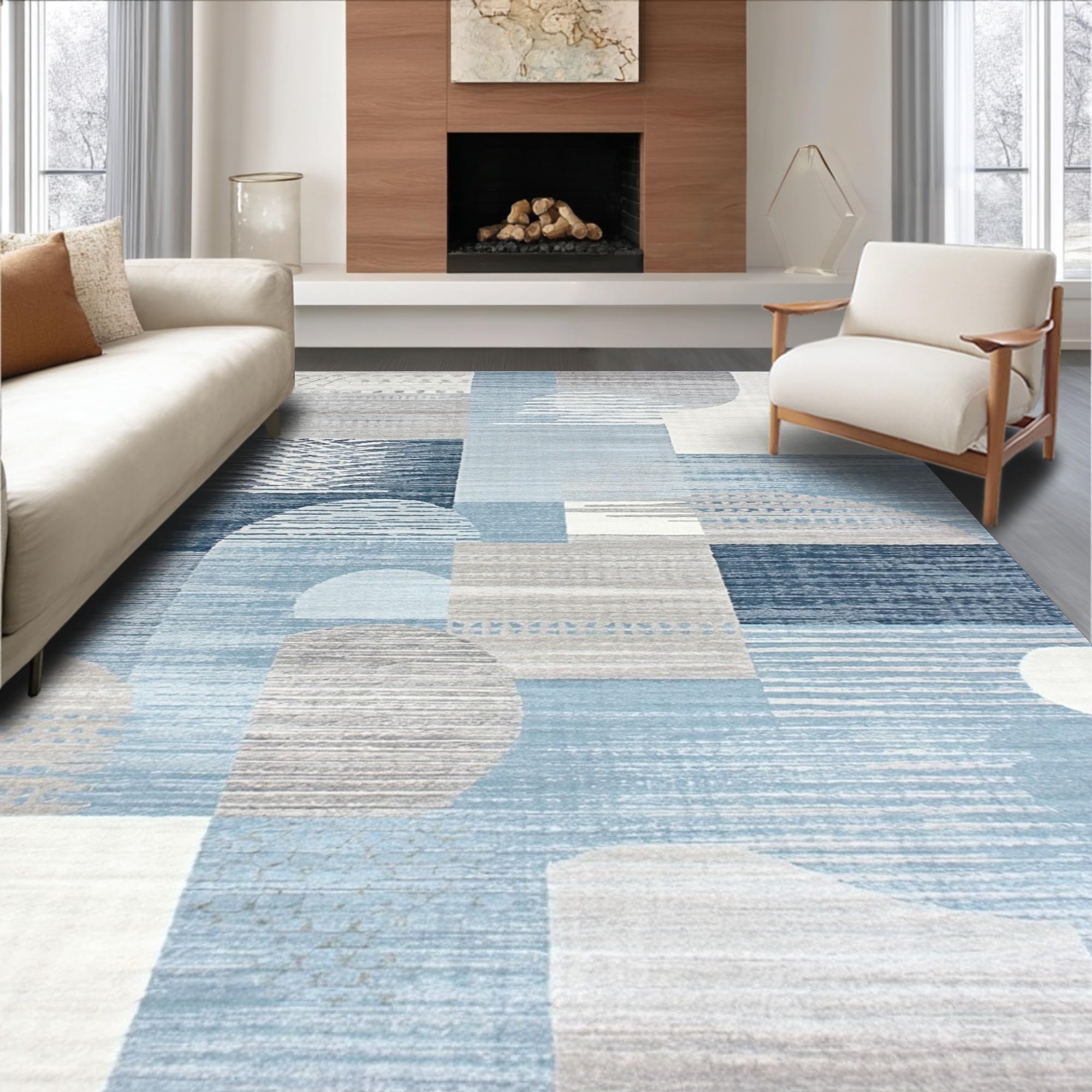 Ultra Soft Area Rug, Non Slip, Stain Resistant, Washable Area Rugs for Living Room, Bedroom, Abstract Animal Inspired Quick Dry Microfiber(Blue) Overview: