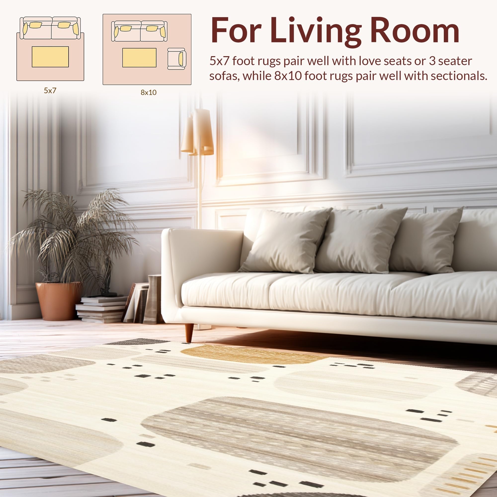 Ultra Soft Area Rug, Non Slip, Stain Resistant, Washable Area Rugs for Living Room, Bedroom, Abstract Antelope Print Beige Area Modern Animal Design(Beige) Overview:
