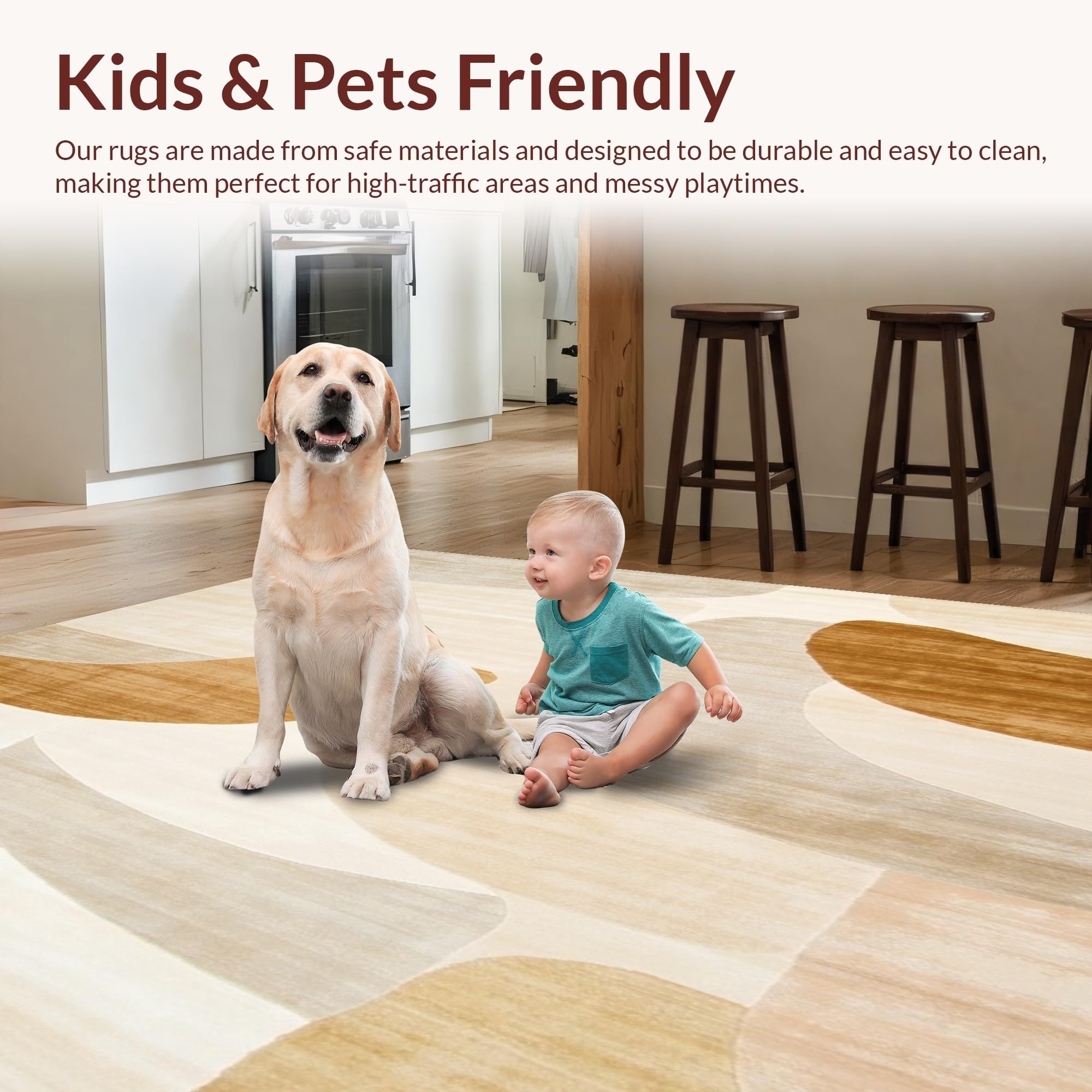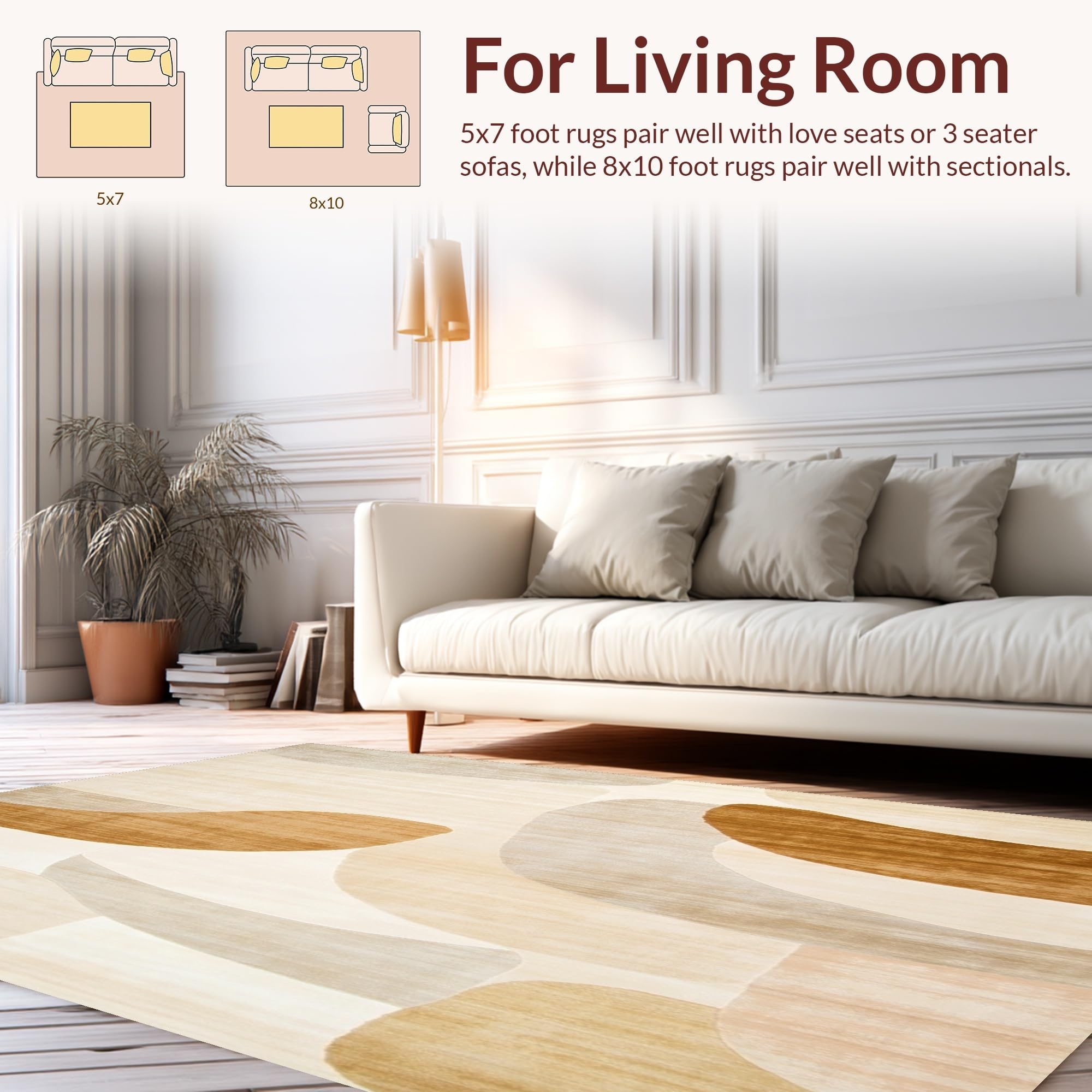 Ultra Soft Area Rug, Non Slip, Stain Resistant, Washable Area Rugs for Living Room, Bedroom, Abstract Arch Area Adhesive Non Skid Modern Pair(Beige) Overview: