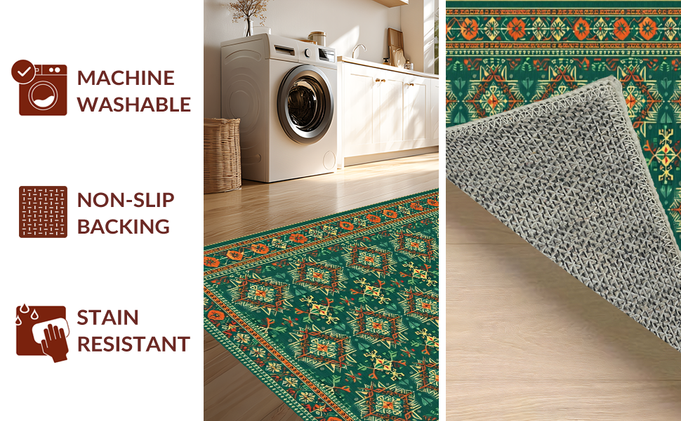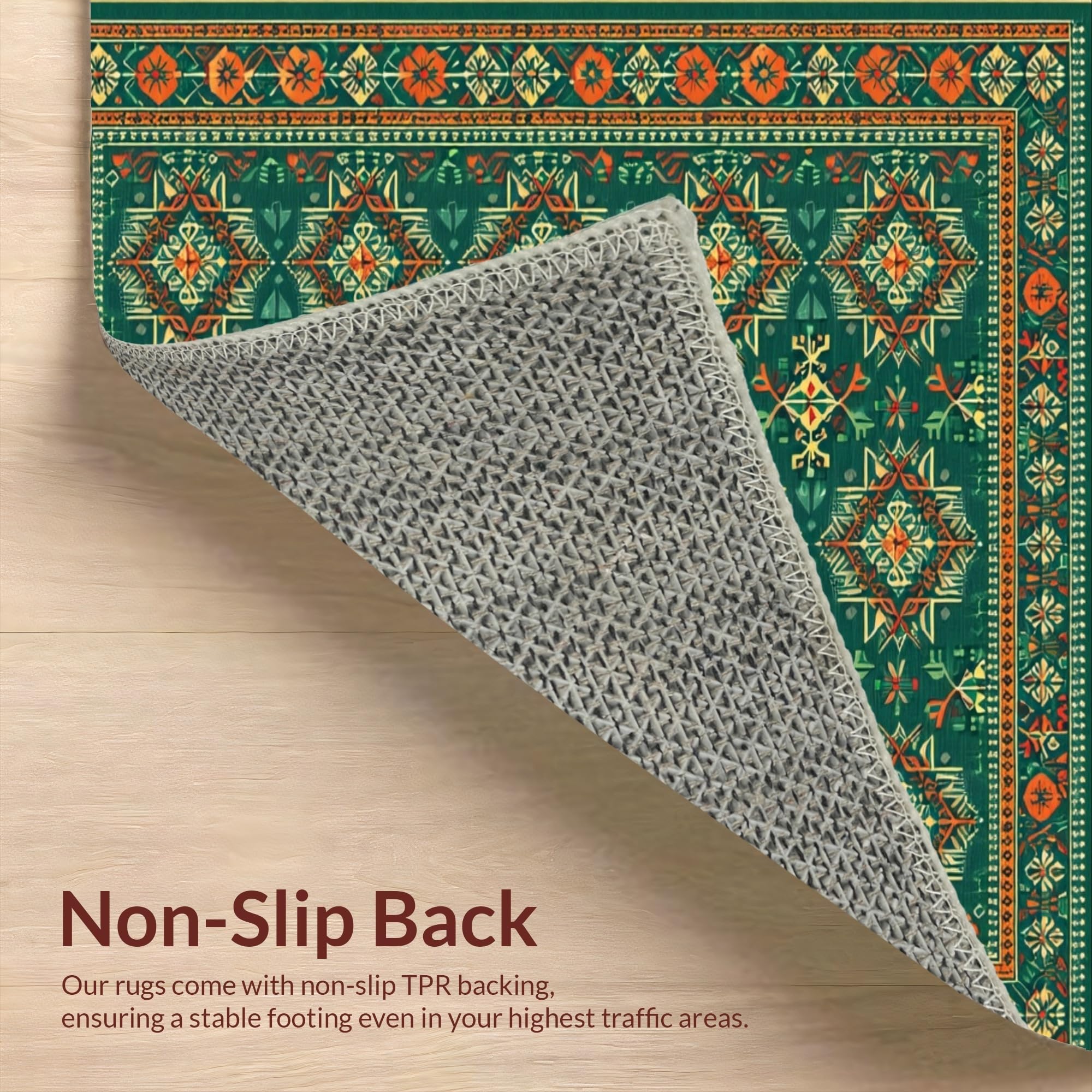 Ultra Soft Area Rug, Non Slip, Stain Resistant, Washable Area Rugs for Living Room, Bedroom, Abstract Armenian Motif Aesthetic(Green) Overview: