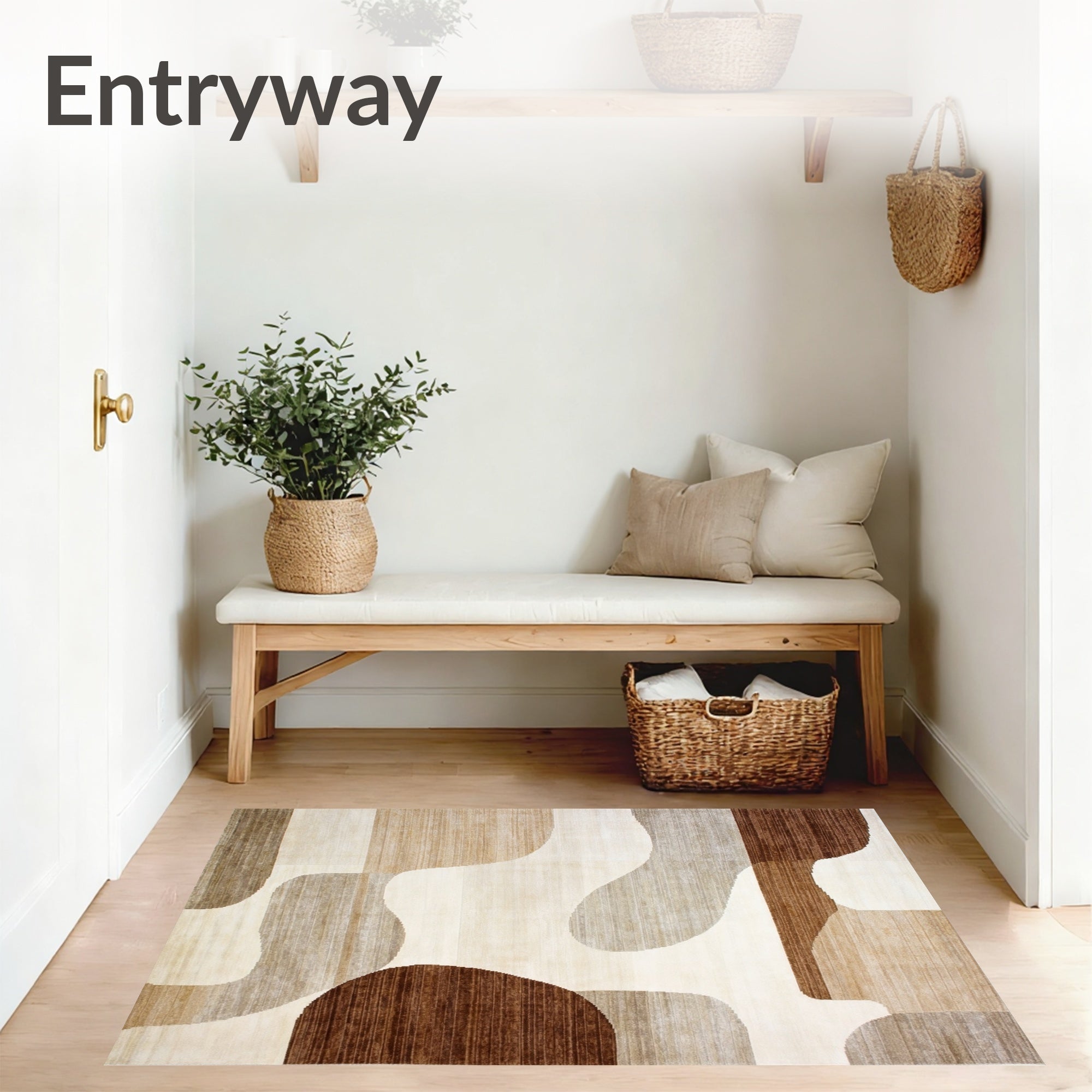 Abstract Art Area Rug Modern Stain Resistant Carpet for Contemporary Spaces(Beige)