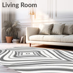 Flatwoven High Traffic Area Rug, Abstract Art Lines with Edged Chevron Motifs, Non Slip, Stain Resistant, Washable Area Rugs for Living Room, Bedroom (White) Overview: