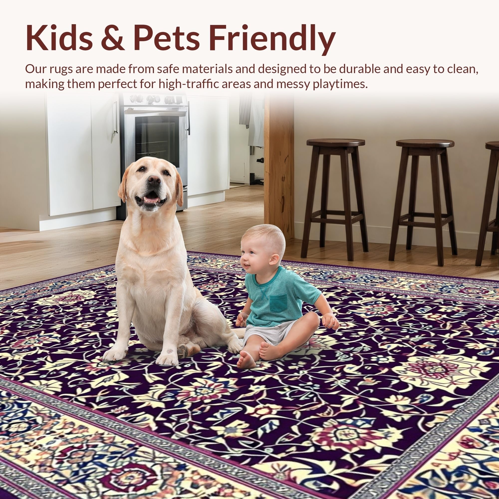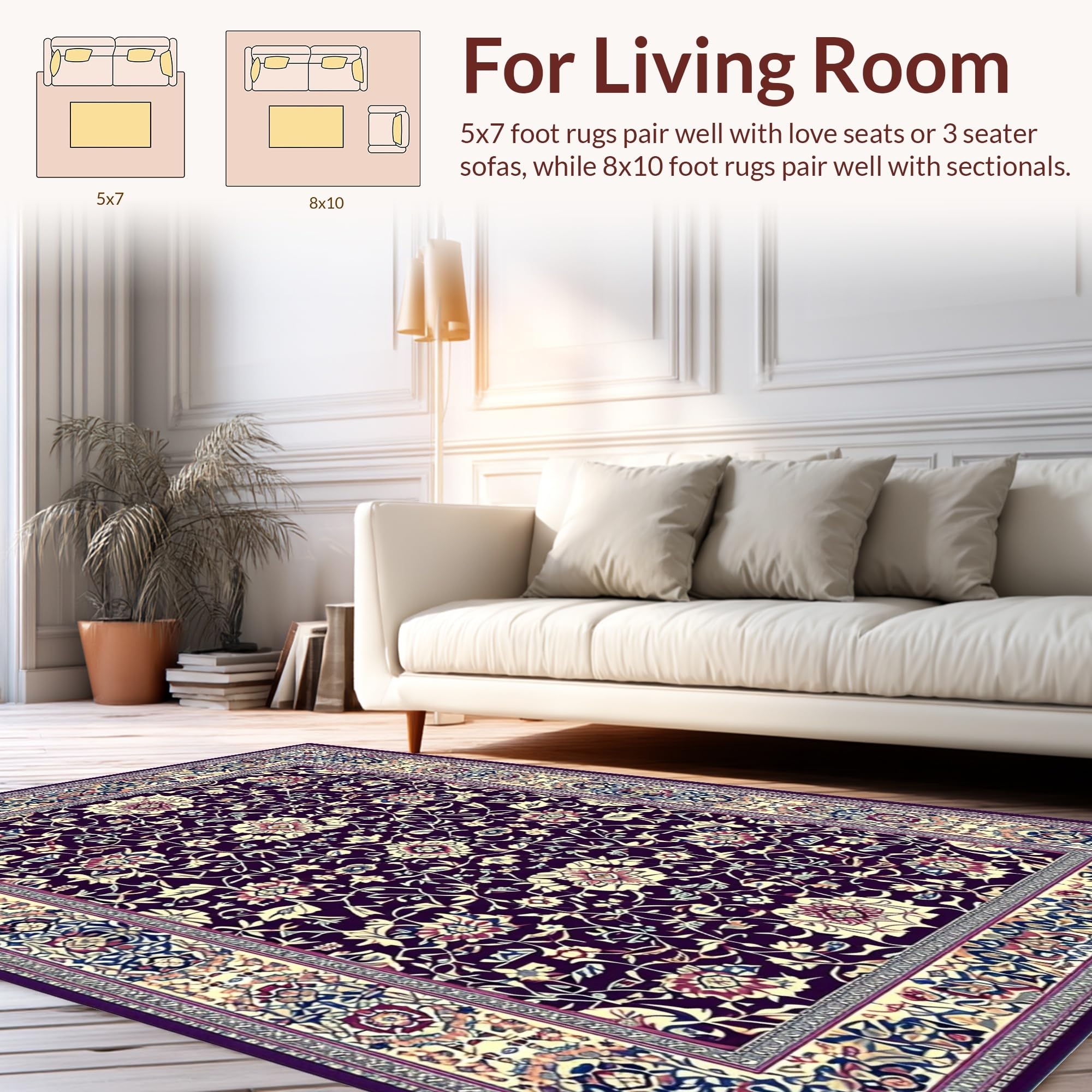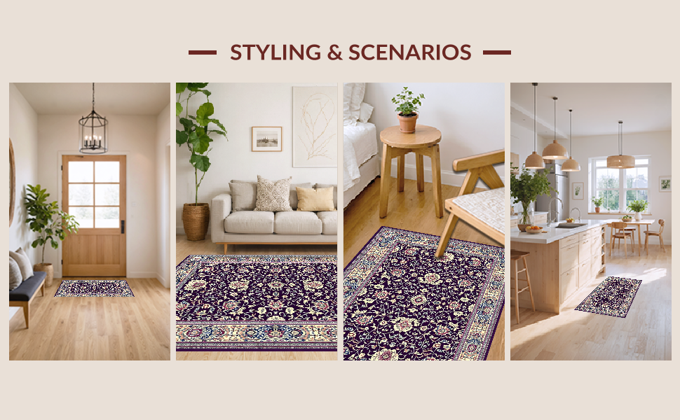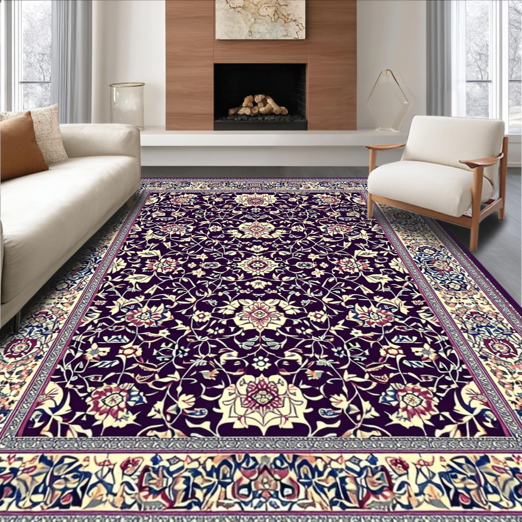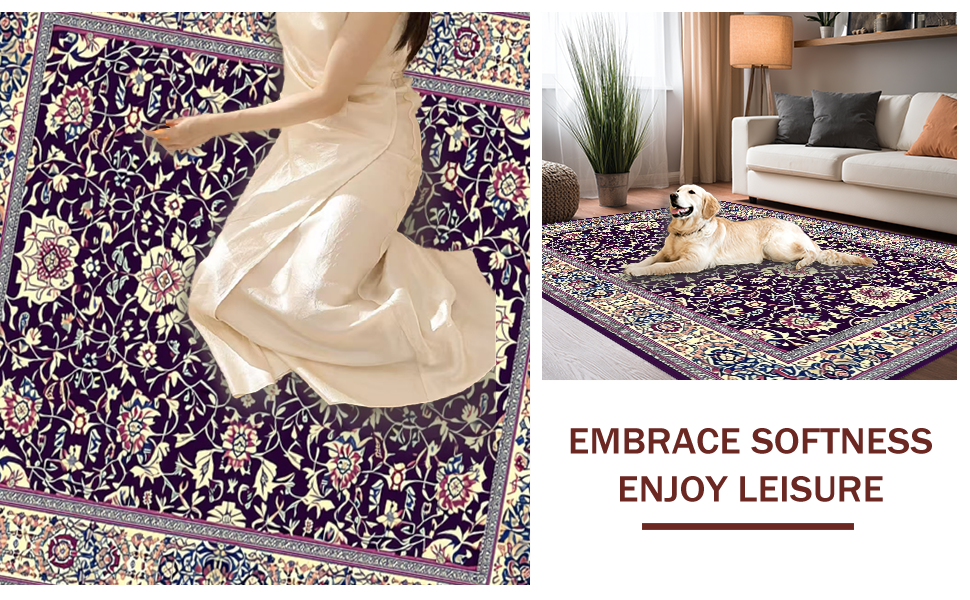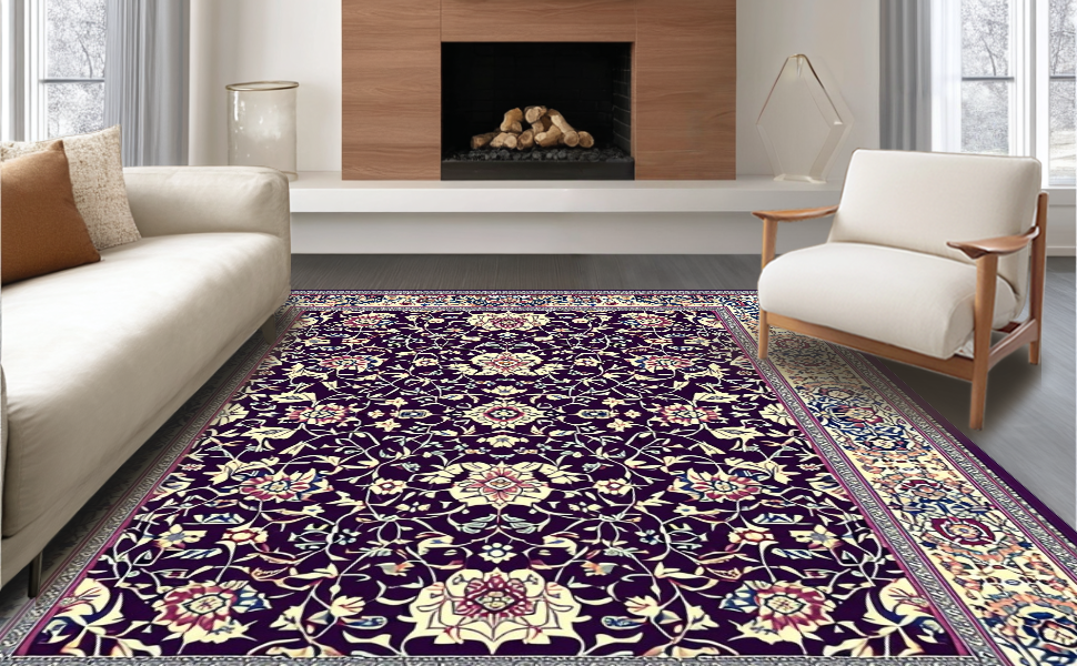 Ultra Soft Area Rug, Non Slip, Stain Resistant, Washable Area Rugs for Living Room, Bedroom, Abstract Artful Purple Blossom Style(Purple) Overview: