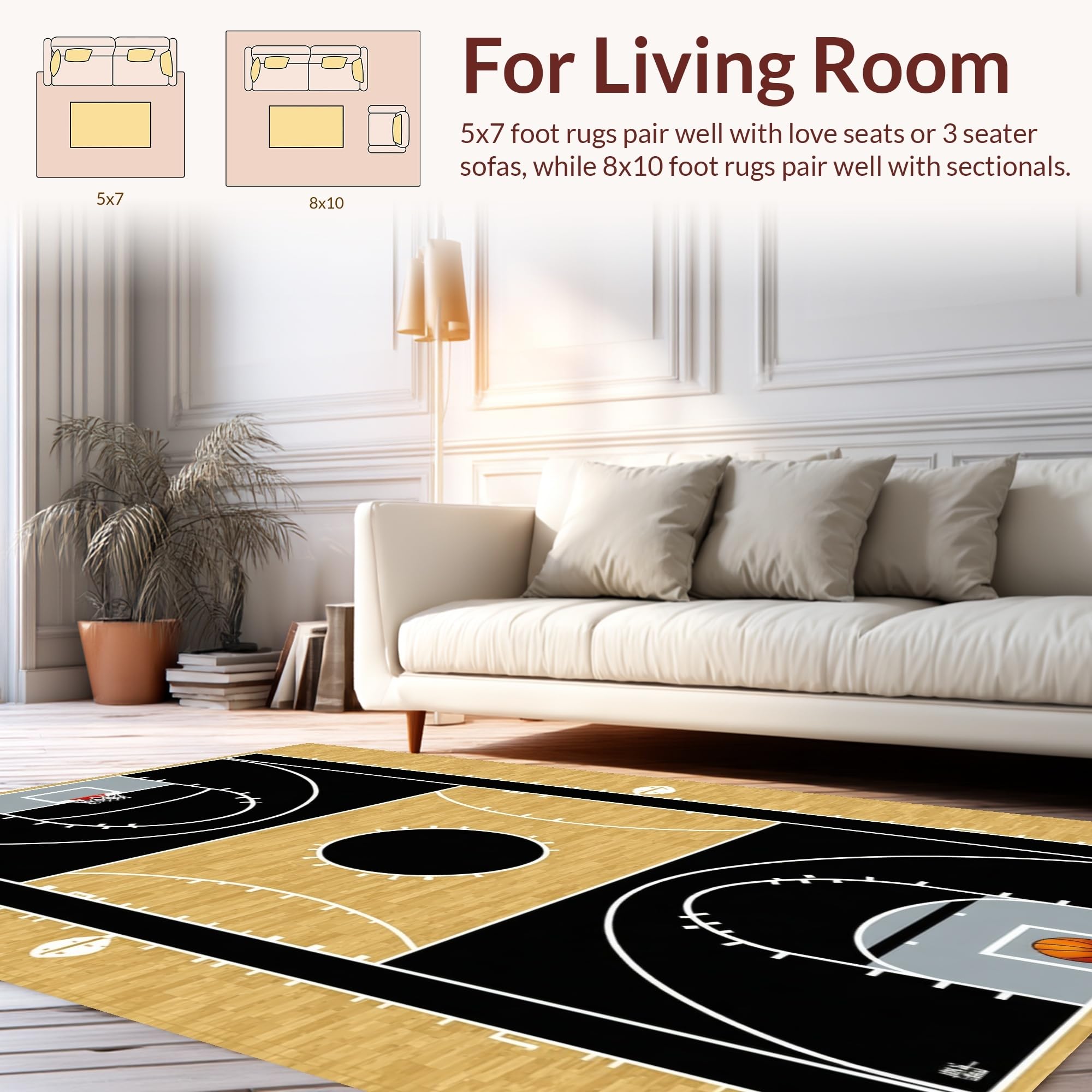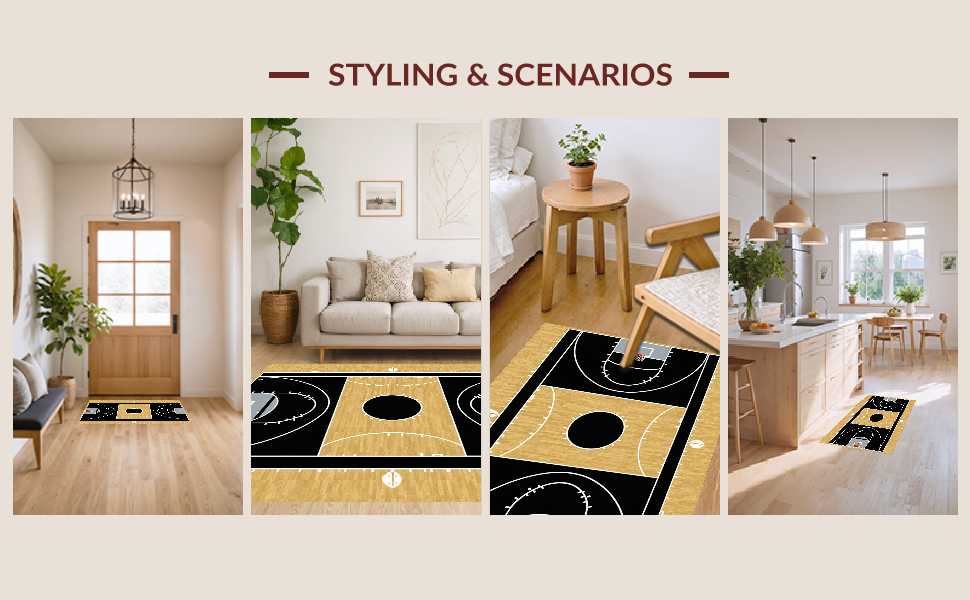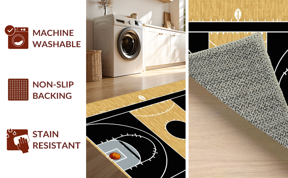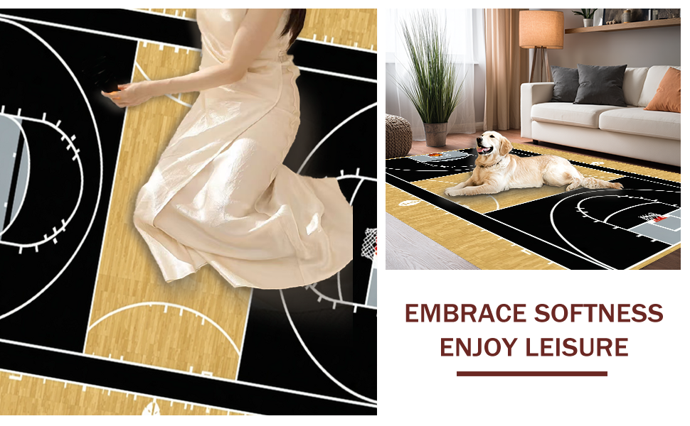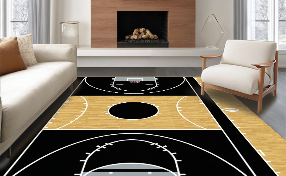 Ultra Soft Area Rug, Non Slip, Stain Resistant, Washable Area Rugs for Living Room, Bedroom, Abstract Athletic Field Motif(Black) Overview: