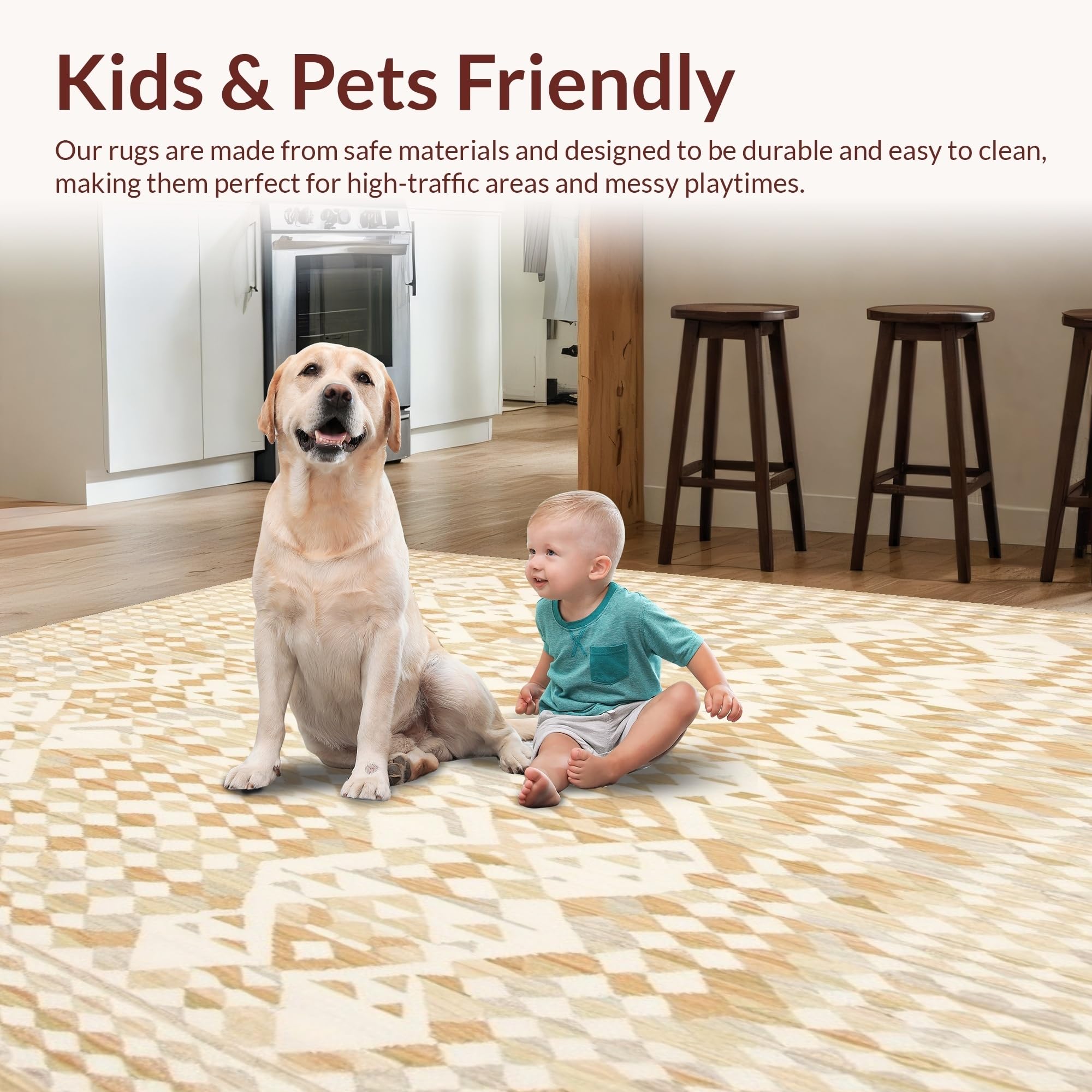 Ultra Soft Area Rug, Non Slip, Stain Resistant, Washable Area Rugs for Living Room, Bedroom, Abstract Beige Harlequin Diamond Area(Beige) Overview: