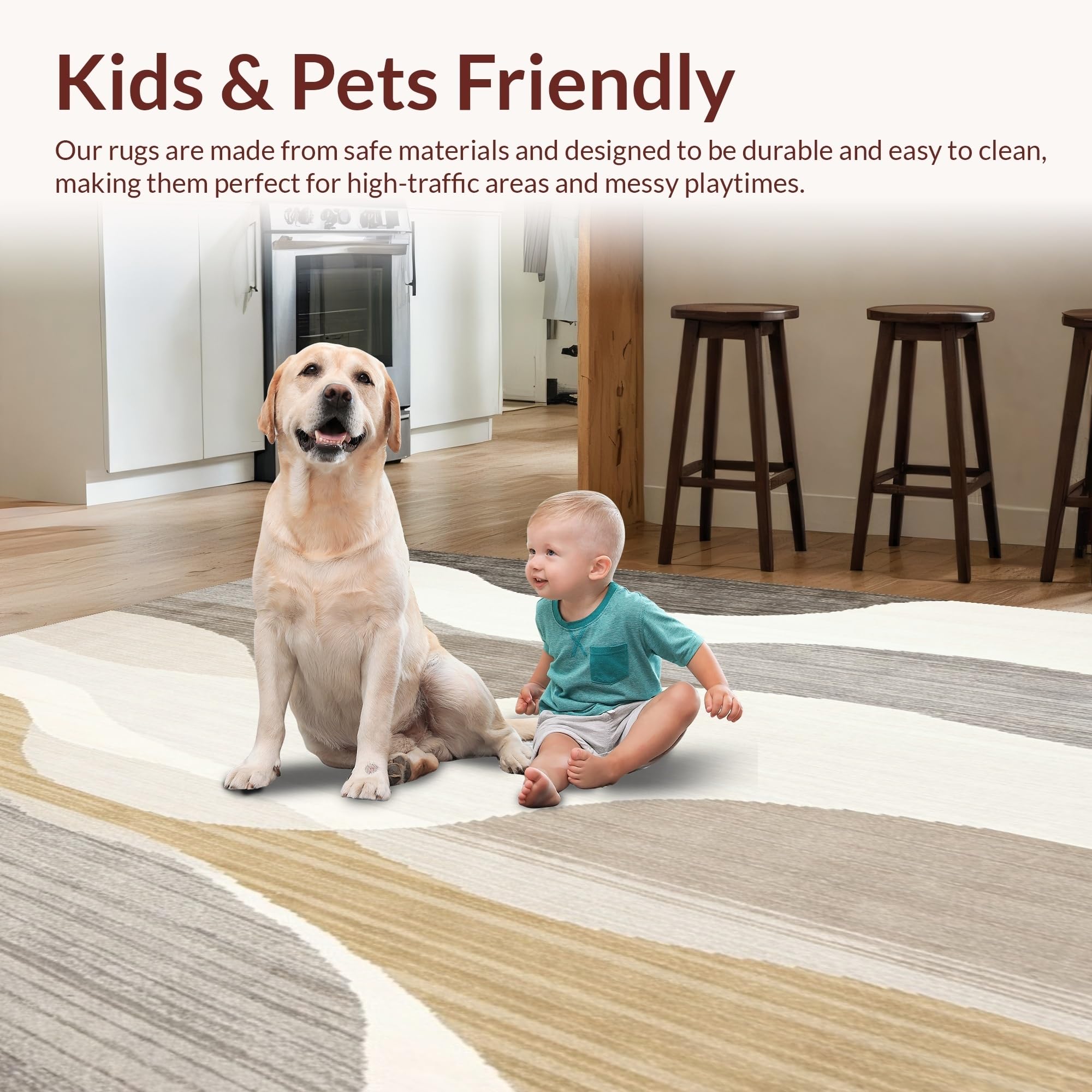 Ultra Soft Area Rug, Non Slip, Stain Resistant, Washable Area Rugs for Living Room, Bedroom, Abstract Beige & Taupe Area for Small Spaces(Beige) Overview: