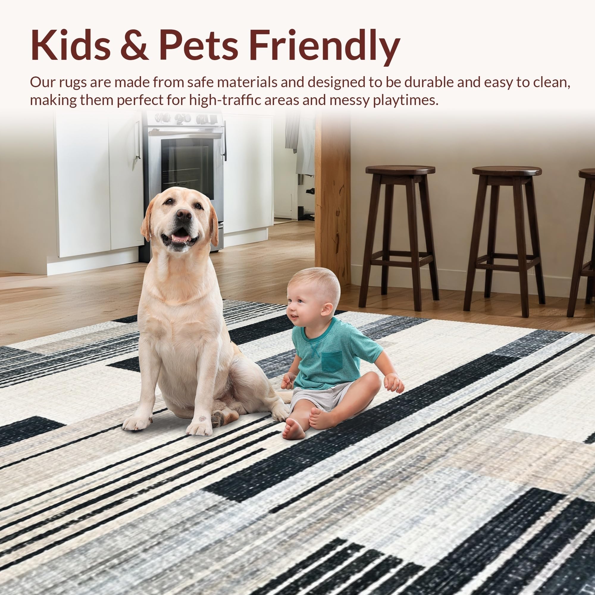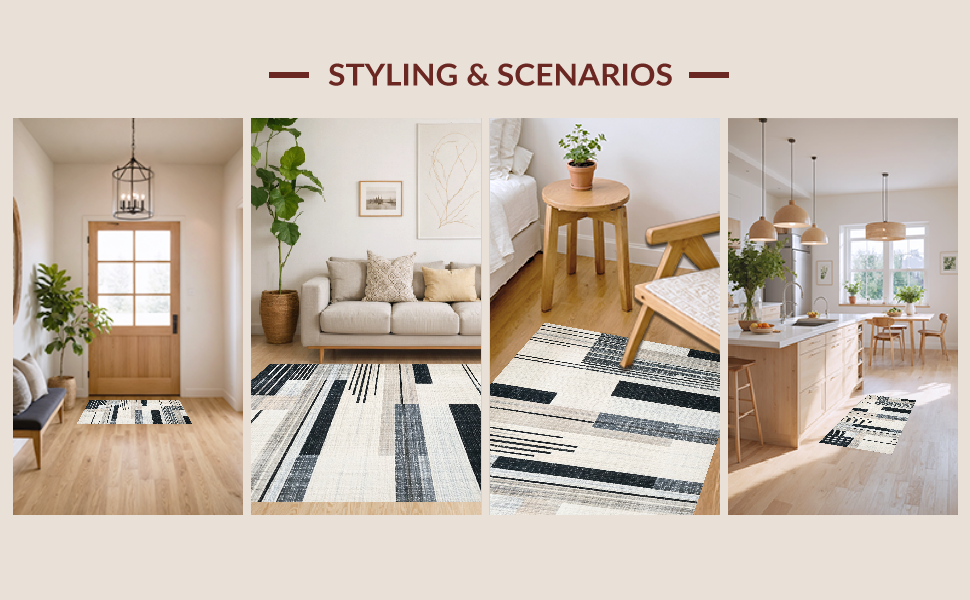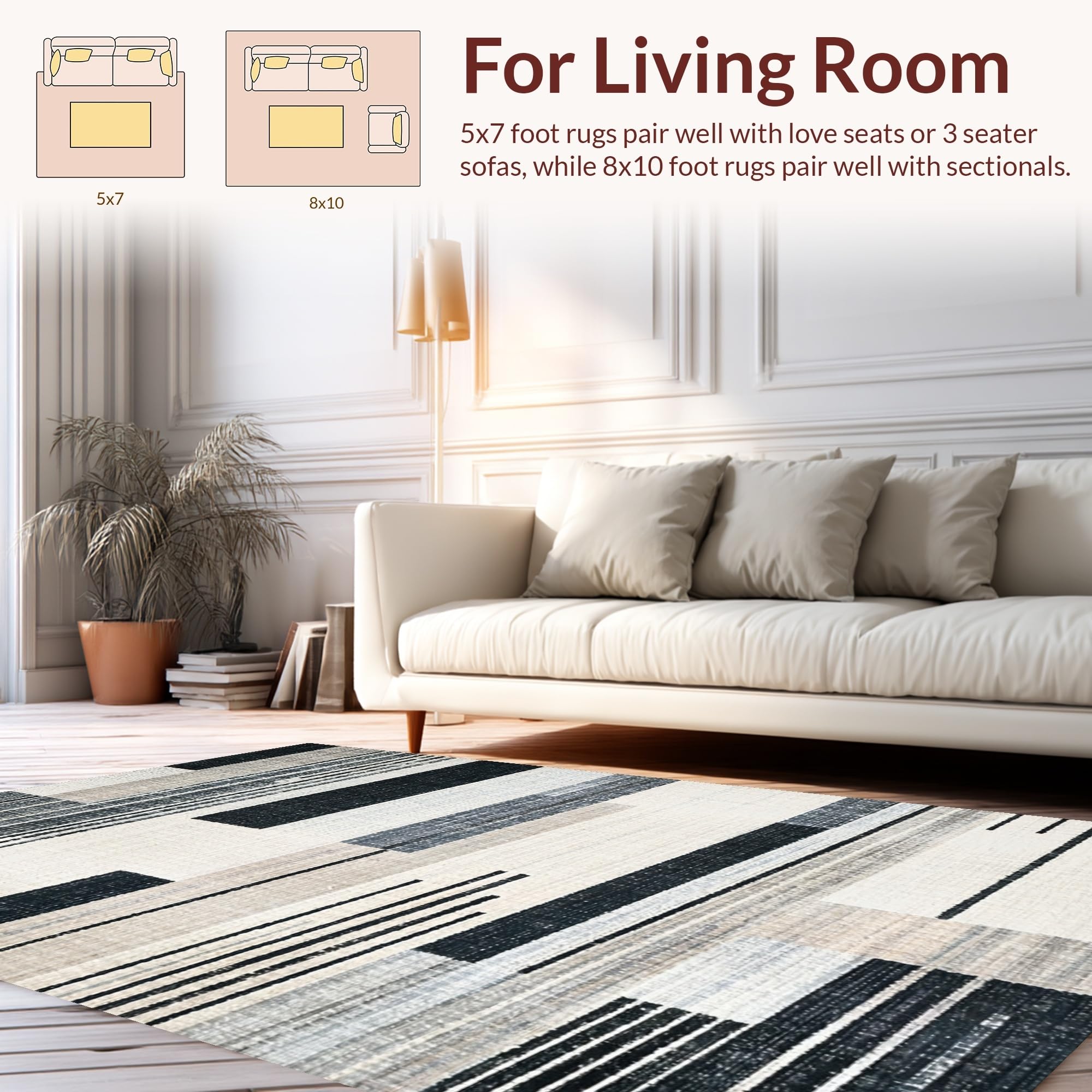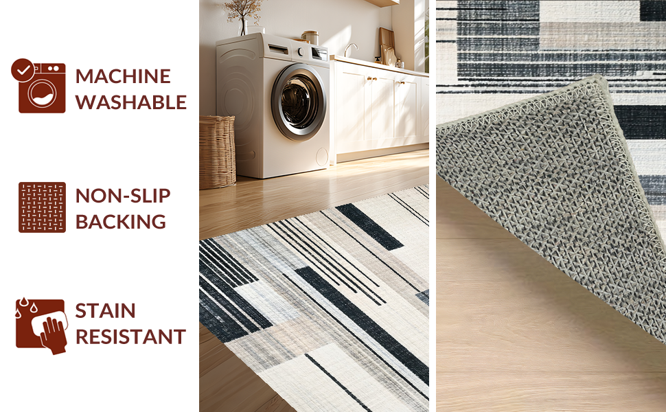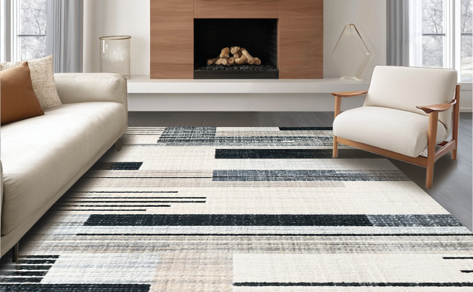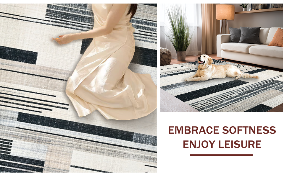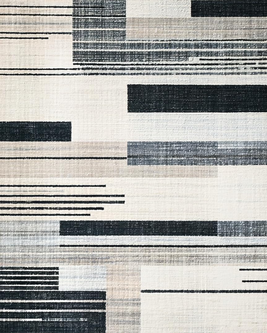 Ultra Soft Area Rug, Non Slip, Stain Resistant, Washable Area Rugs for Living Room, Bedroom, Abstract Black and White Stripe Area Rug(Beige) Overview: