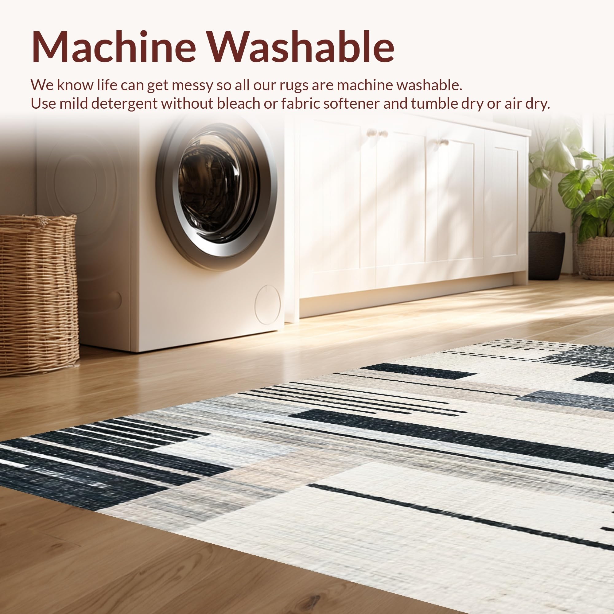 - Machine Washable: Our rugs can be easily thrown in the wash machine.