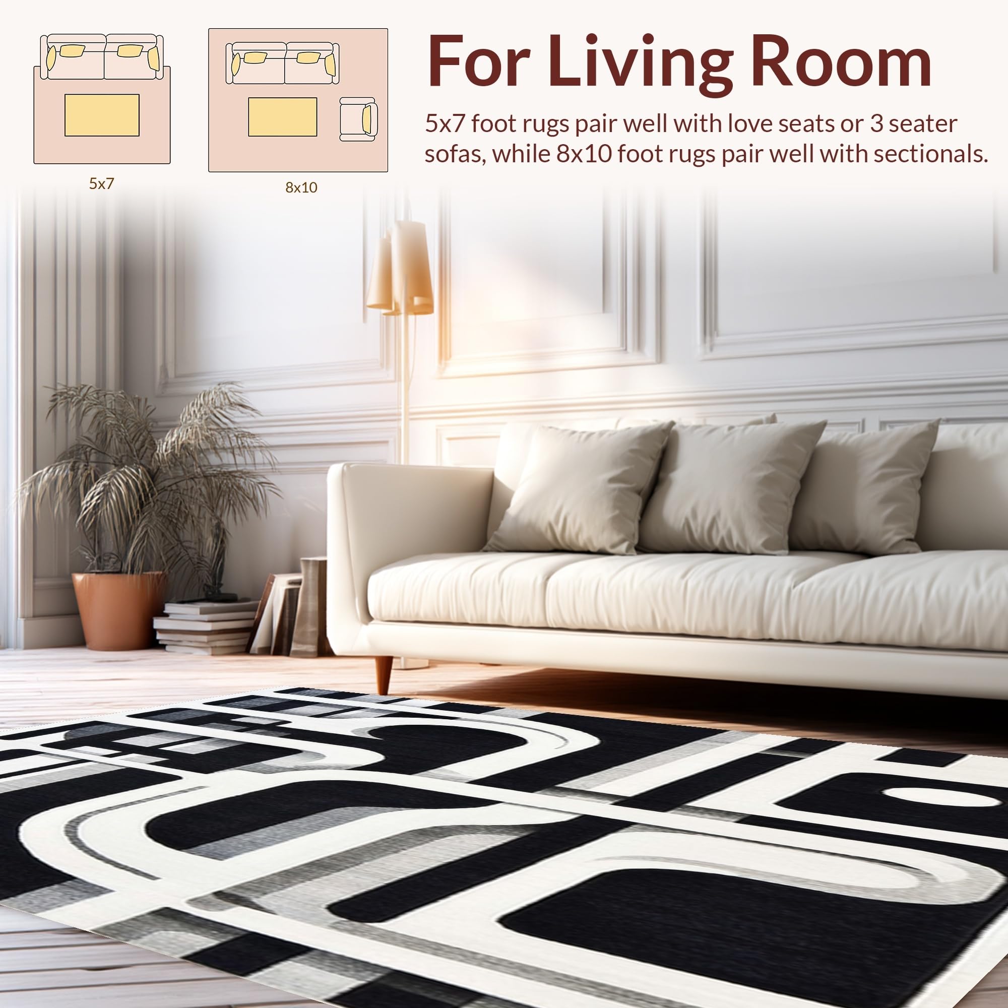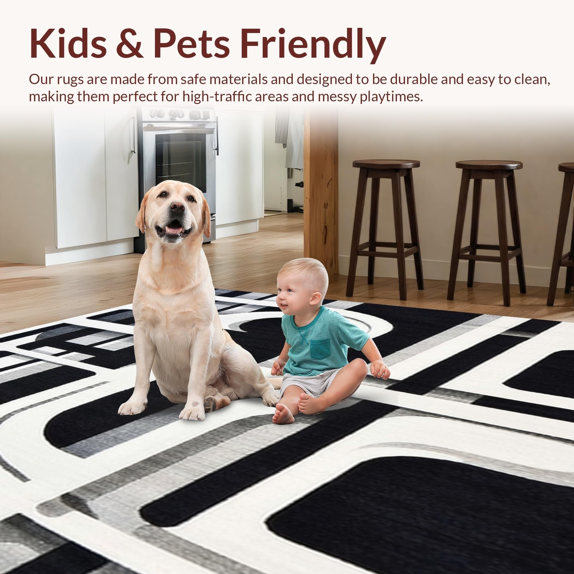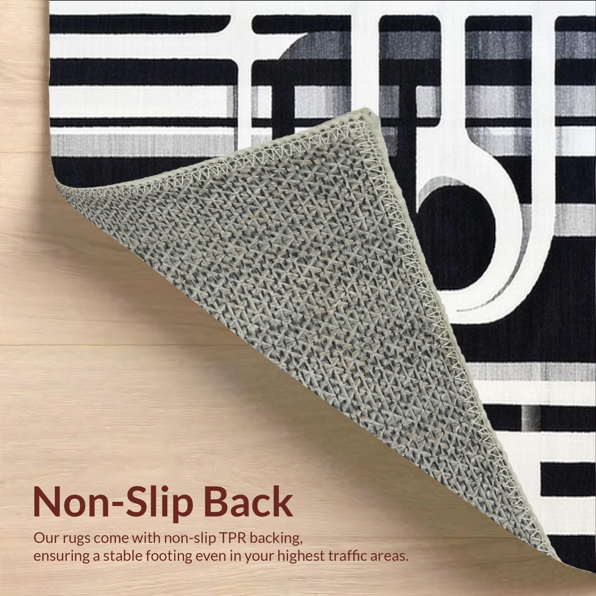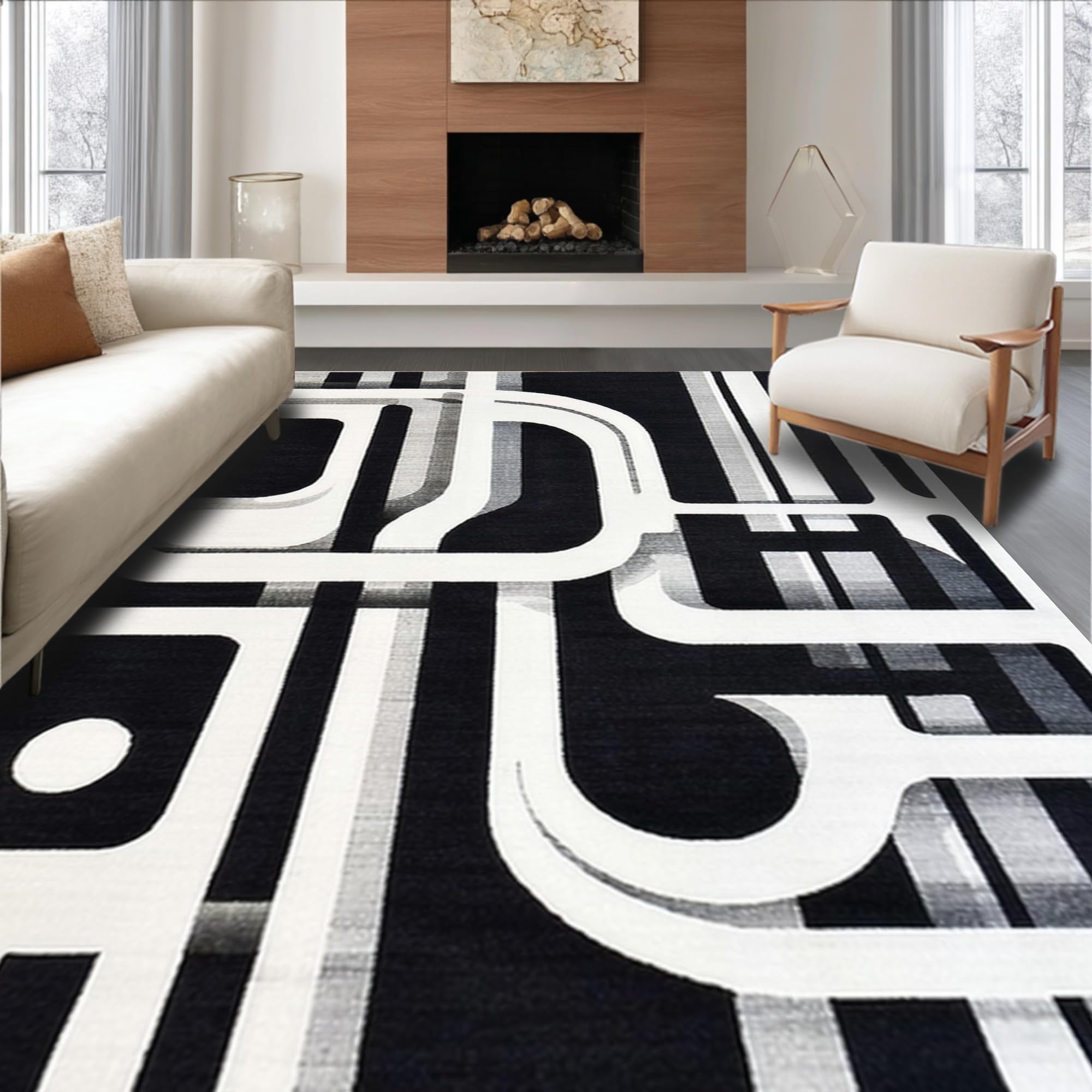 Ultra Soft Area Rug, Non Slip, Stain Resistant, Washable Area Rugs for Living Room, Bedroom, Abstract Black & White Rug Stripe Illusion(Gray) Overview: