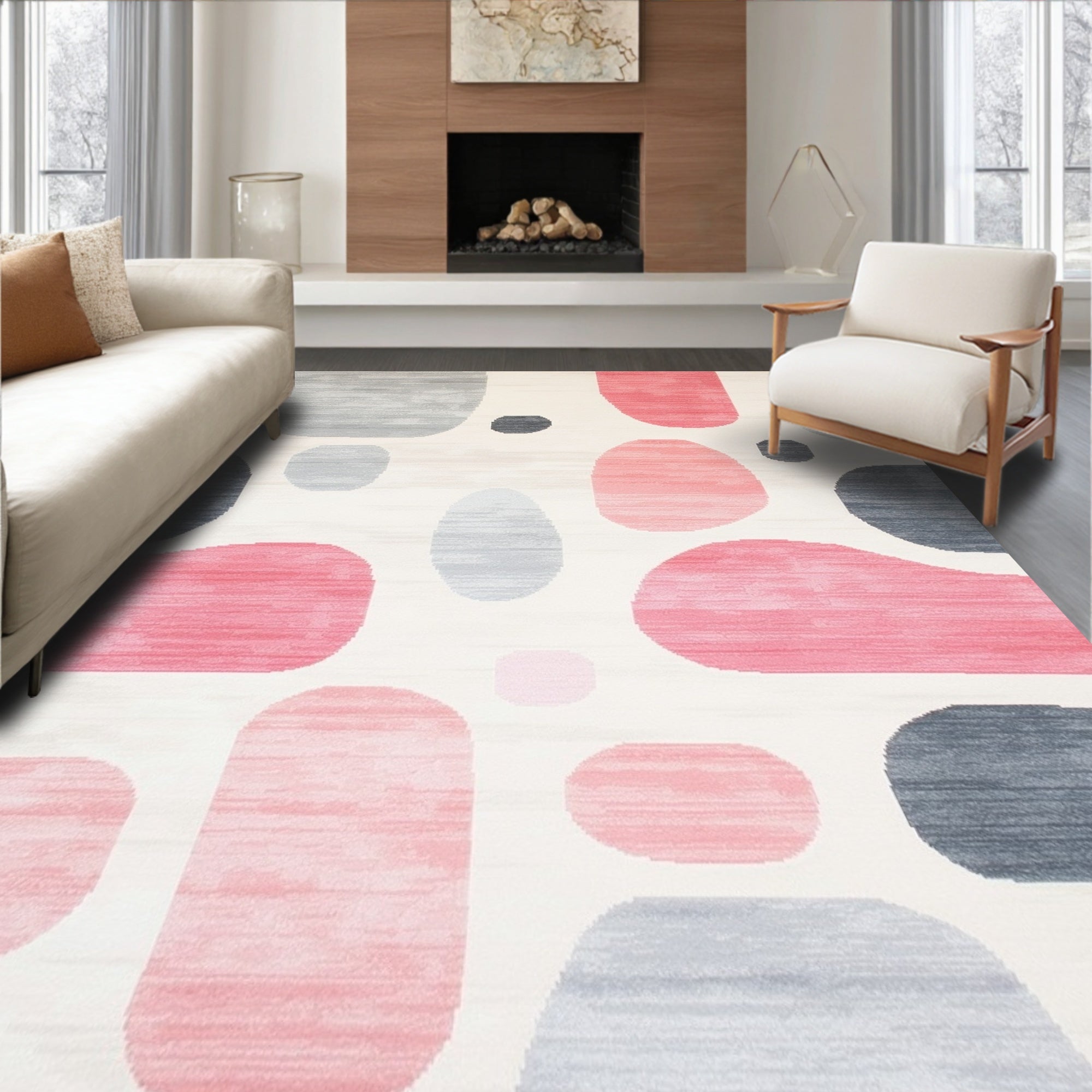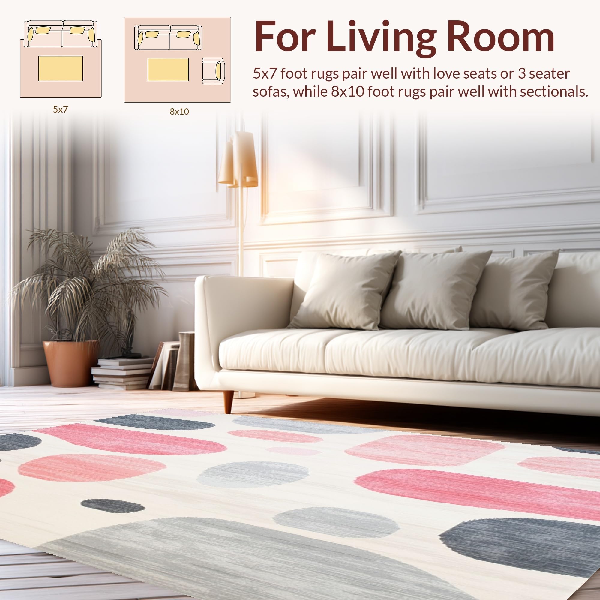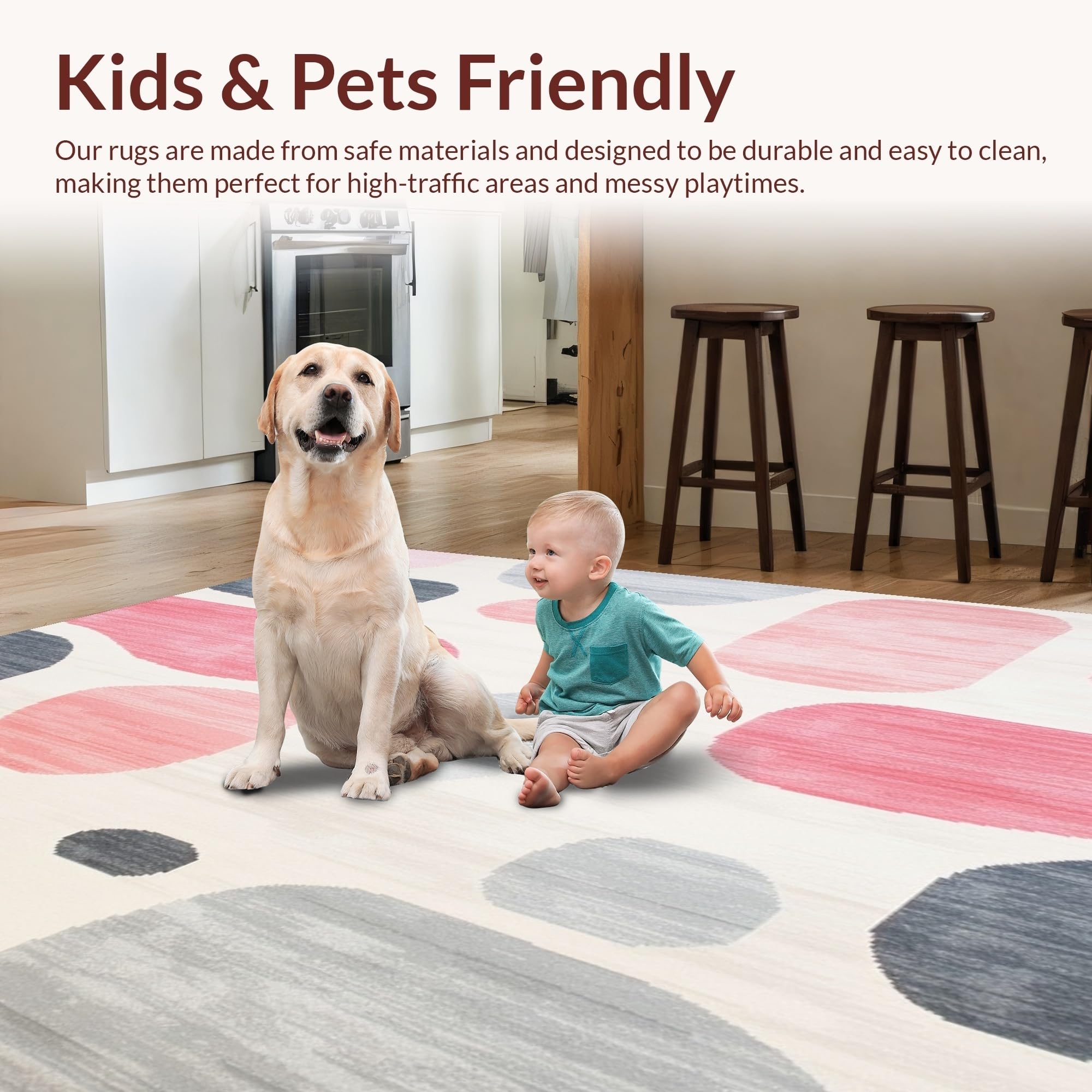 Ultra Soft Area Rug, Non Slip, Stain Resistant, Washable Area Rugs for Living Room, Bedroom, Abstract Blob Dot Shag Area Contemporary Spotted(White) Overview: