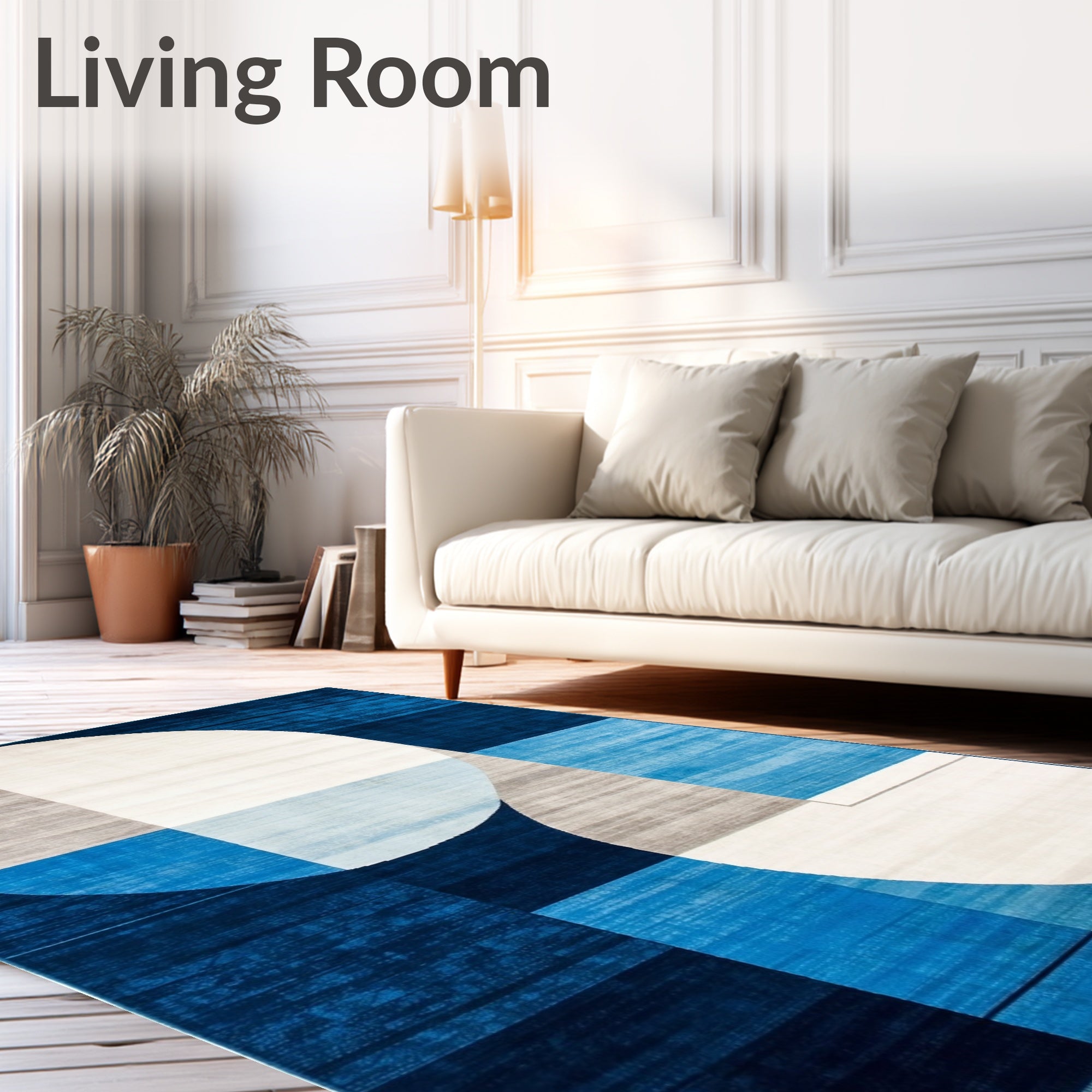 Ultra Soft Area Rug, Non Slip, Stain Resistant, Washable Area Rugs for Living Room, Bedroom, Abstract Blue & Beige Round Modern Design(Blue) Overview: