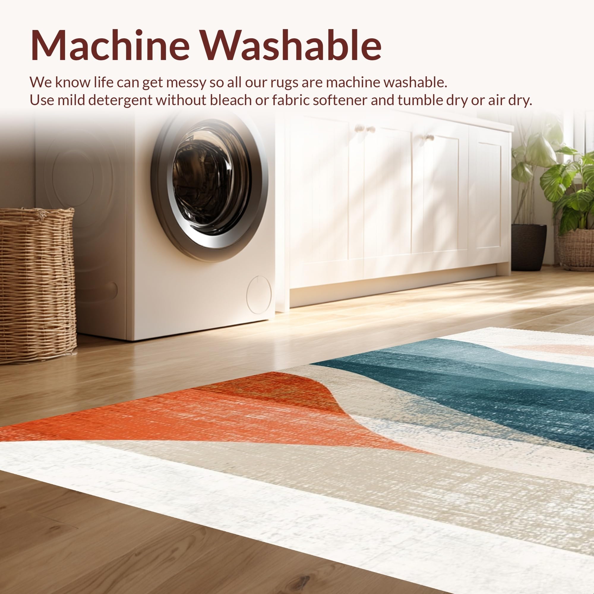 - Machine Washable: Our rugs can be easily thrown in the wash machine.