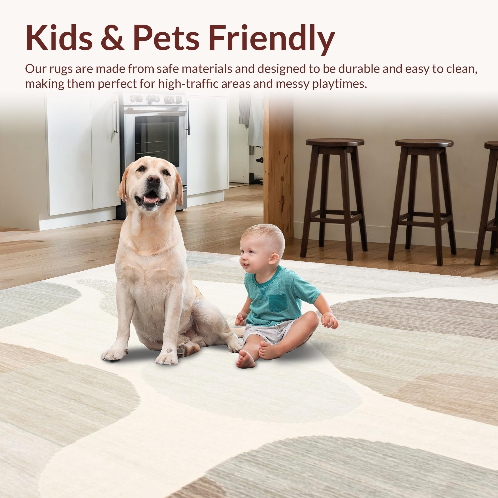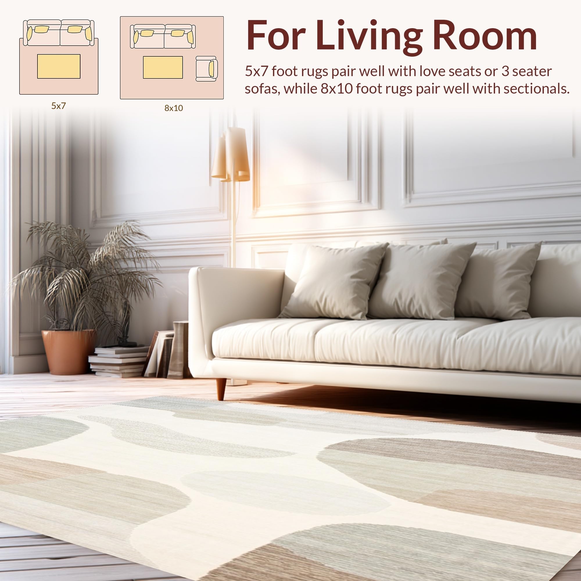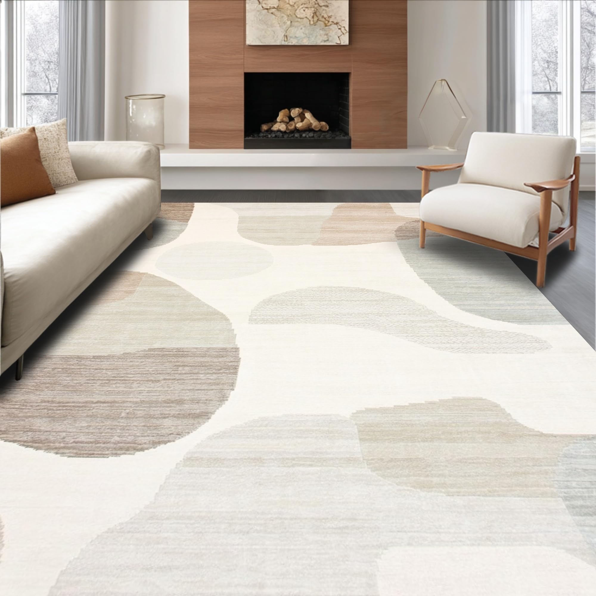 Ultra Soft Area Rug, Non Slip, Stain Resistant, Washable Area Rugs for Living Room, Bedroom, Abstract Boho Chic Area Showcasing Freeform Lines and Layered Shapes(Beige) Overview: