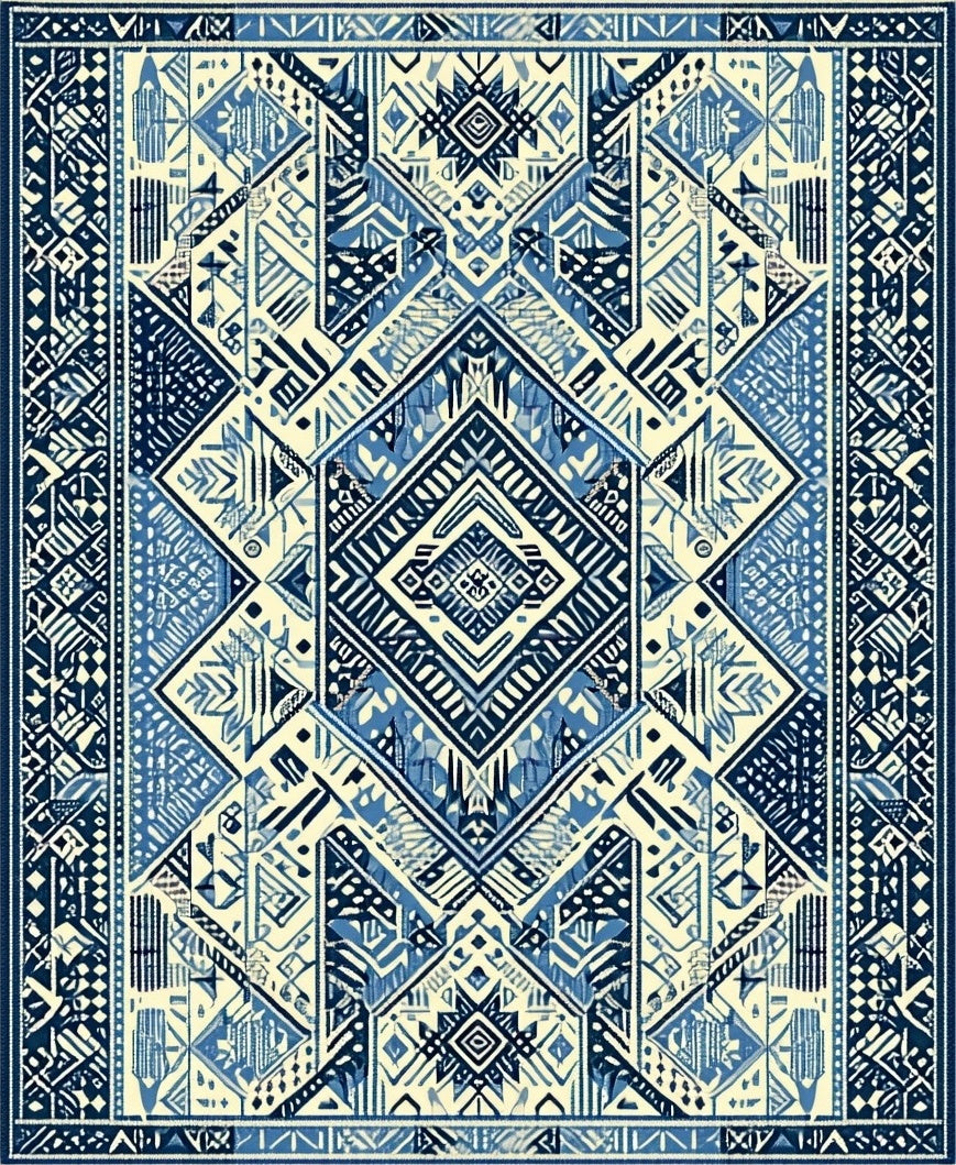 Abstract Boho Cream(Blue)