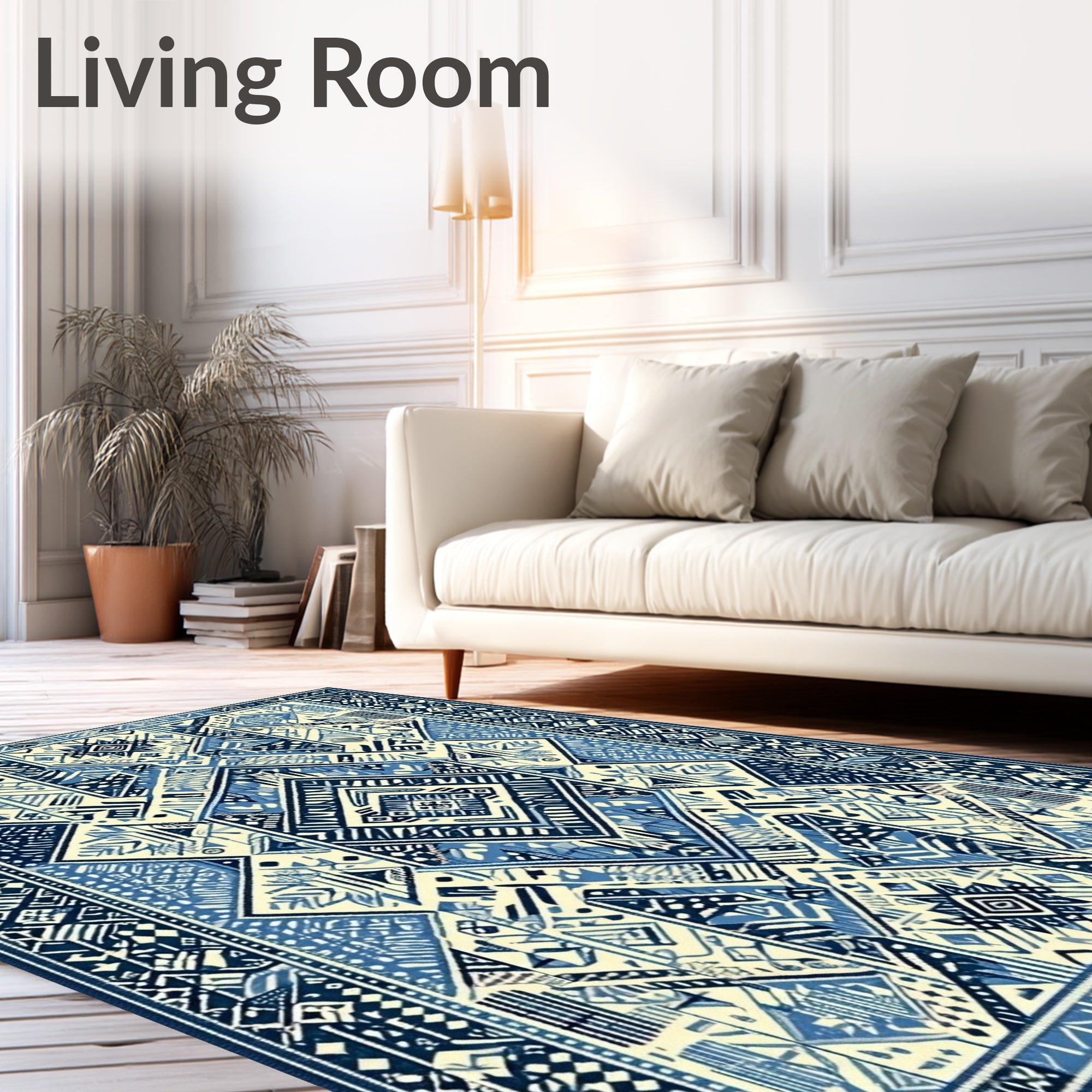 Ultra Soft Area Rug, Non Slip, Stain Resistant, Washable Area Rugs for Living Room, Bedroom, Abstract Boho Cream(Blue) Overview: