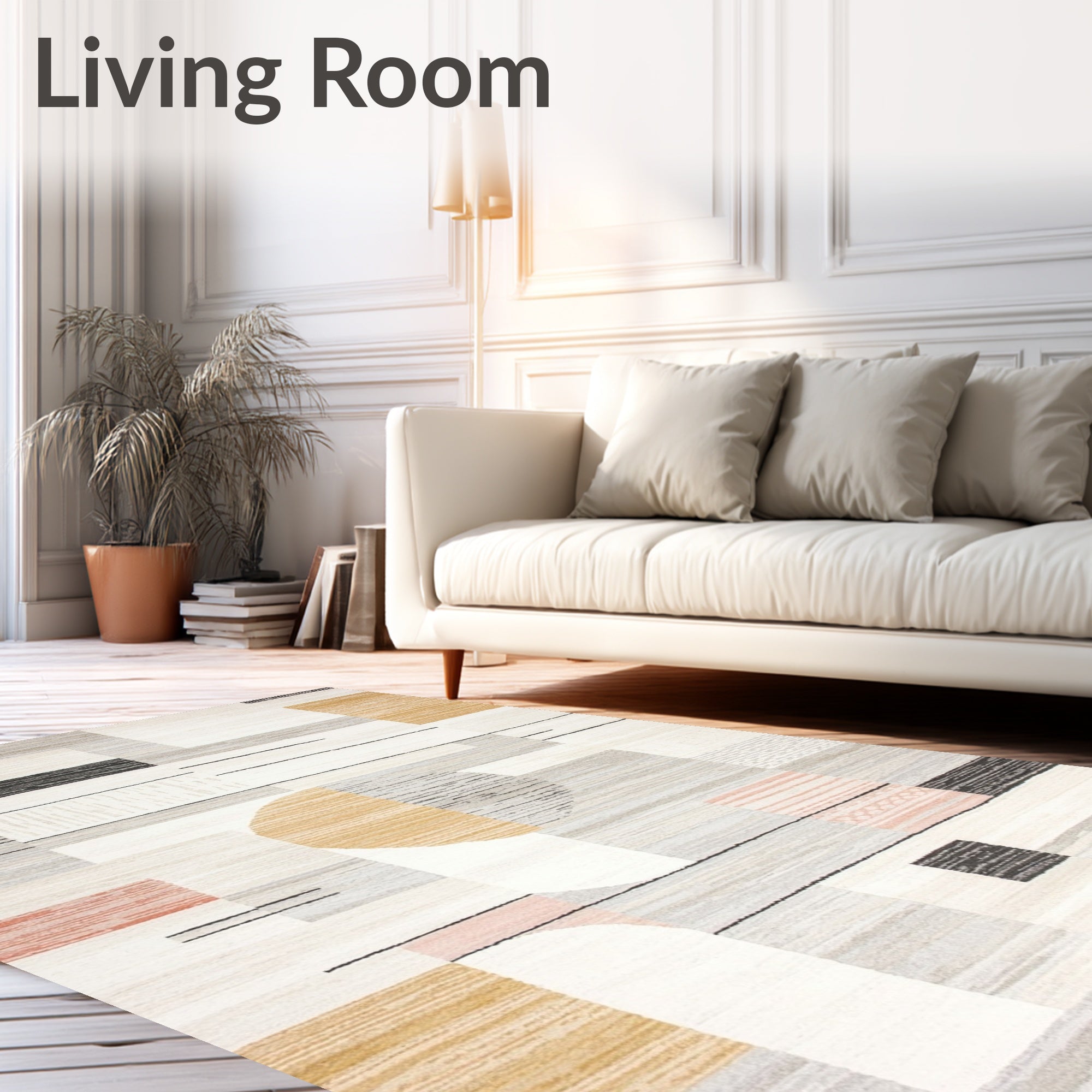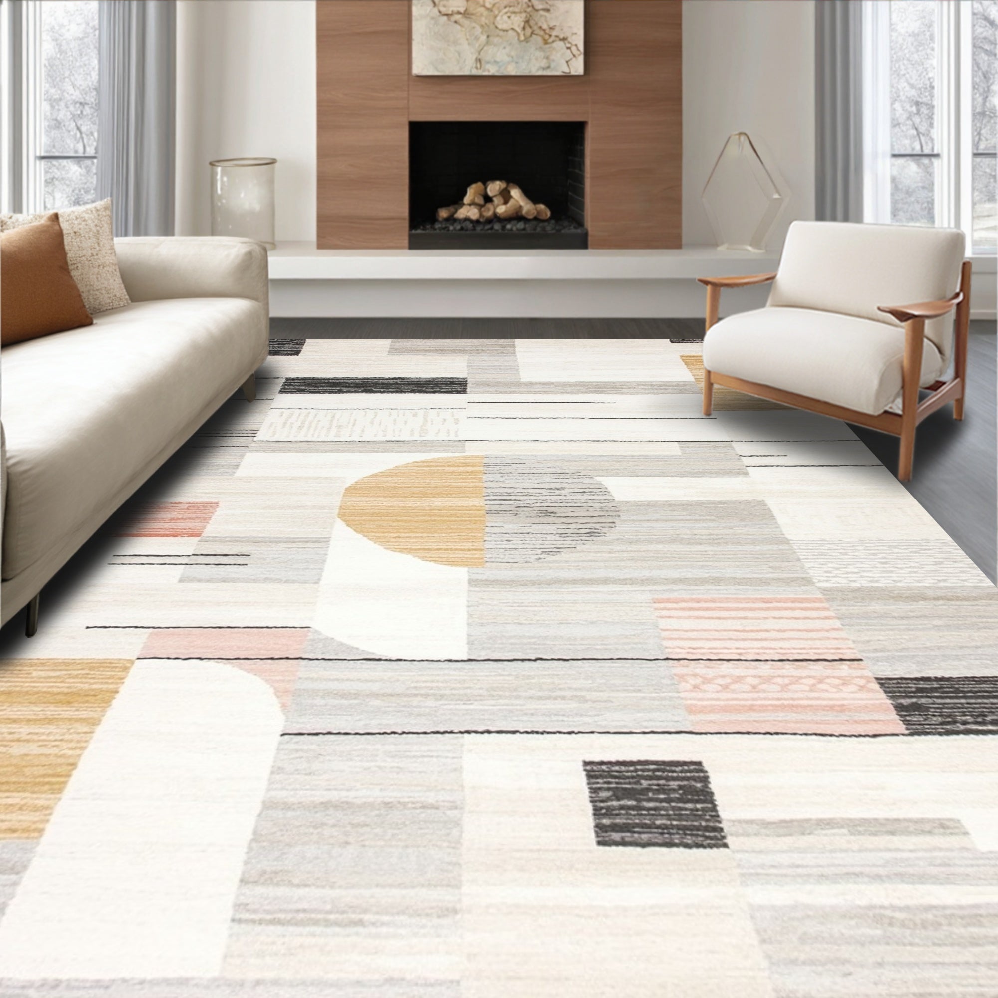 Ultra Soft Area Rug, Non Slip, Stain Resistant, Washable Area Rugs for Living Room, Bedroom, Abstract Boho Harmony with Geometric Lines and Earthy Tones(Gray) Overview: