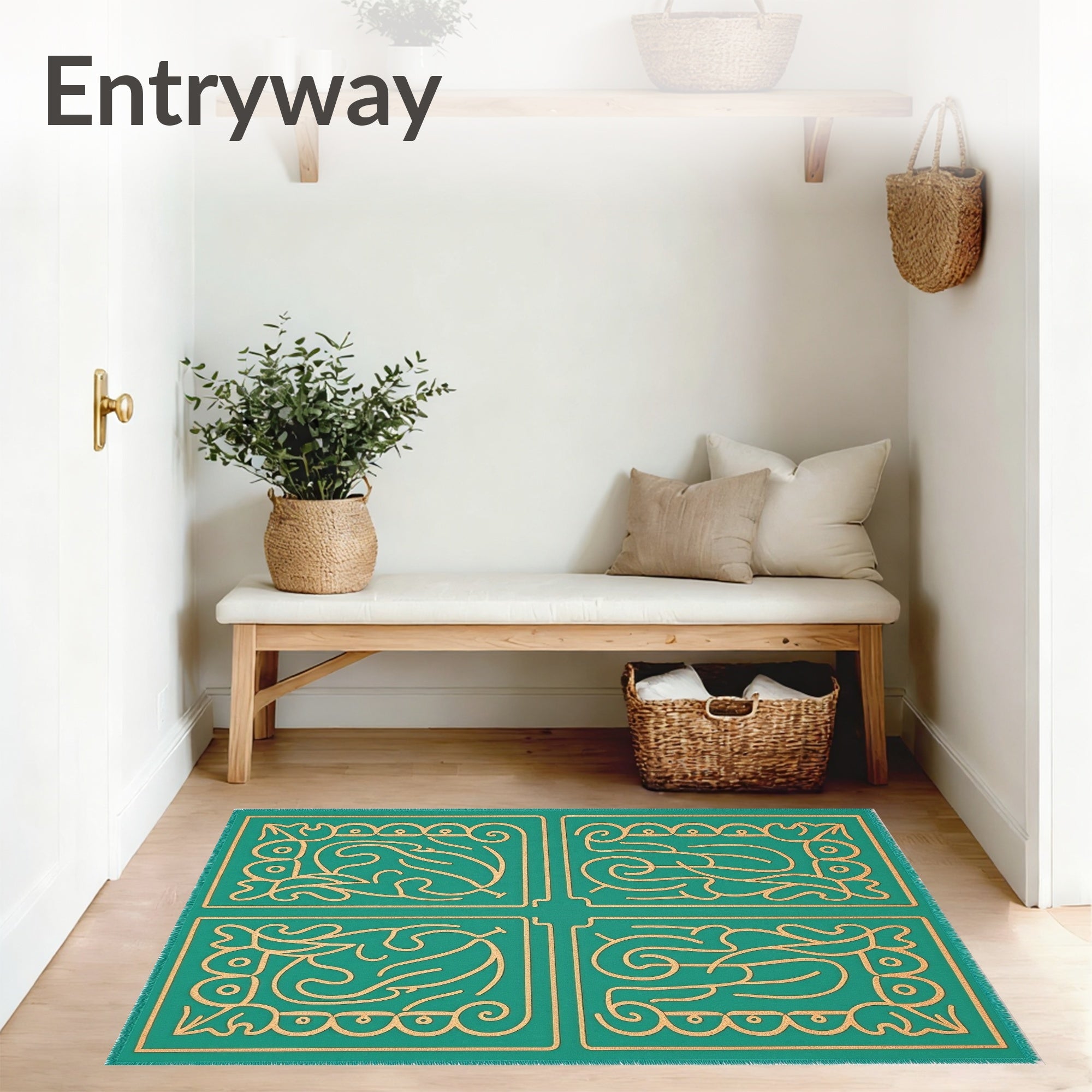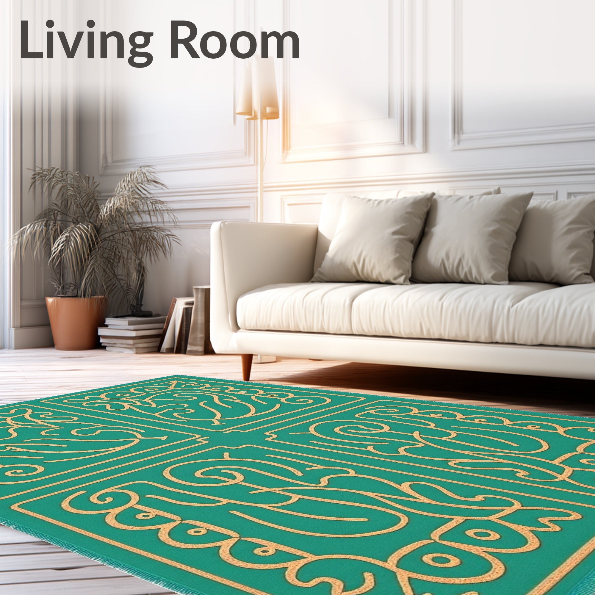 Flatwoven High Traffic Area Rug, Abstract Boho Spiral Decorative Tapestry, Non Slip, Stain Resistant, Washable Area Rugs for Living Room, Bedroom (Green) Overview: