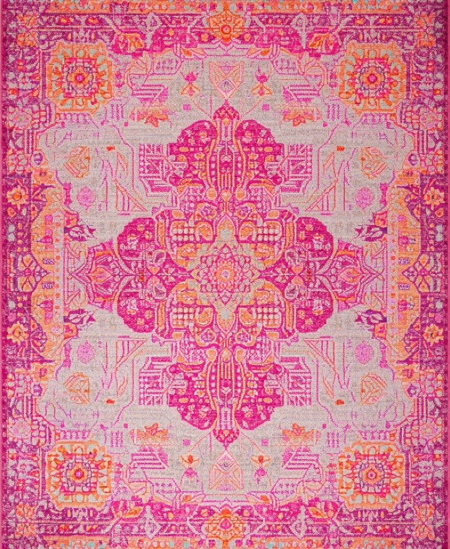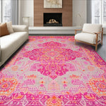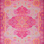 Flatwoven High Traffic Area Rug, Abstract Boho Swirls and Geometric Shapes with Layered Floral Accents, Non Slip, Stain Resistant, Washable Area Rugs for Living Room, Bedroom (Magenta) Overview: