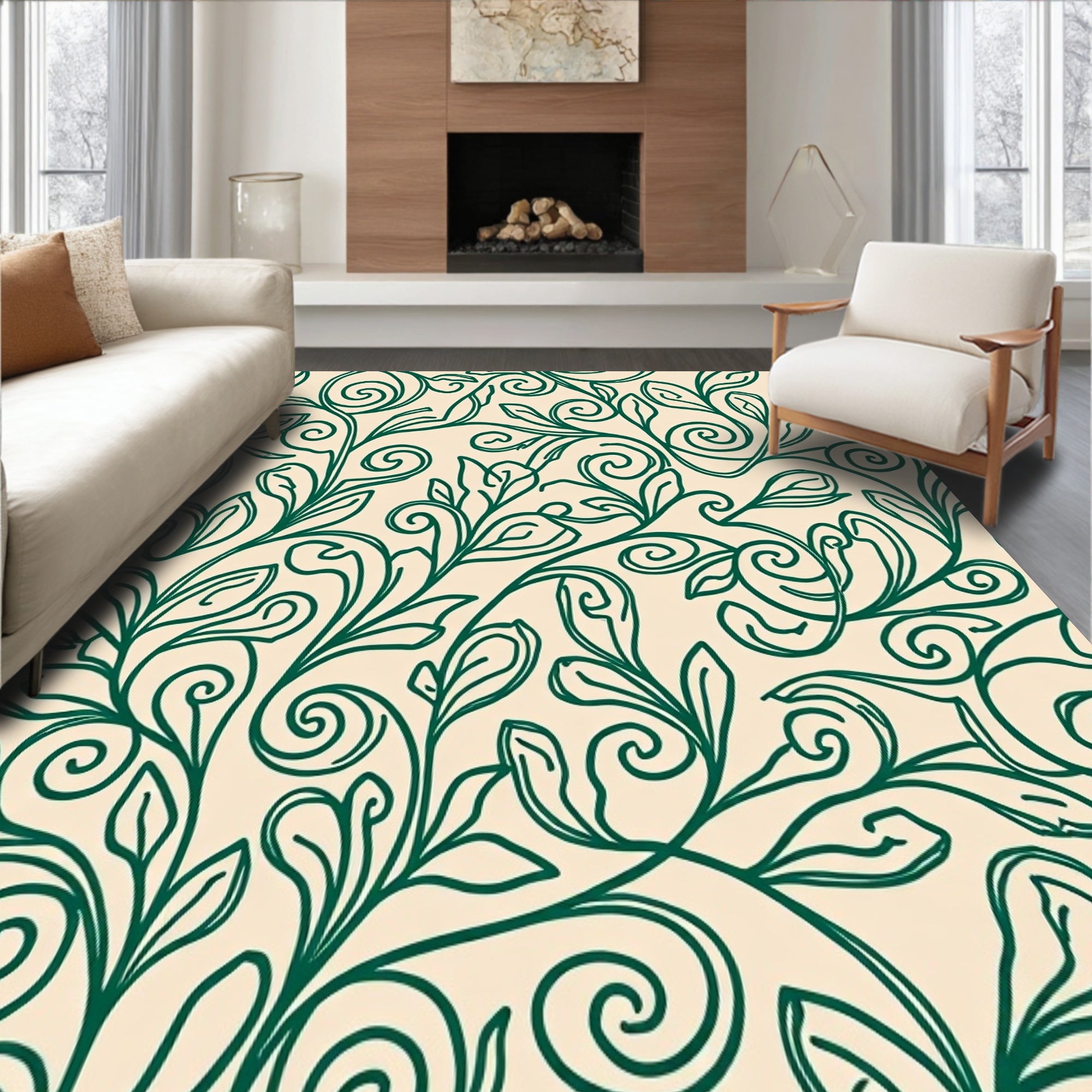 Ultra Soft Area Rug, Non Slip, Stain Resistant, Washable Area Rugs for Living Room, Bedroom, Abstract Botanical Flourish with Swirling Vine Motifs(Beige) Overview:
