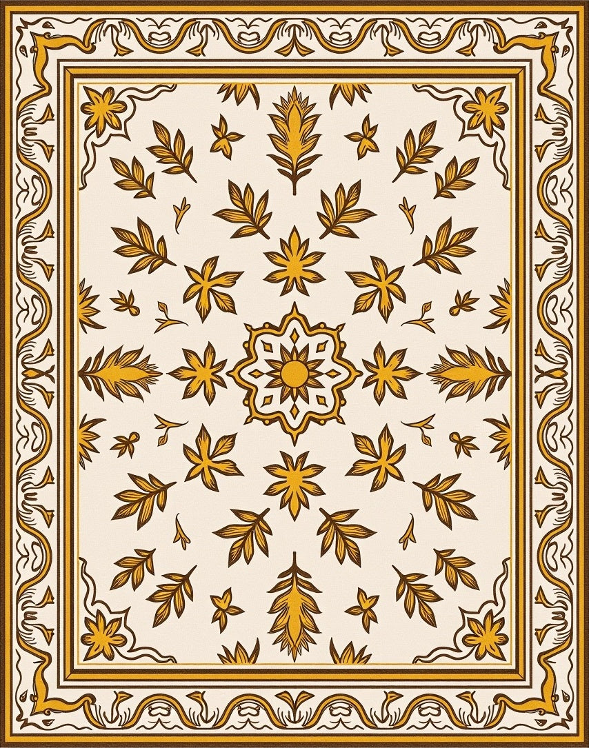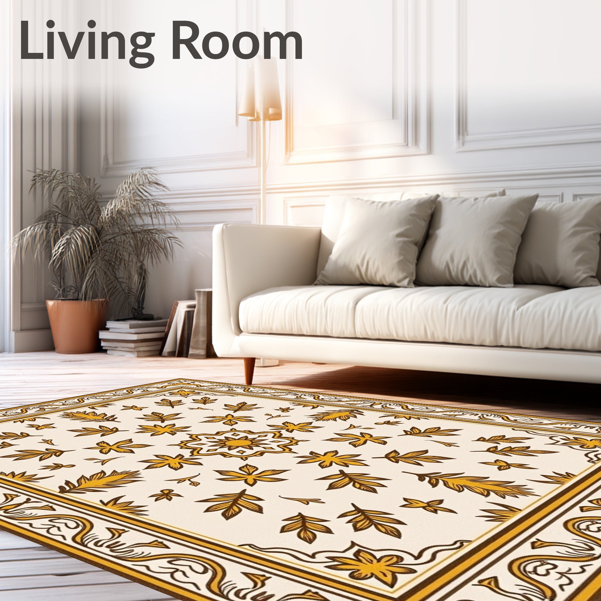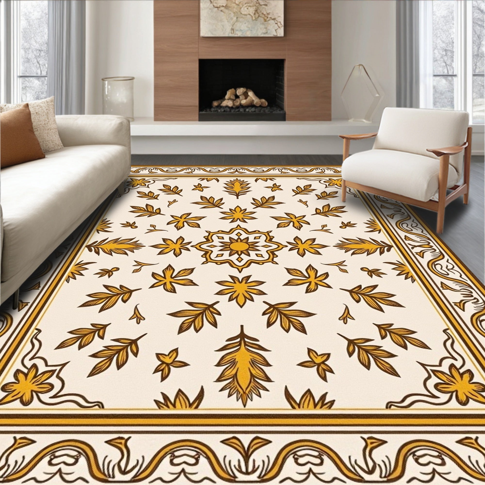 Flatwoven High Traffic Area Rug, Abstract Botanical Leaf Damask Inspired Treasure, Non Slip, Stain Resistant, Washable Area Rugs for Living Room, Bedroom (Gold) Overview: