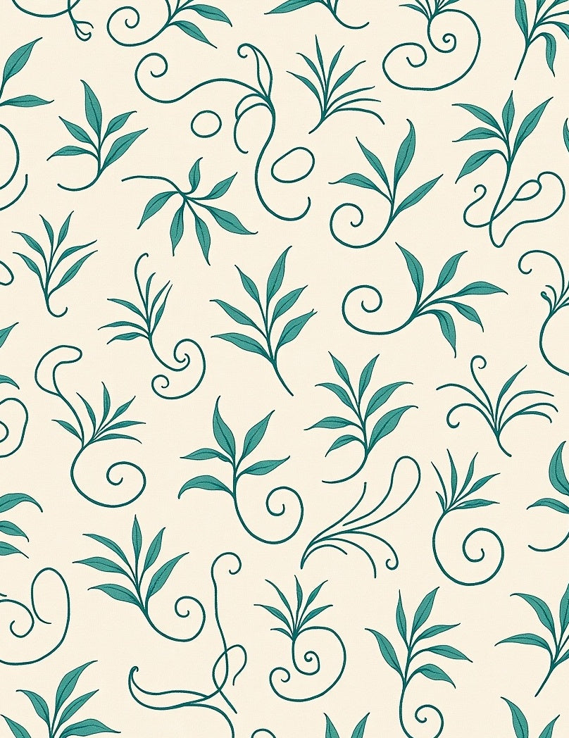 Abstract Botanical Scroll with Faded Elegance Style(Ivory)