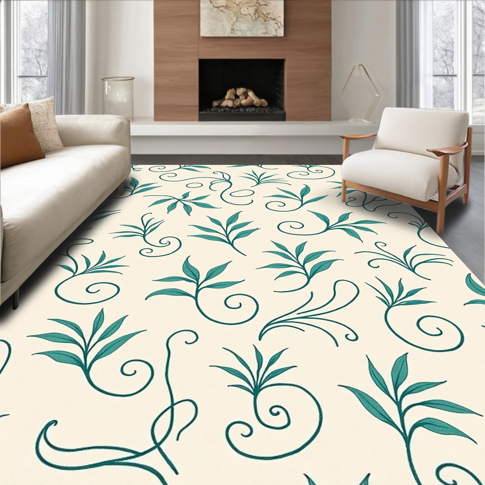 Flatwoven High Traffic Area Rug, Abstract Botanical Scroll with Faded Elegance Style, Non Slip, Stain Resistant, Washable Area Rugs for Living Room, Bedroom (Ivory) Overview:
