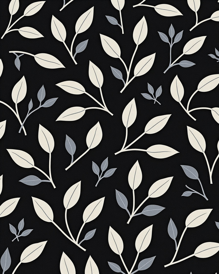 Abstract Botanical Silhouettes with Delicate Leaf Motifs(Black)