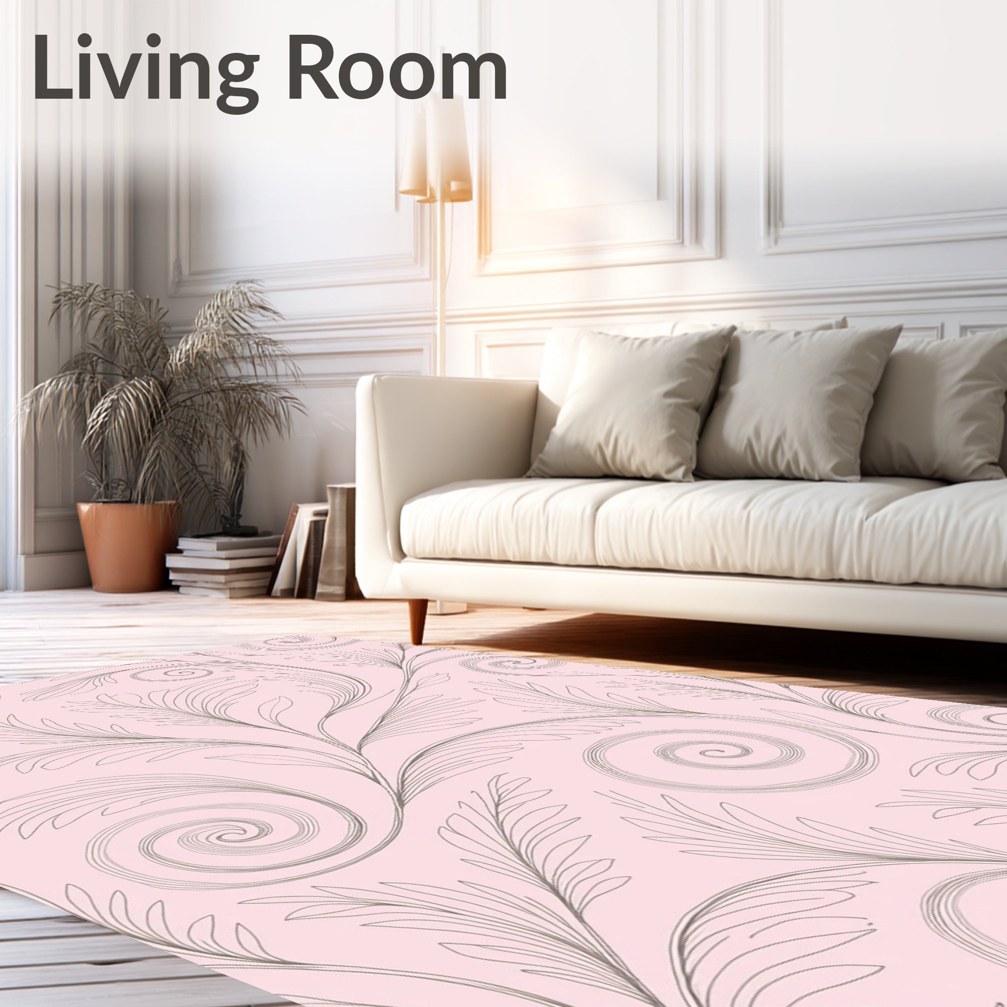 Flatwoven High Traffic Area Rug, Abstract Botanical Swirl Contemporary Elegant Minimalist Ornate, Non Slip, Stain Resistant, Washable Area Rugs for Living Room, Bedroom (Pink) Overview: