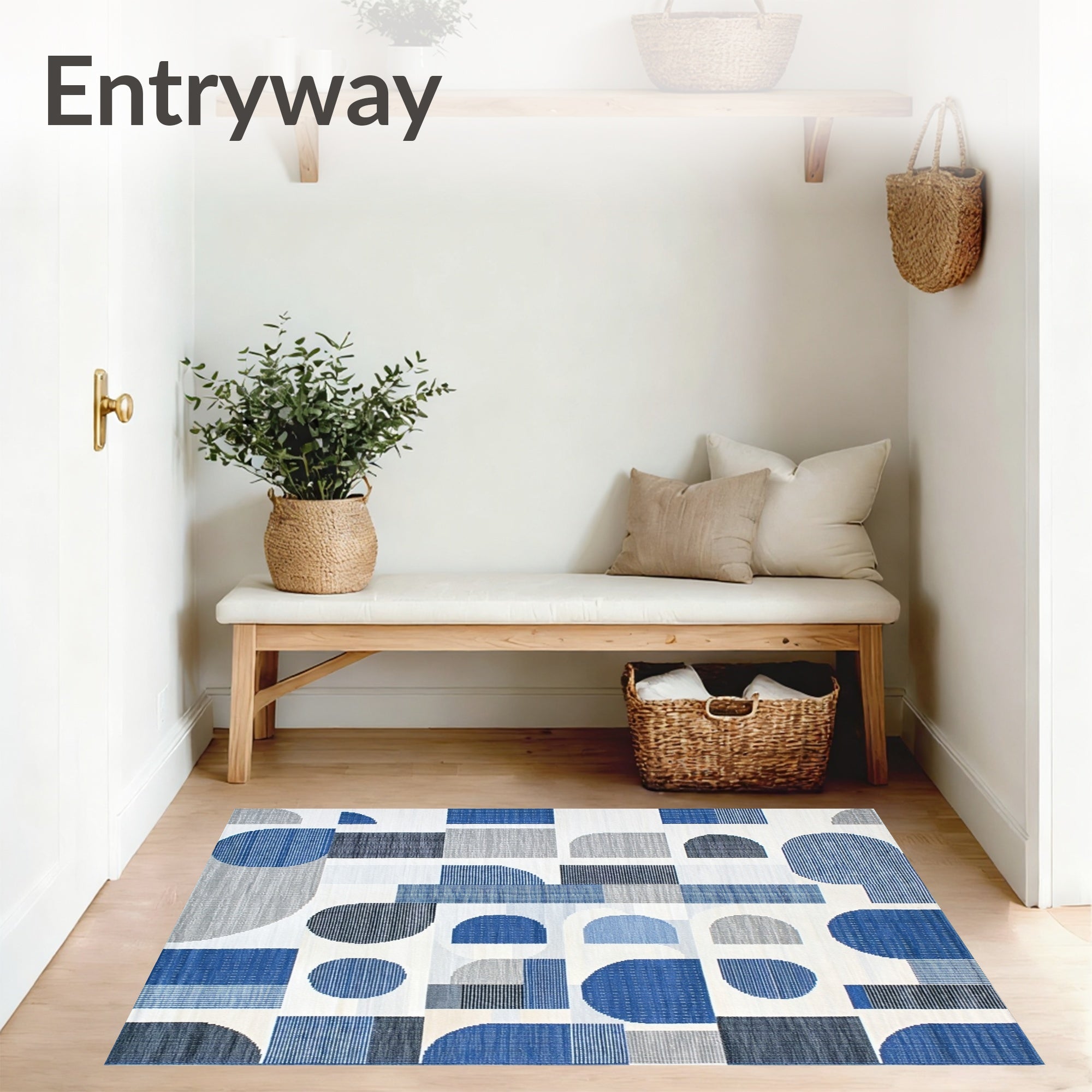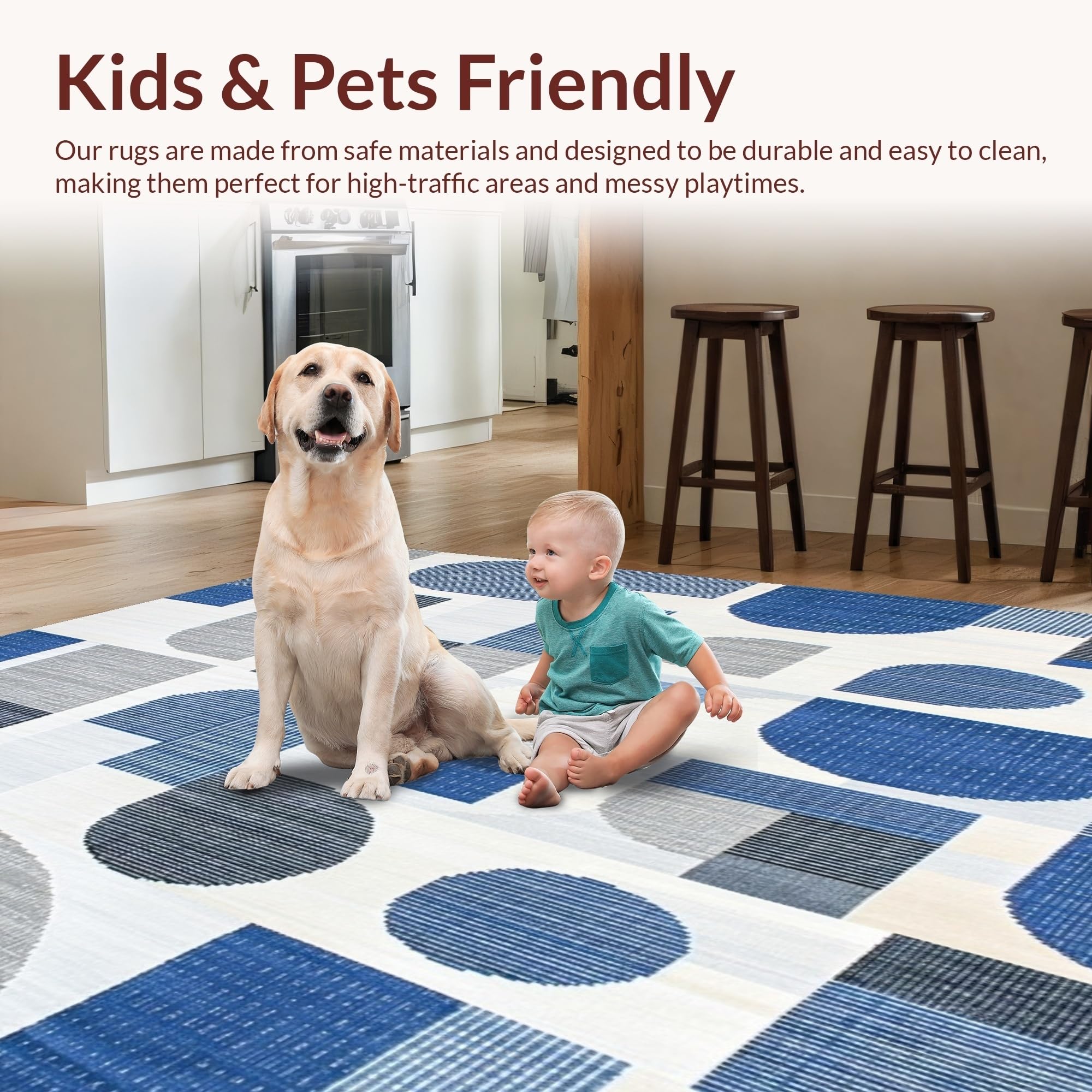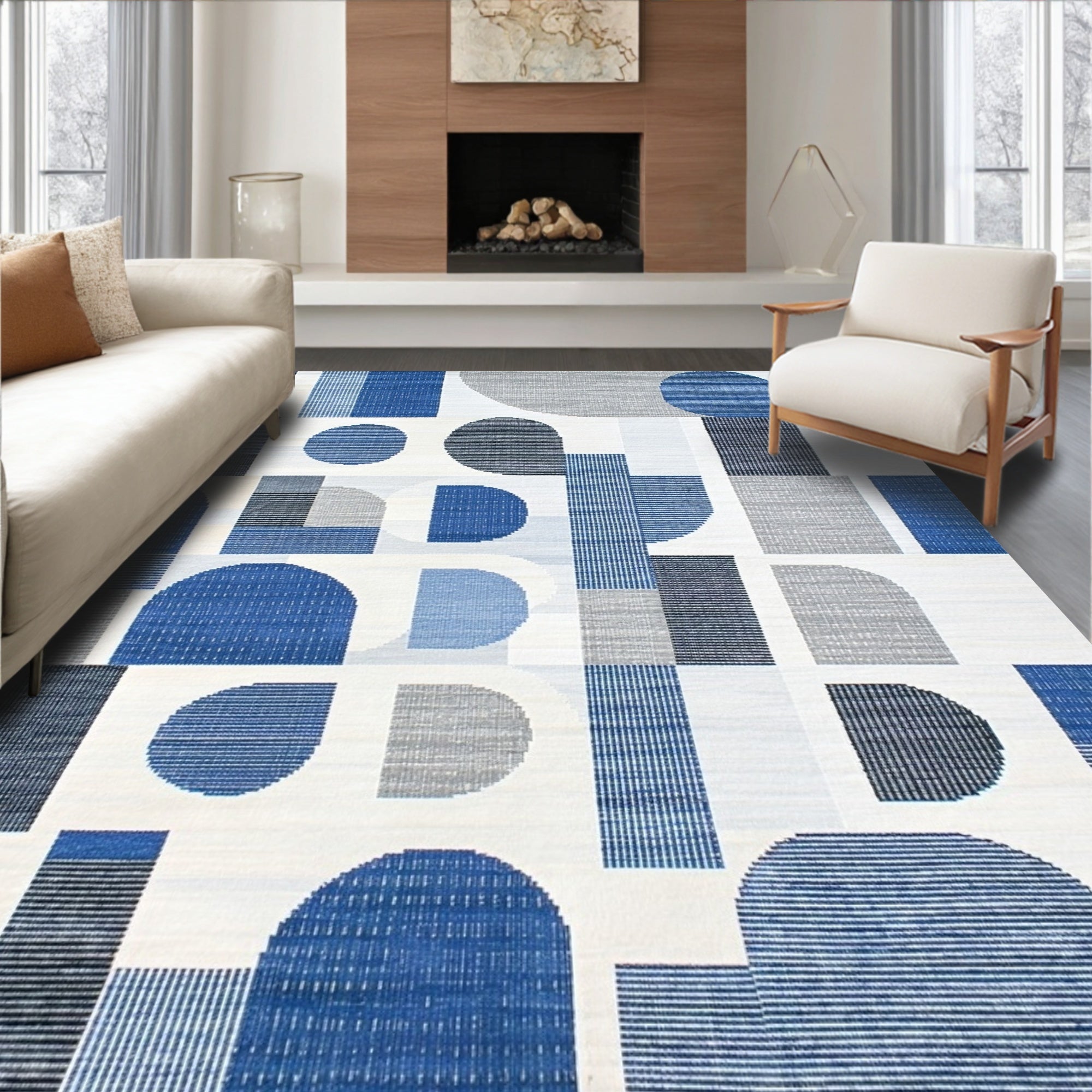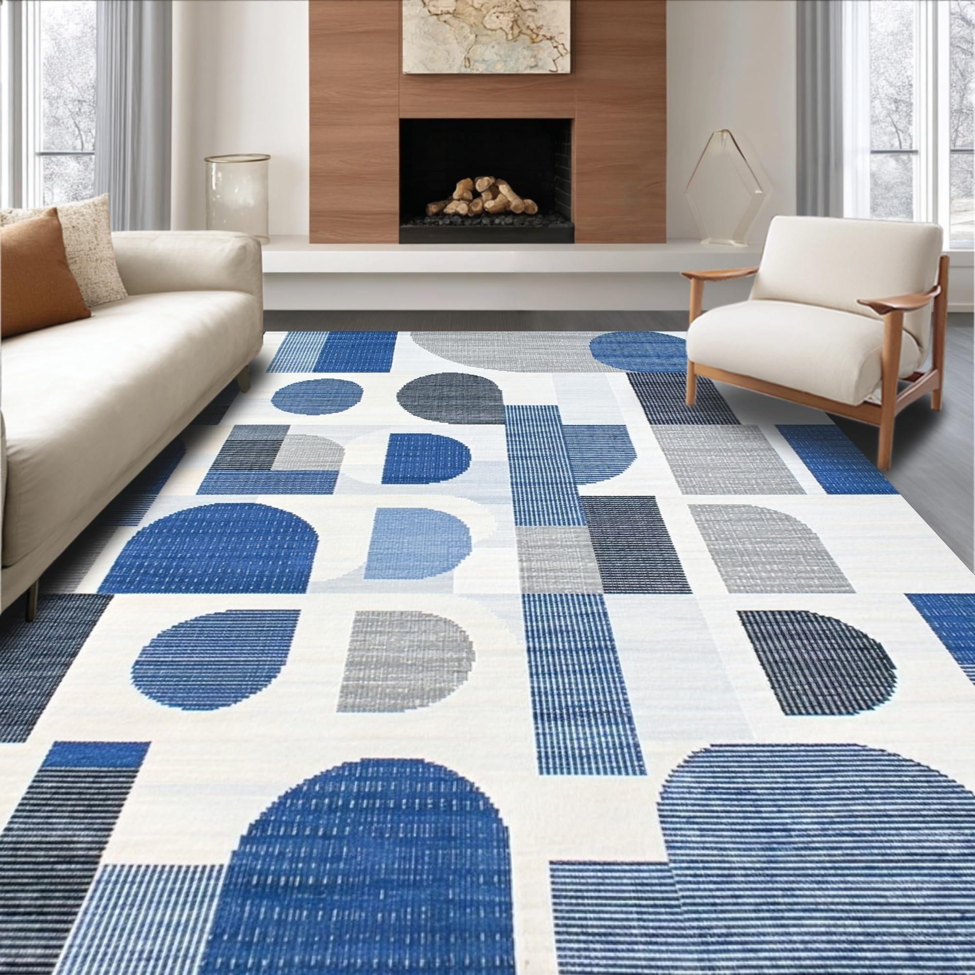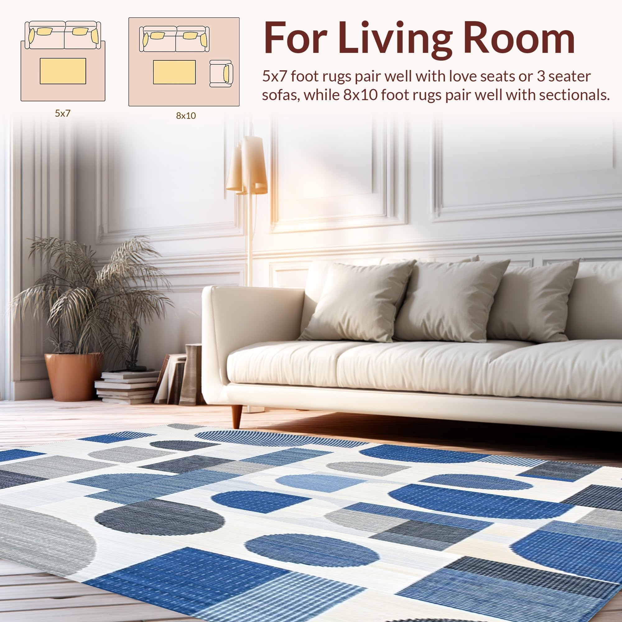 Ultra Soft Area Rug, Non Slip, Stain Resistant, Washable Area Rugs for Living Room, Bedroom, Abstract Braided Area Blue and Gray(Blue) Overview: