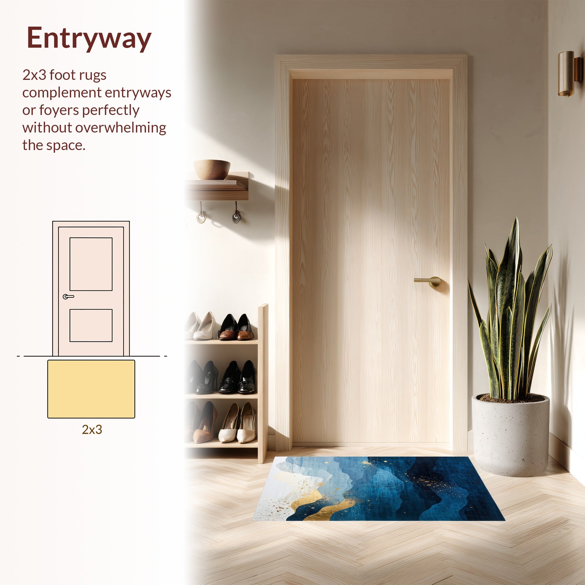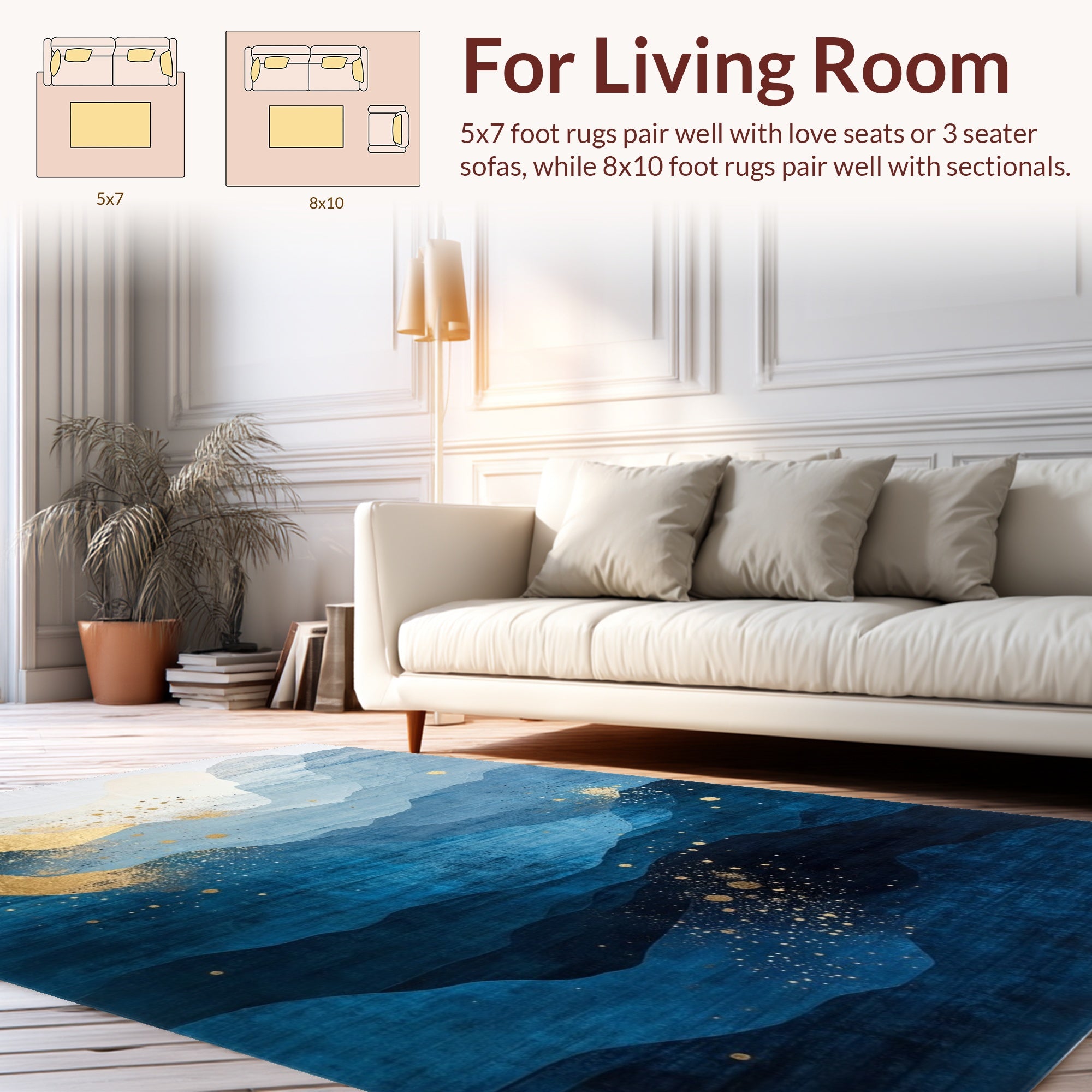 Ultra Soft Area Rug, Non Slip, Stain Resistant, Washable Area Rugs for Living Room, Bedroom, Abstract Carpet Deep Blue Gradient Gold Brushstroke(Blue) Overview:
