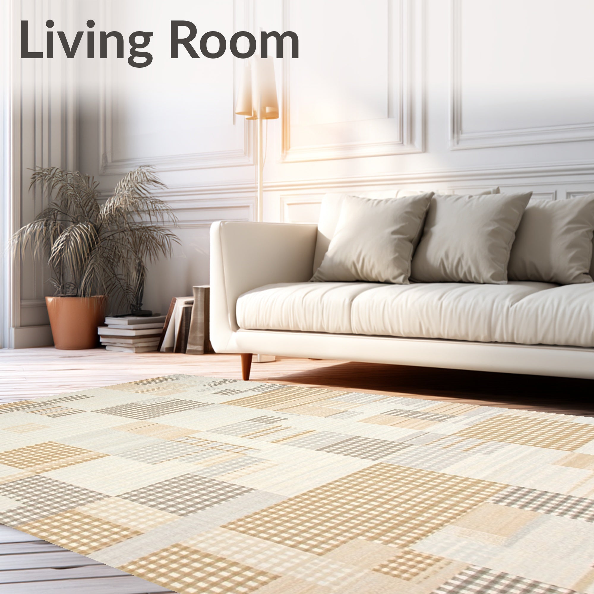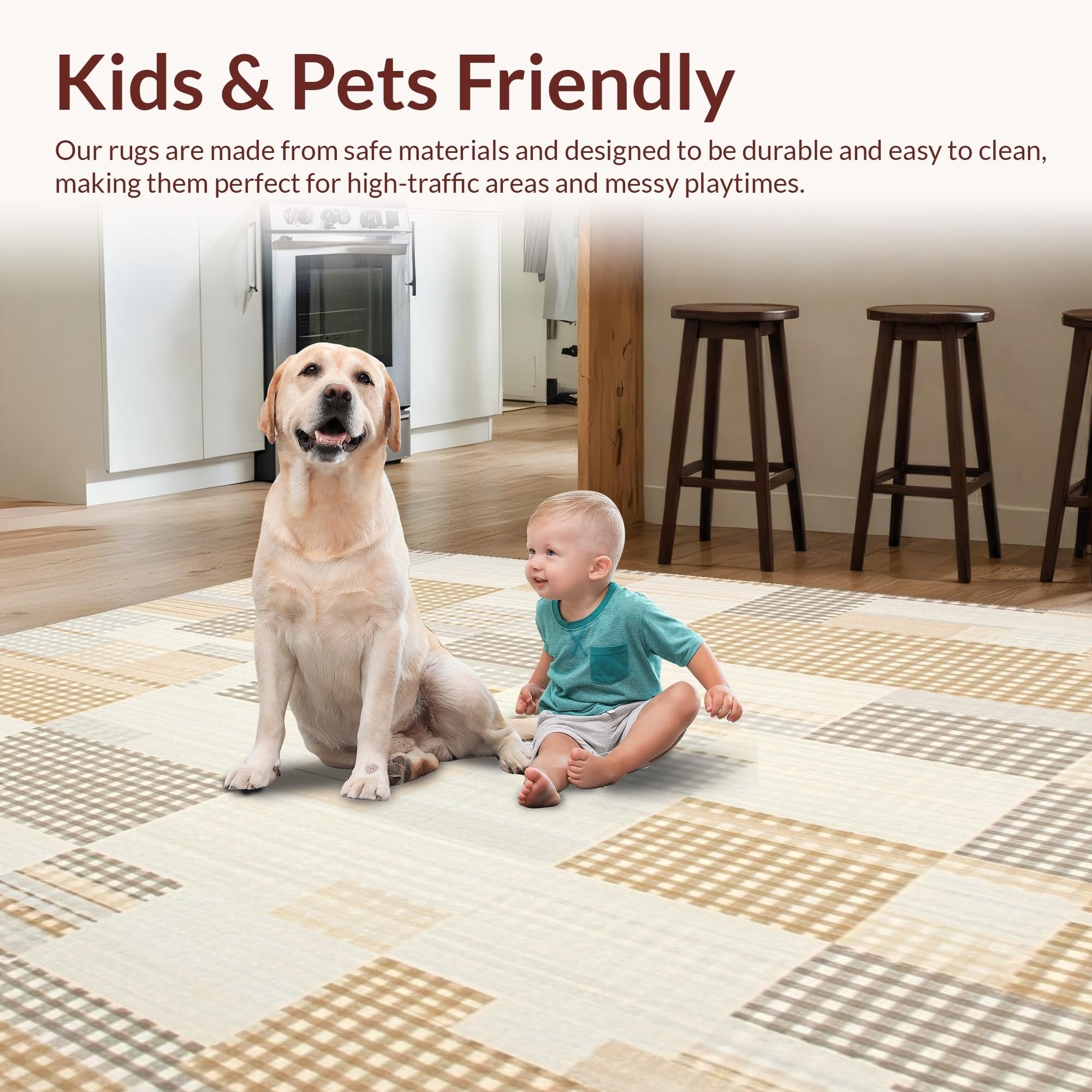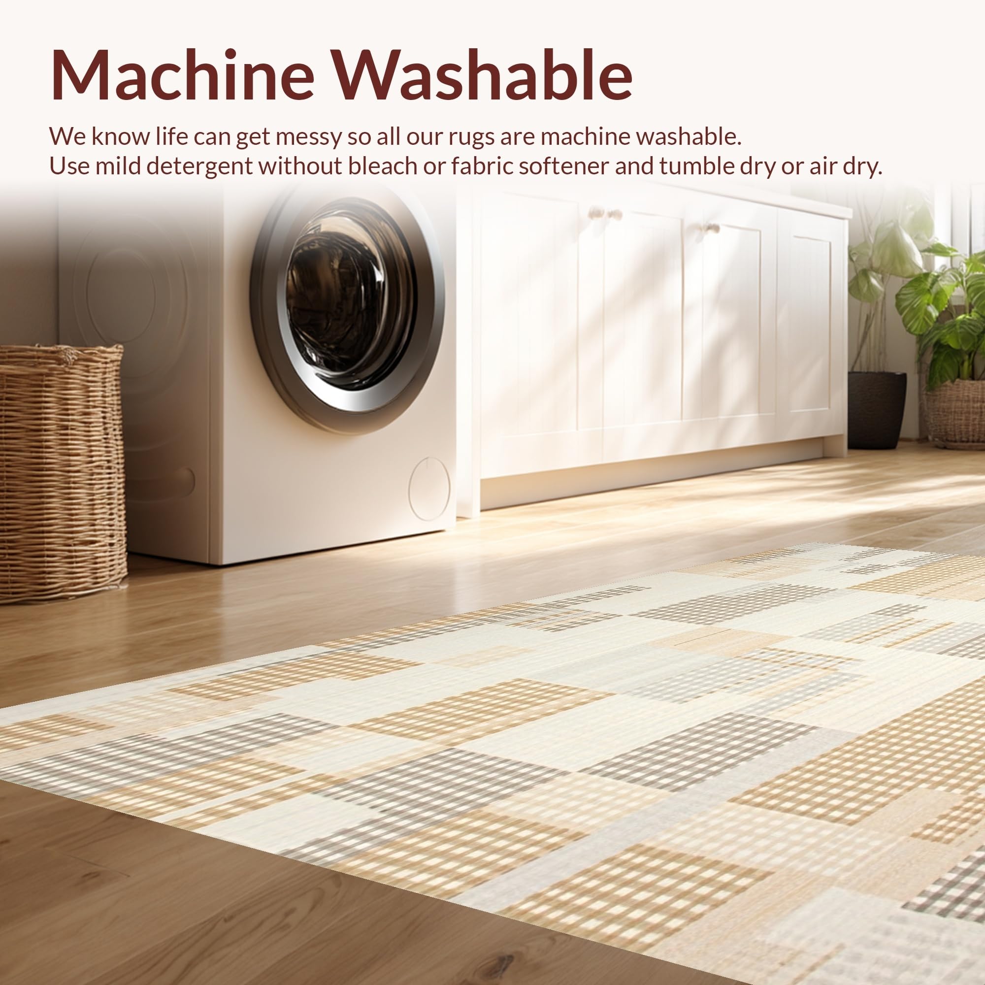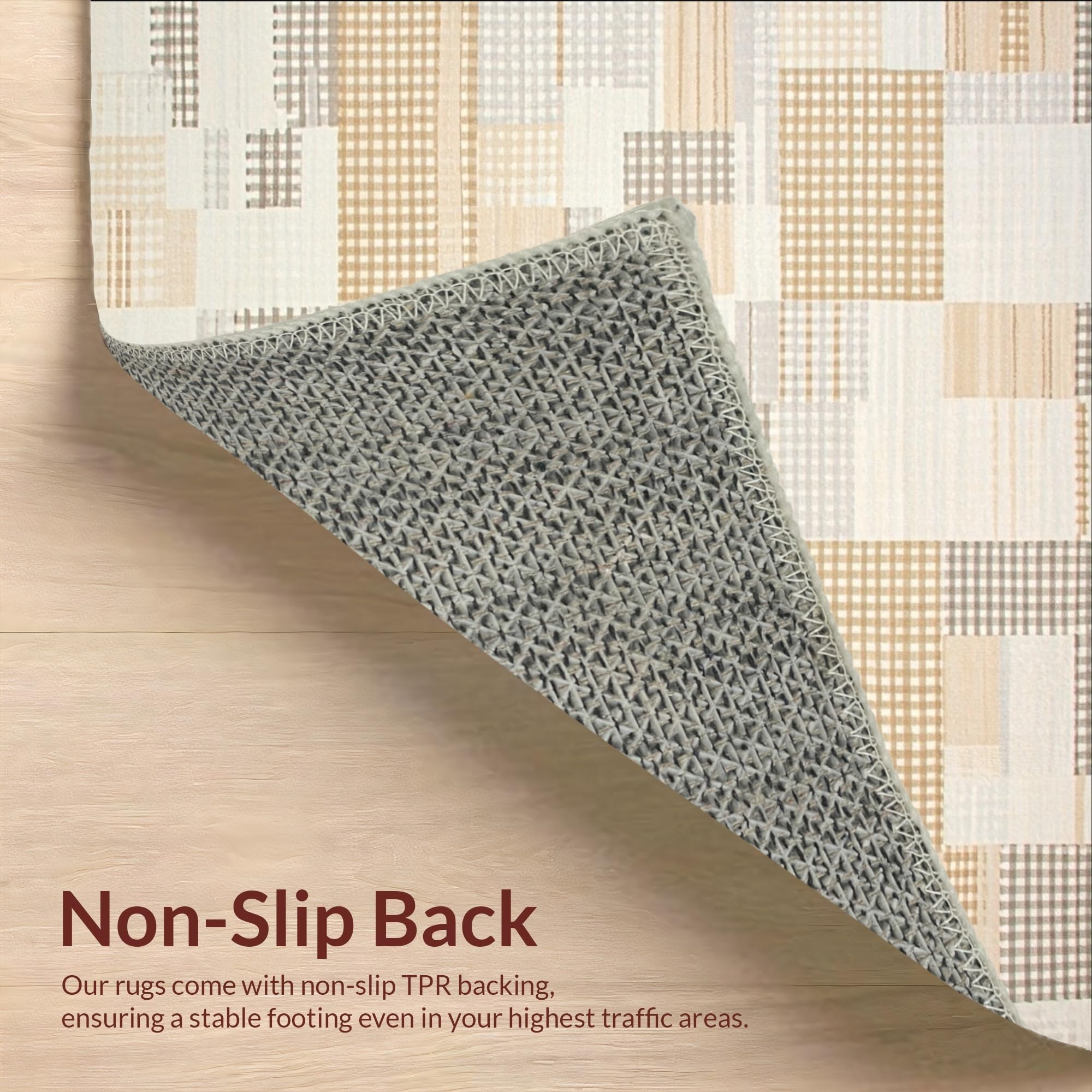 Ultra Soft Area Rug, Non Slip, Stain Resistant, Washable Area Rugs for Living Room, Bedroom, Abstract Checkered Area Non Slip Weave(Beige) Overview: