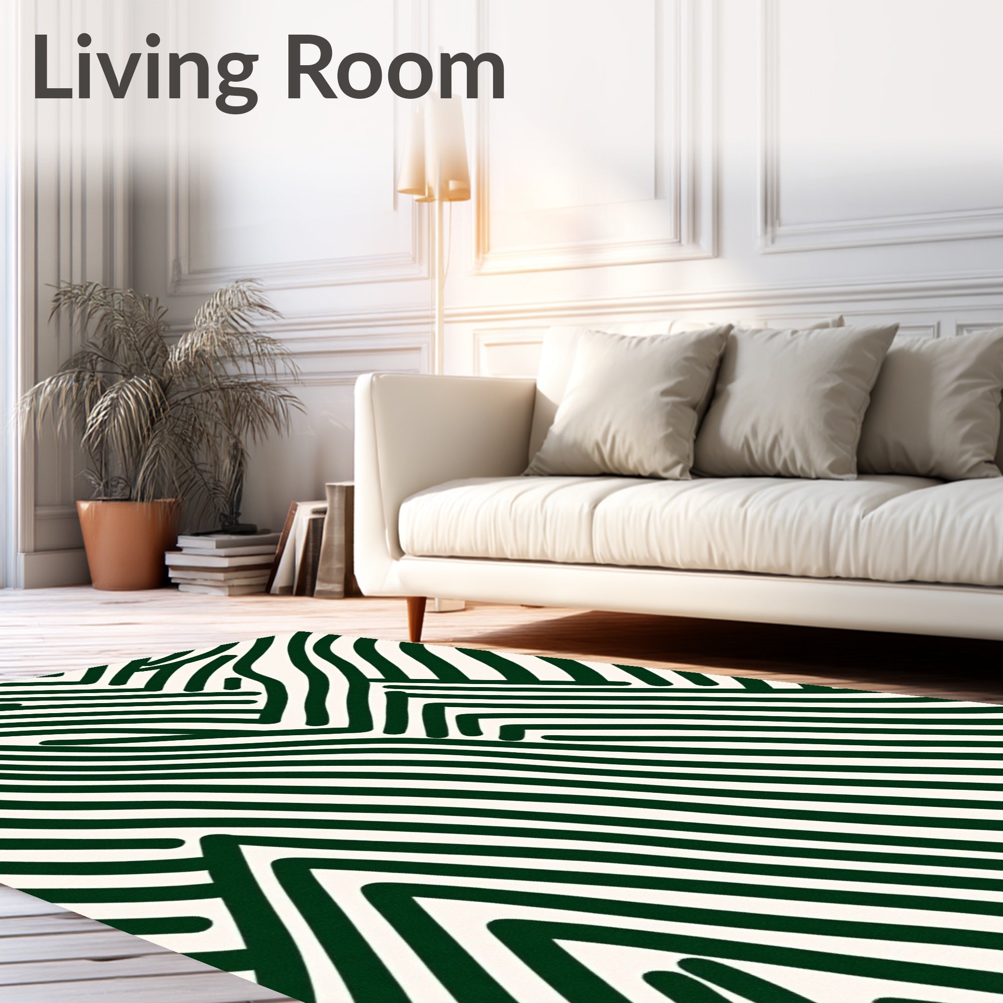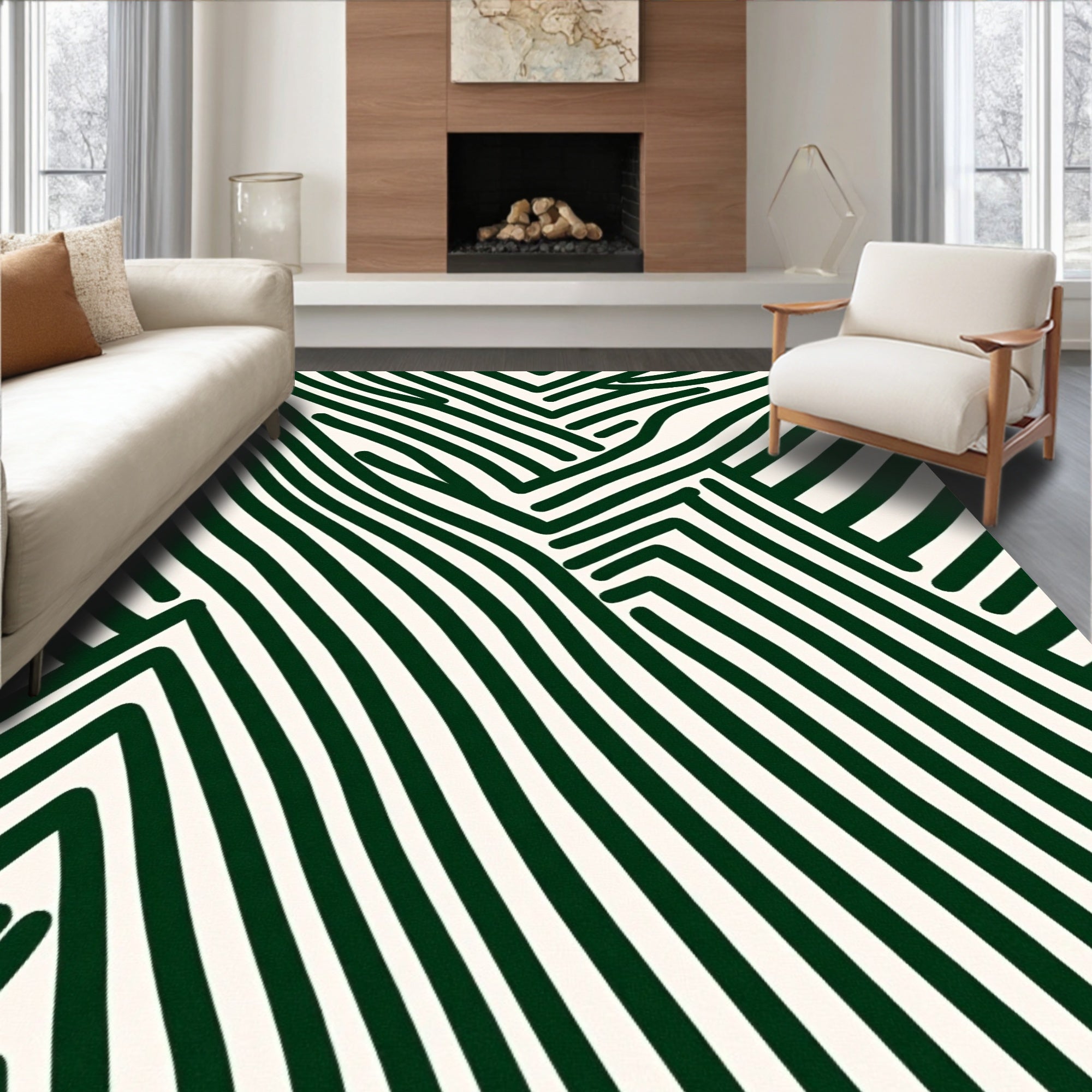 Flatwoven High Traffic Area Rug, Abstract Chevron Waves with Minimalist Stripe Configuration, Non Slip, Stain Resistant, Washable Area Rugs for Living Room, Bedroom (Green) Overview: