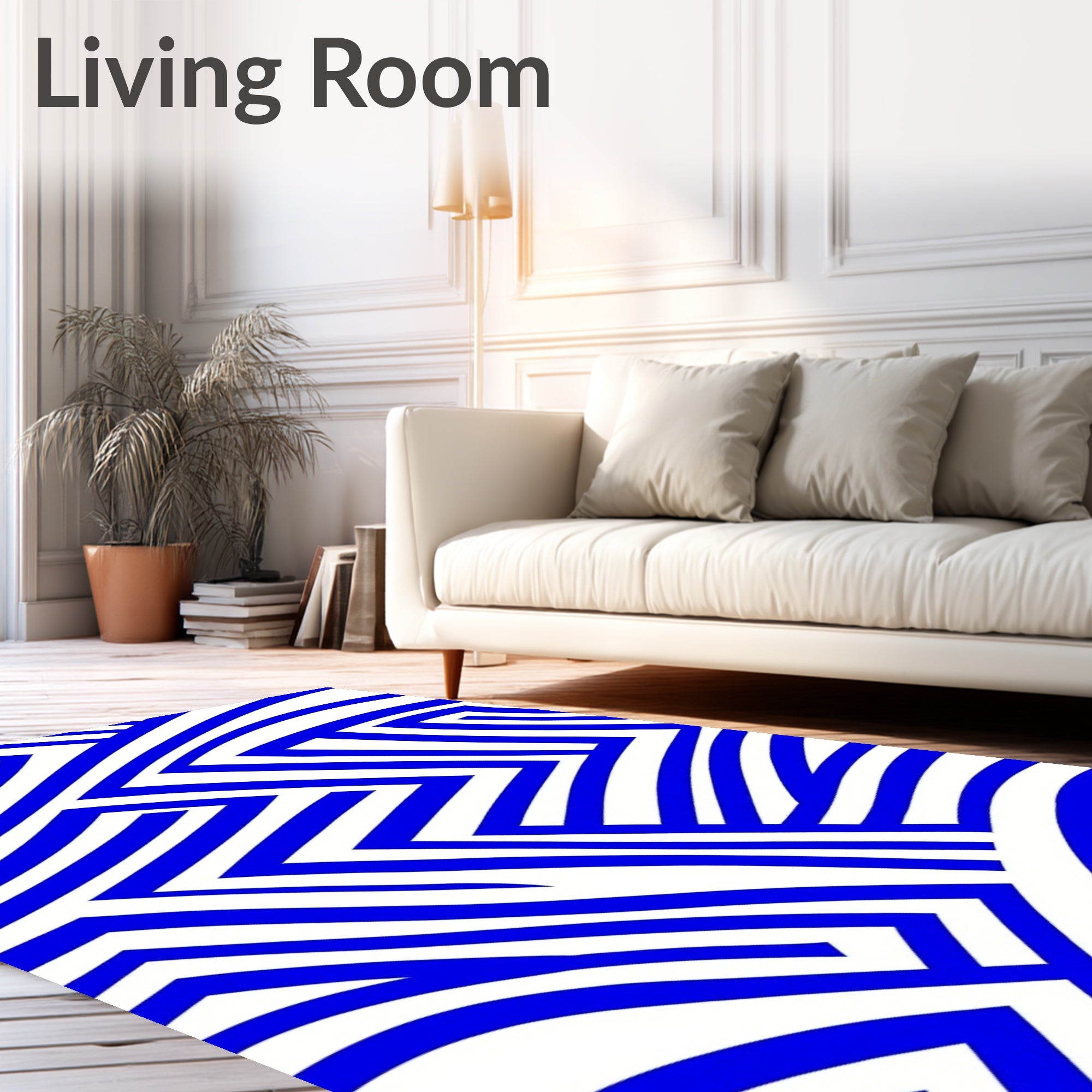 Ultra Soft Area Rug, Non Slip, Stain Resistant, Washable Area Rugs for Living Room, Bedroom, Abstract Chevron Zigzag Design with Bold Striped Accents(Blue) Overview: