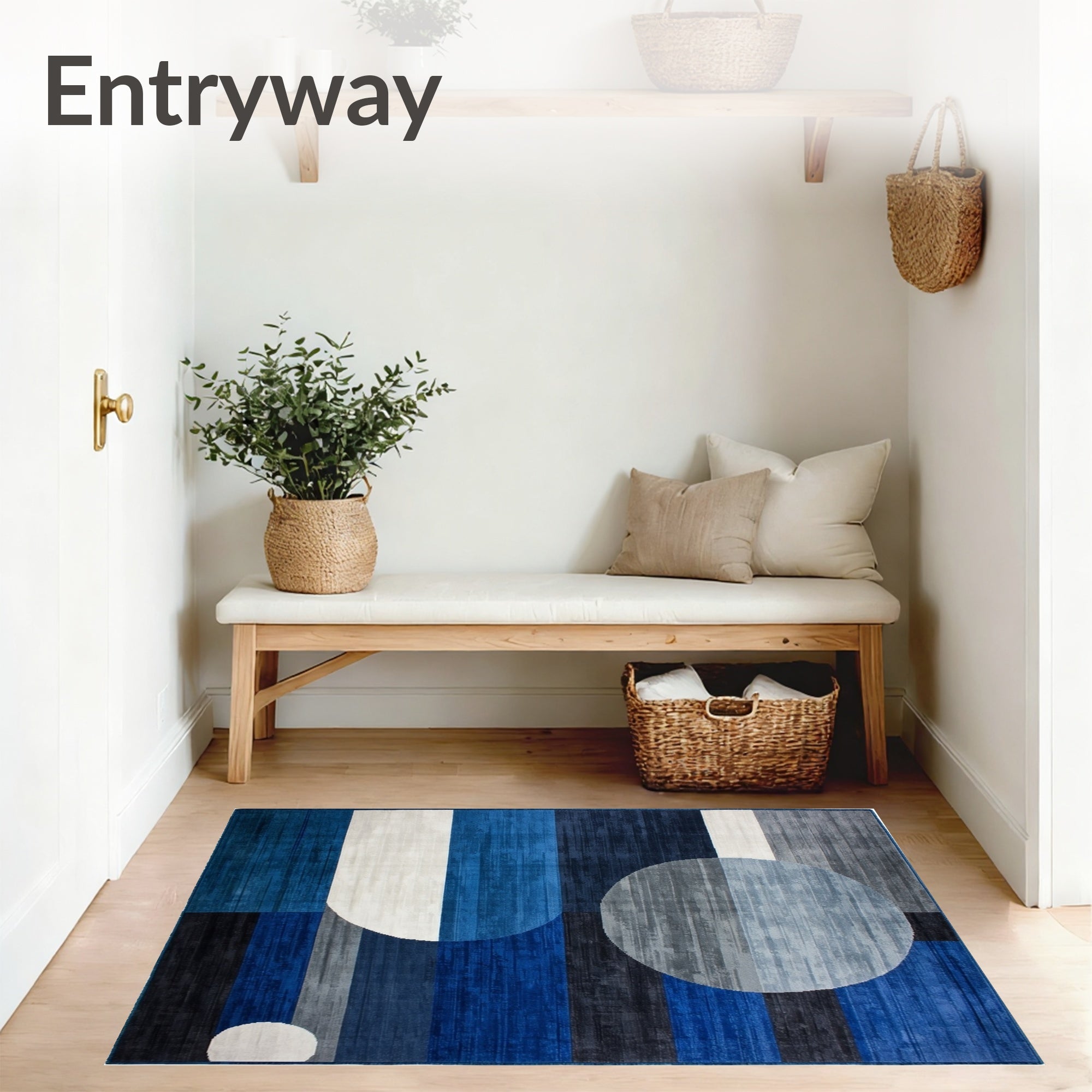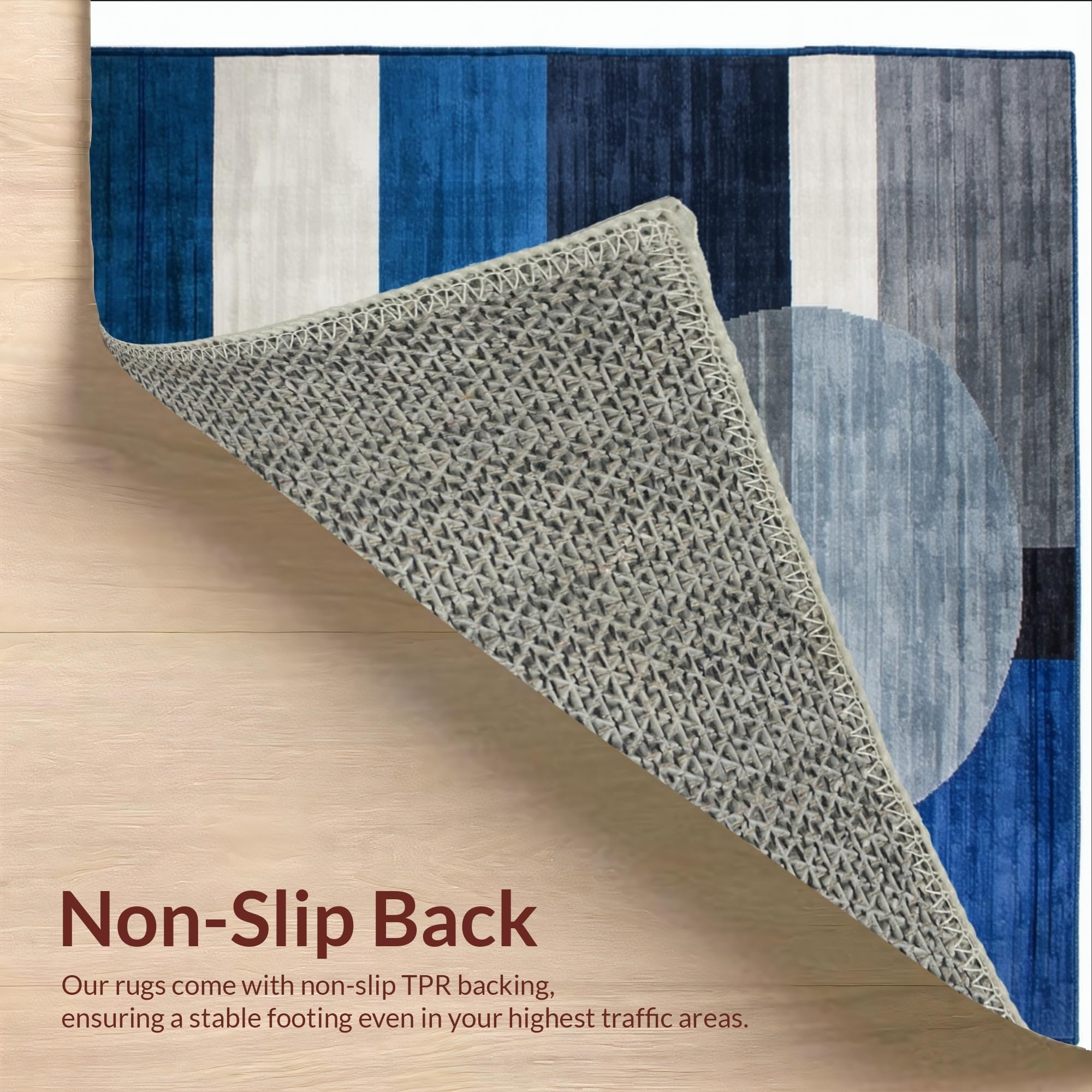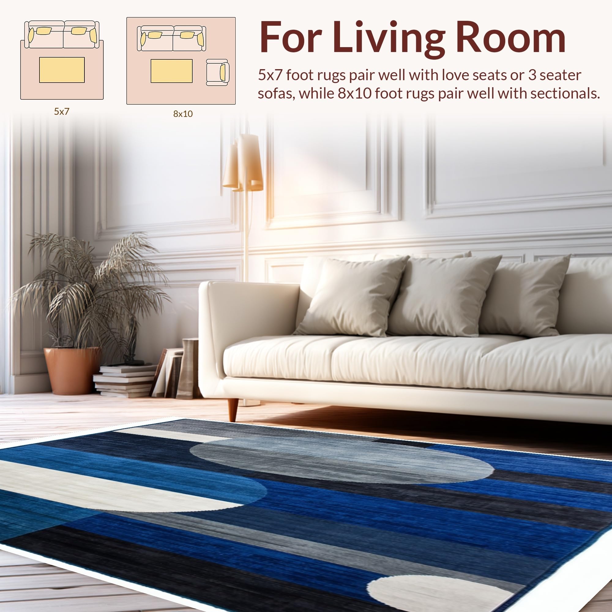 Ultra Soft Area Rug, Non Slip, Stain Resistant, Washable Area Rugs for Living Room, Bedroom, Abstract Circle Carpet(Blue) Overview: