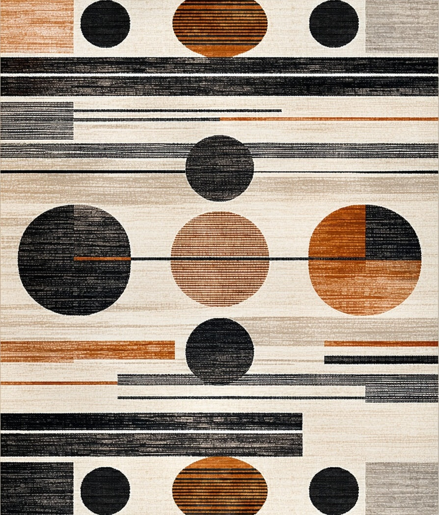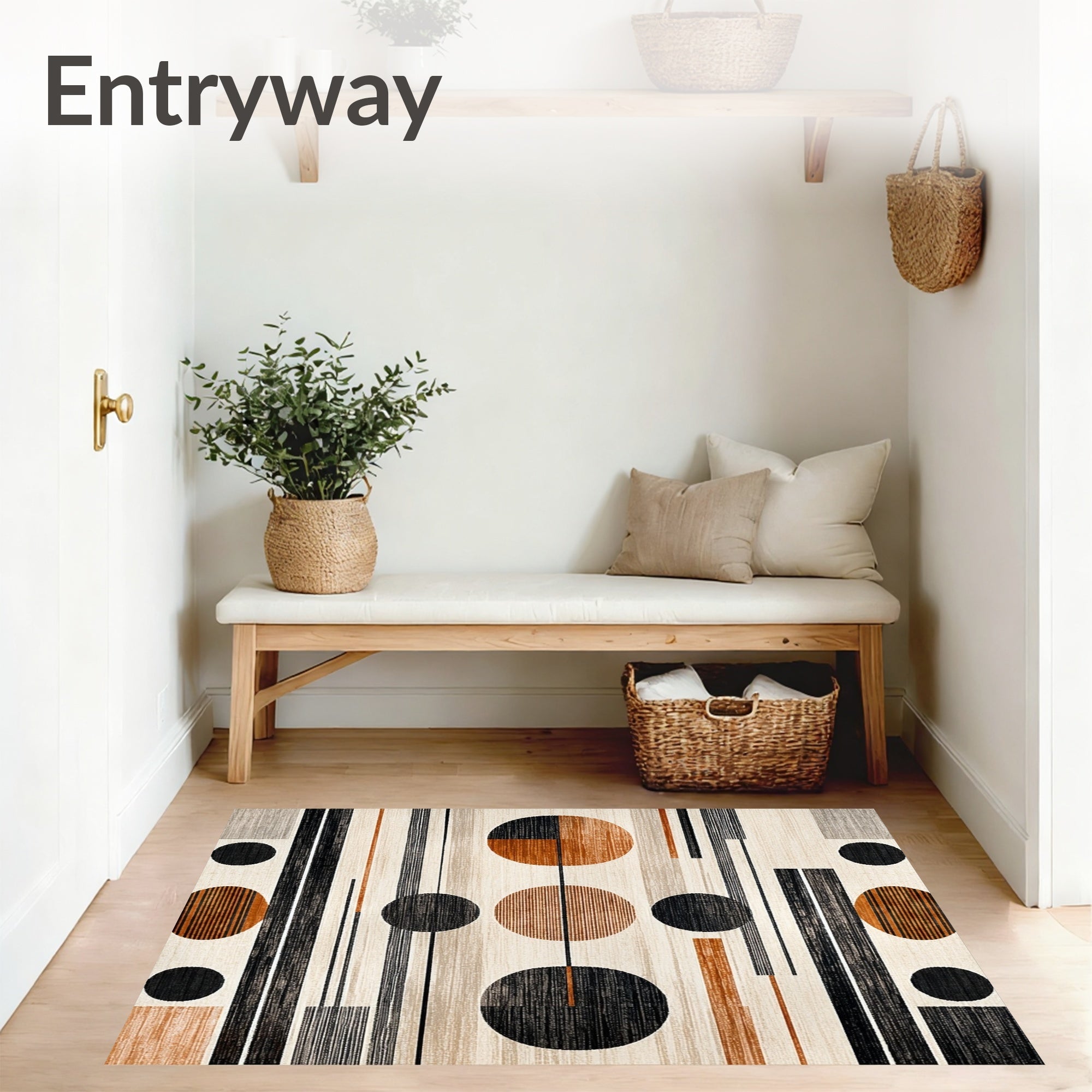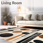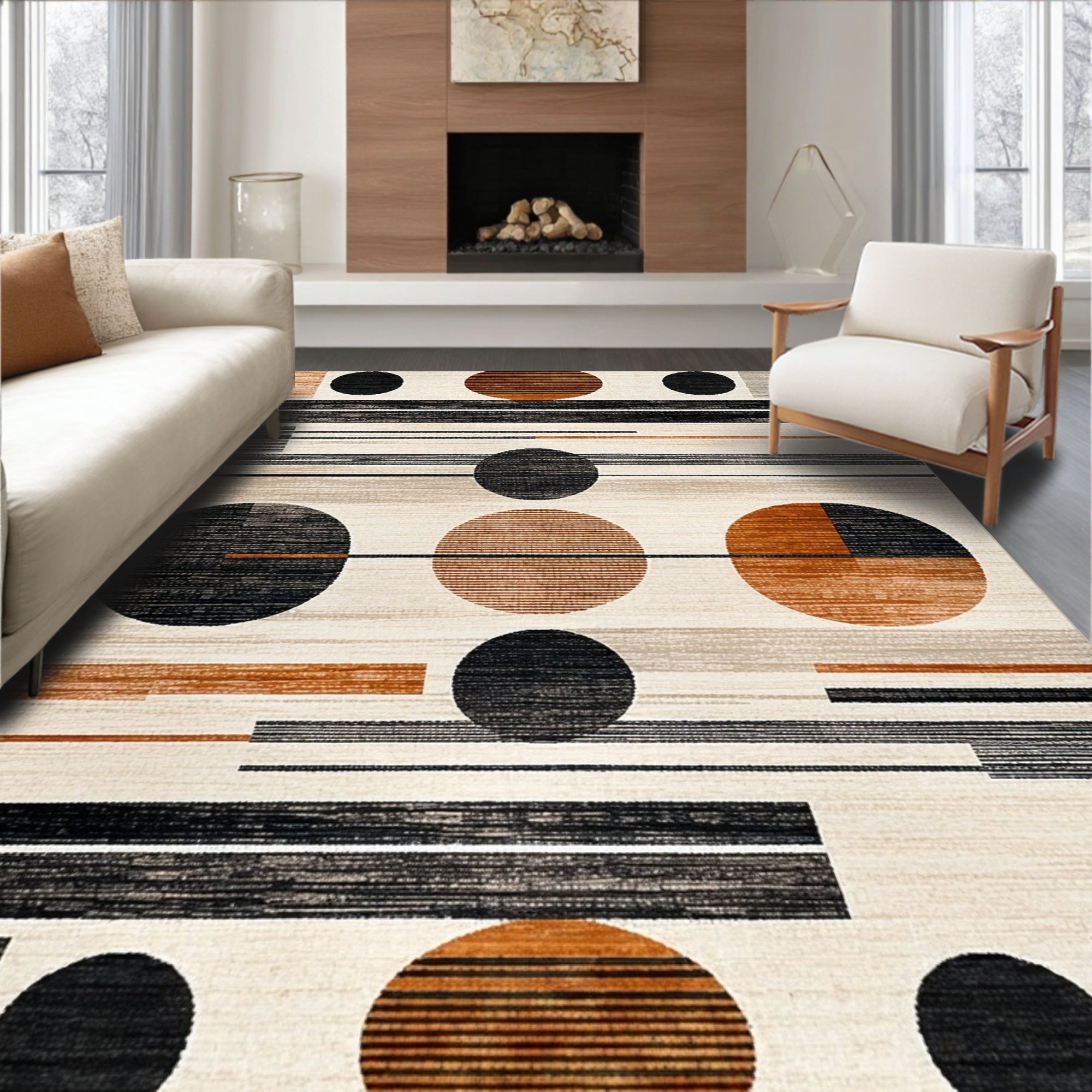 Ultra Soft Area Rug, Non Slip, Stain Resistant, Washable Area Rugs for Living Room, Bedroom, Abstract Circles Geometric Modern Rustic Warm Colors Area Beige Black(Beige) Overview: