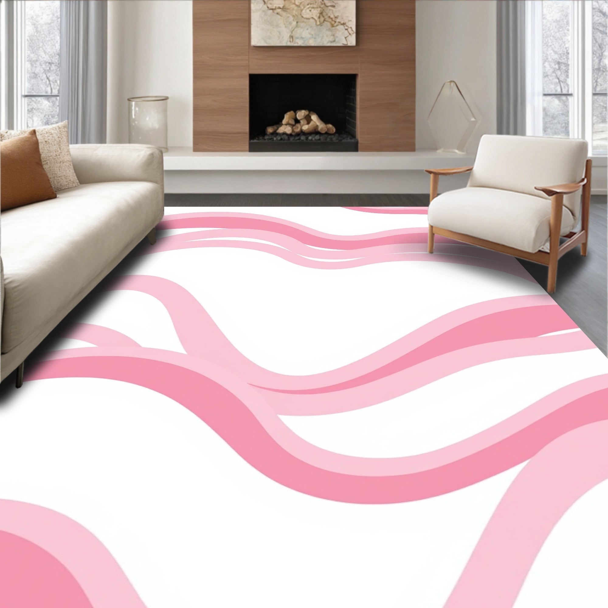Flatwoven High Traffic Area Rug, Abstract Cloud Swirl Contemporary Modern Minimalist Art, Non Slip, Stain Resistant, Washable Area Rugs for Living Room, Bedroom (Pink) Overview: