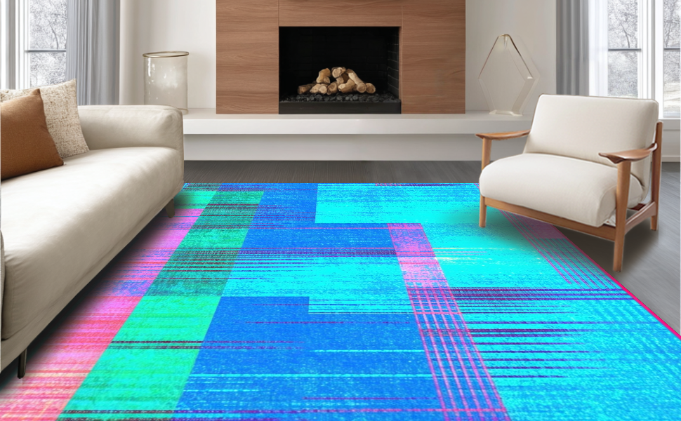 Ultra Soft Area Rug, Non Slip, Stain Resistant, Washable Area Rugs for Living Room, Bedroom, Abstract Color Burst Aesthetic(Blue) Overview: