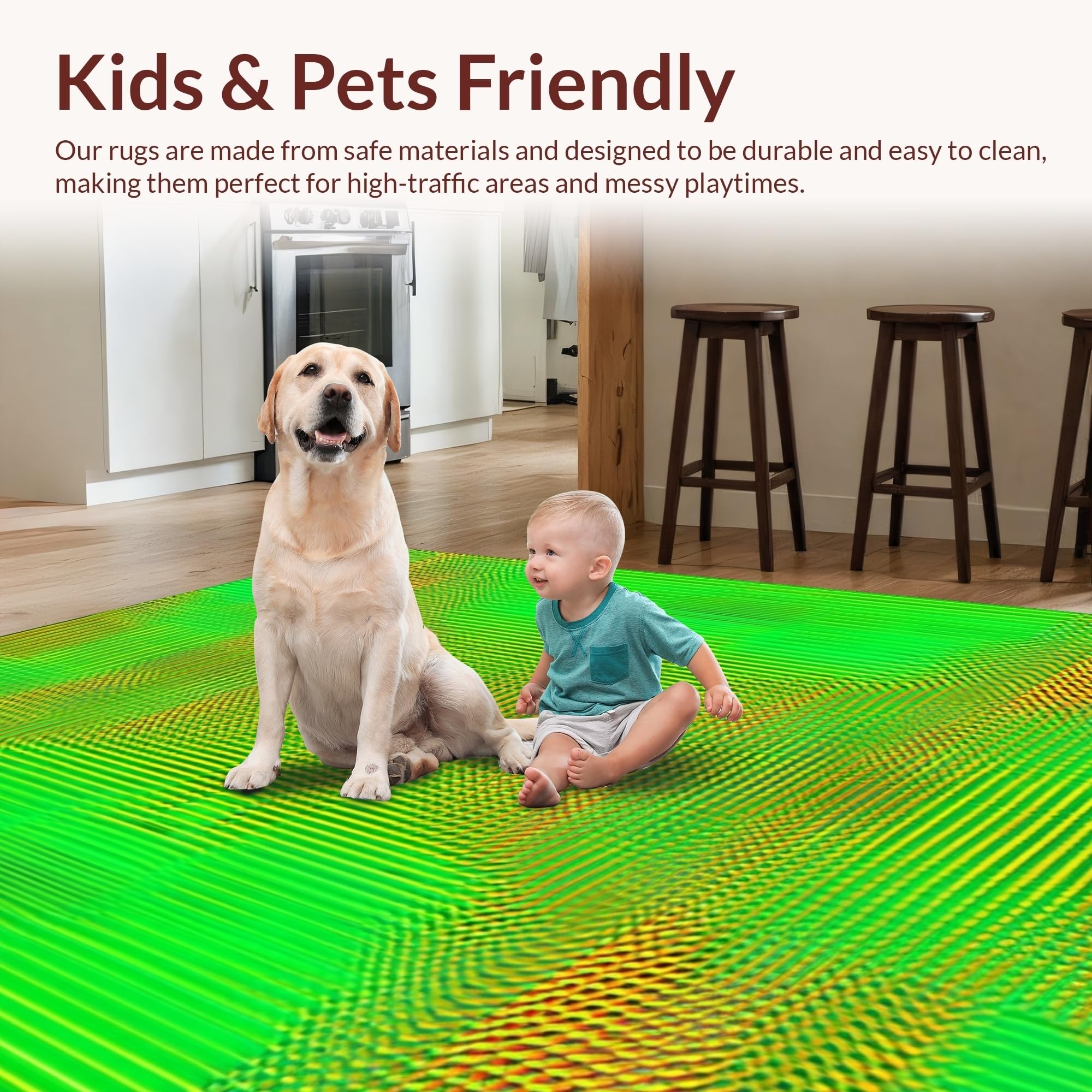 Ultra Soft Area Rug, Non Slip, Stain Resistant, Washable Area Rugs for Living Room, Bedroom, Abstract Colorful Vortex Illusion(Green) Overview: